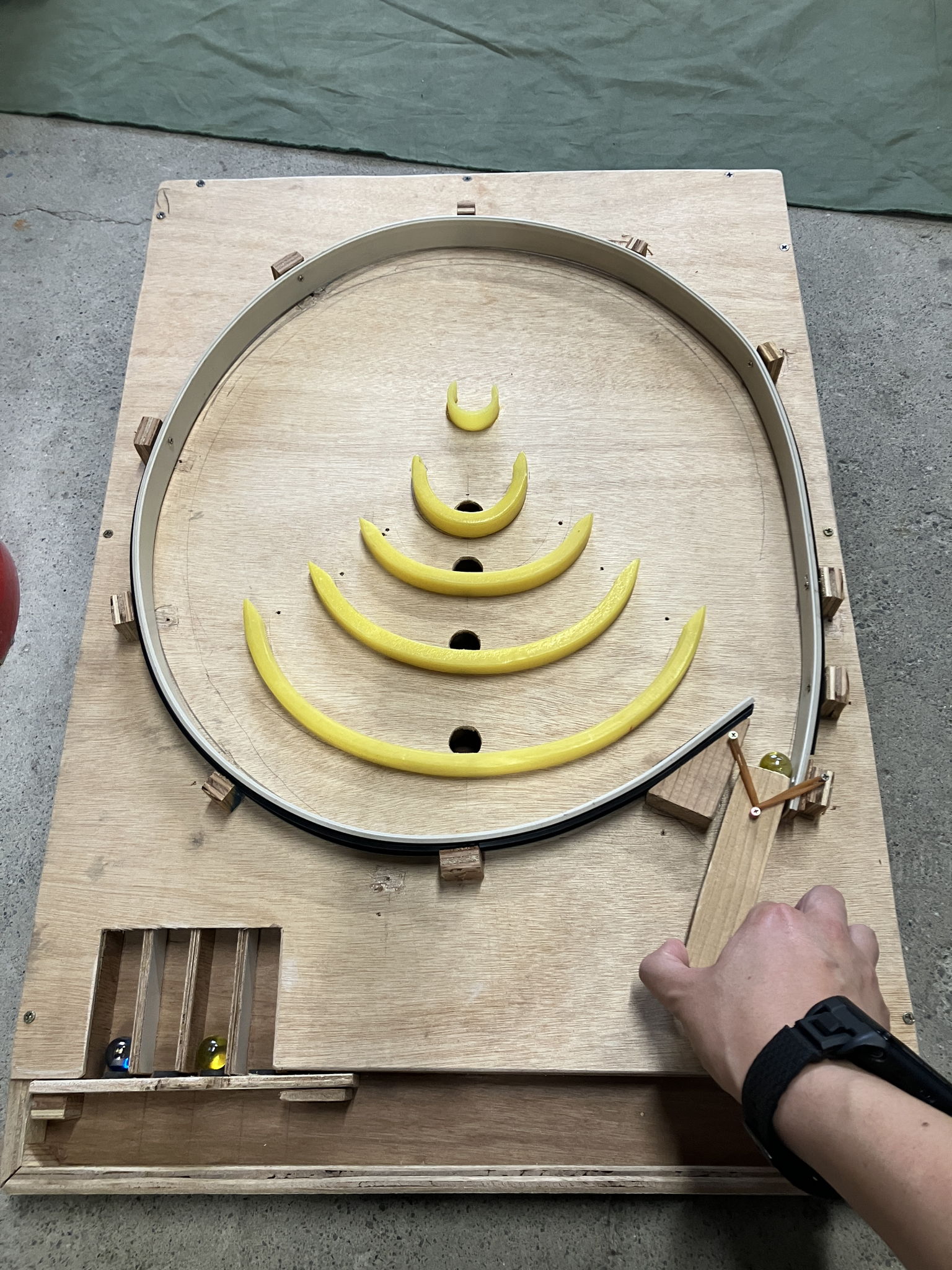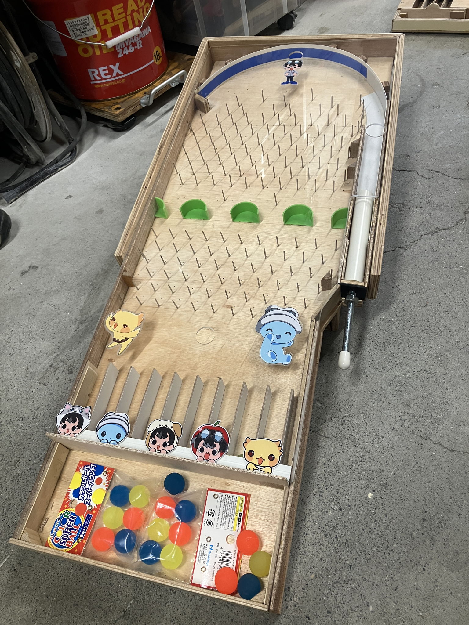 ガス工事で余ったポリエチレン管を活用して作られた子供用のおもちゃ。ビー玉を転がして遊べる穴付き天板と配管の構造を利用した遊びの台や、曲げ特性を活かしたパチンコ風の玩具を製作。軽量で安全性を確保しつつ、廃材に遊び心を加えた新たな用途を創造しました。