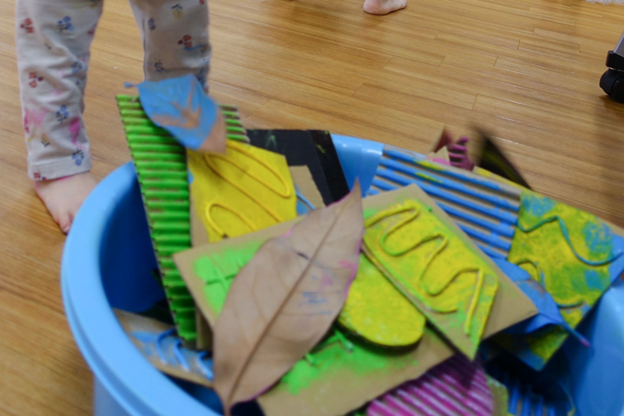 都市部ならではの、地域から出る廃材などを活用して造形遊びができるアトリエを開催。ここでは、作品を完成させる事を目的とせず、自由な表現や「今この瞬間」を楽しみ味わう遊びの場としての役割を持たせます。