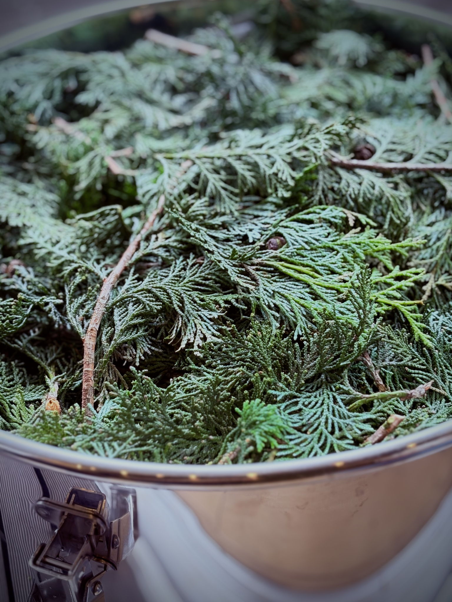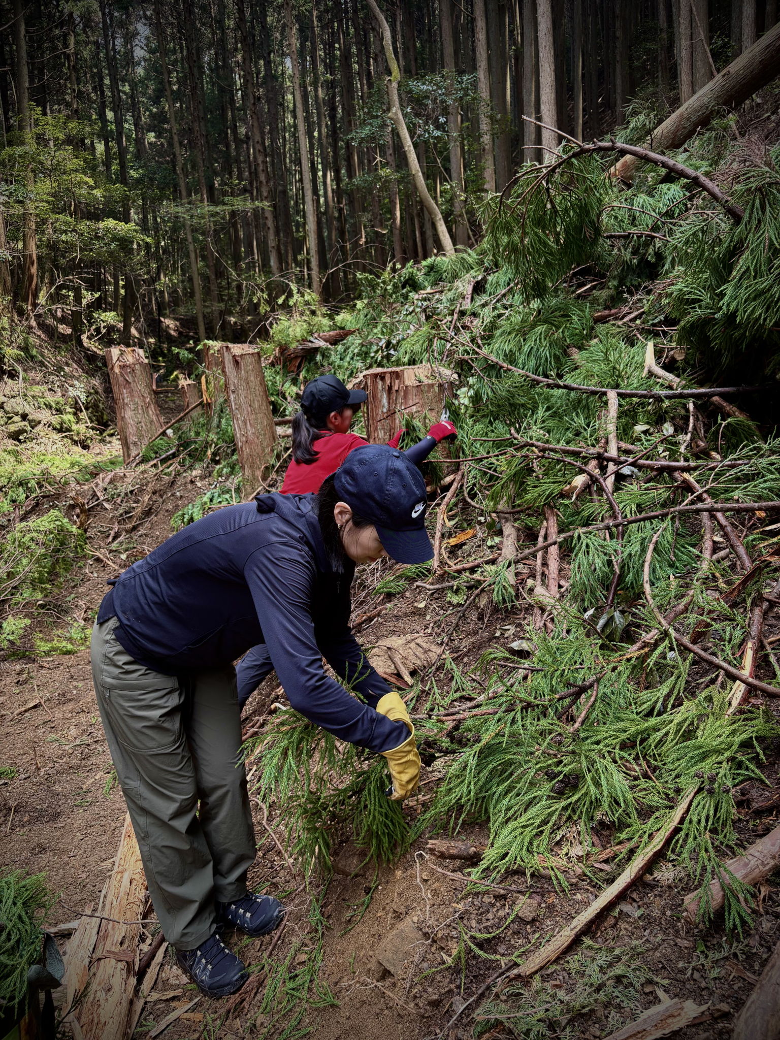 未利用資源である間伐材のスギやヒノキの枝葉を調達し、蒸留による香りのアップサイクルを進めています。
