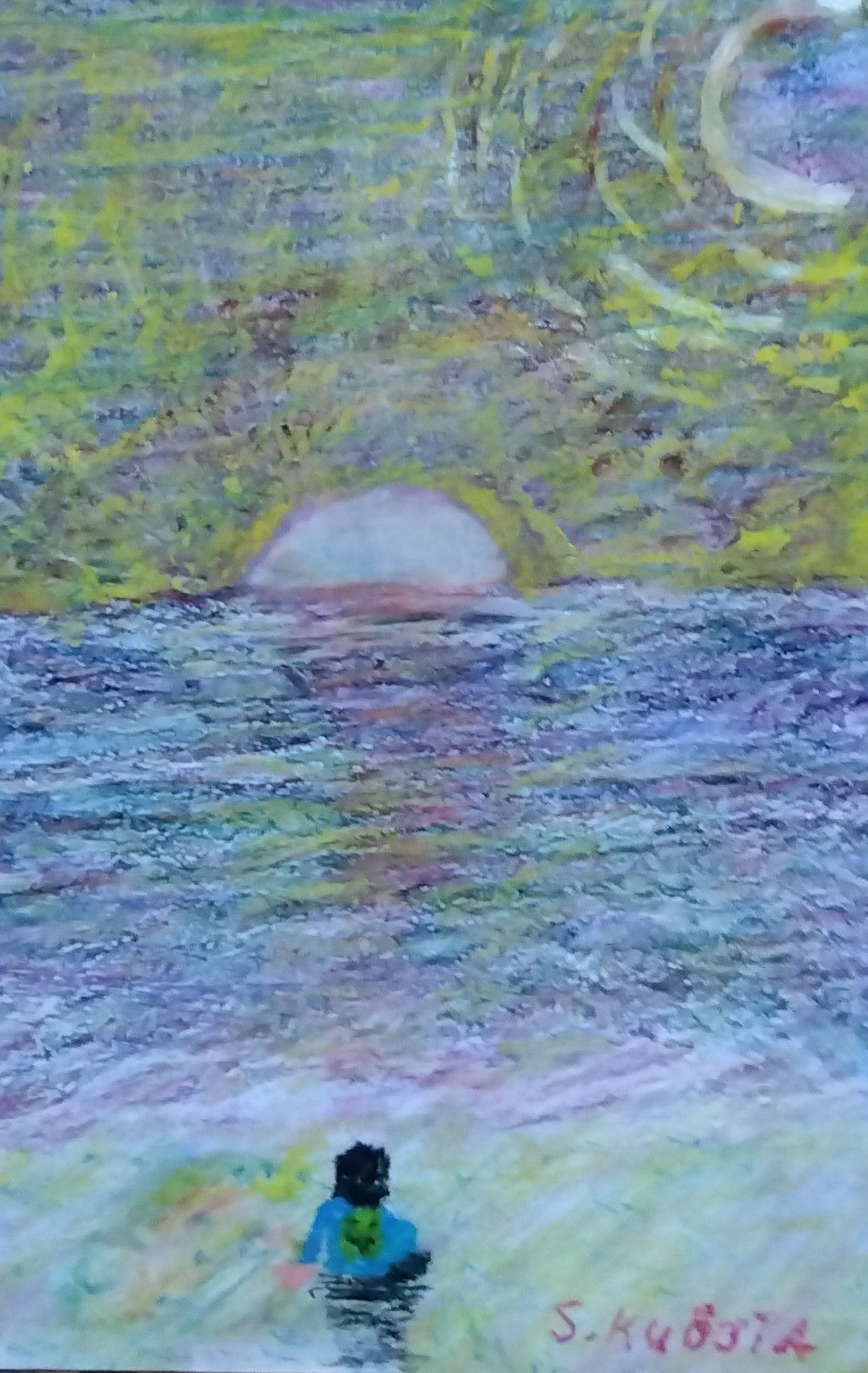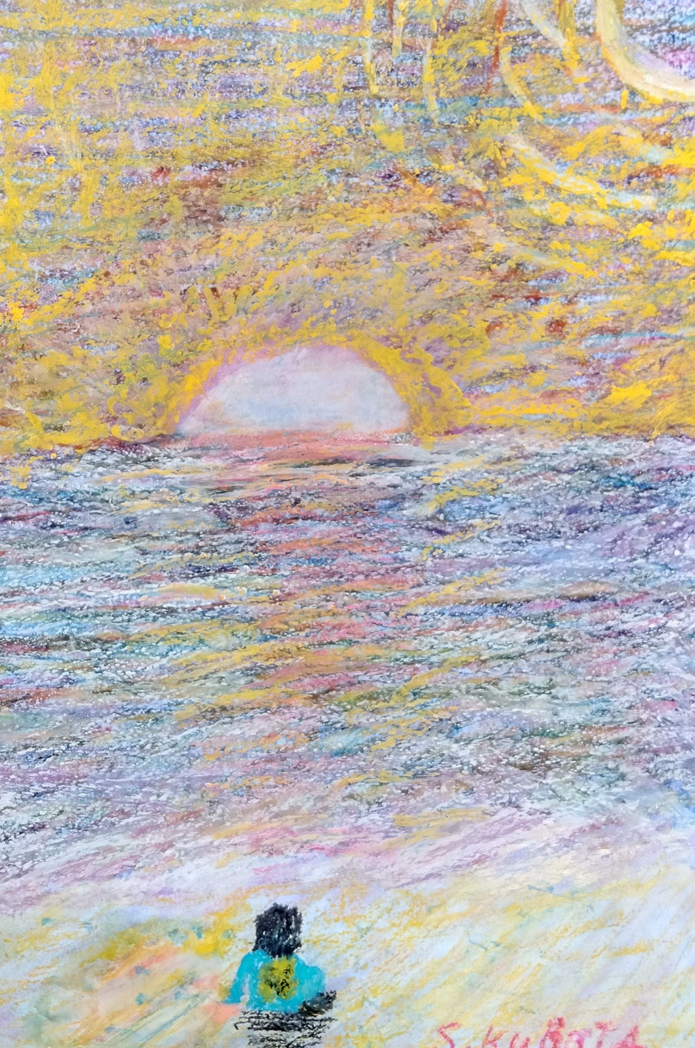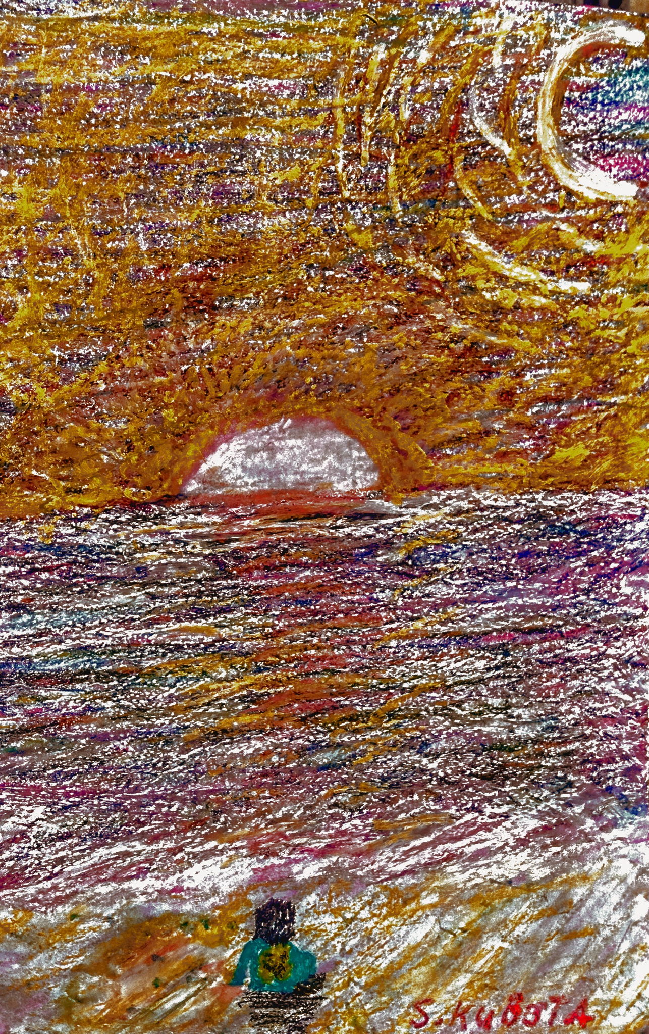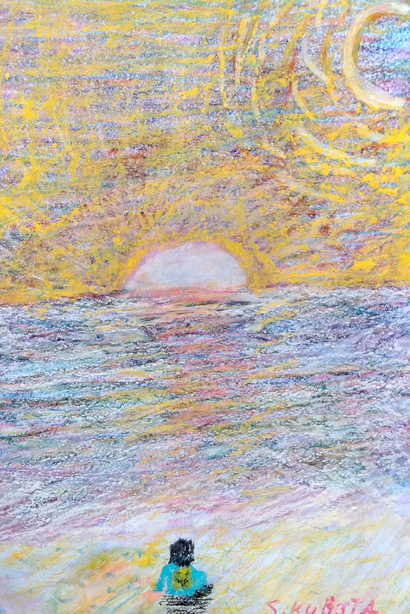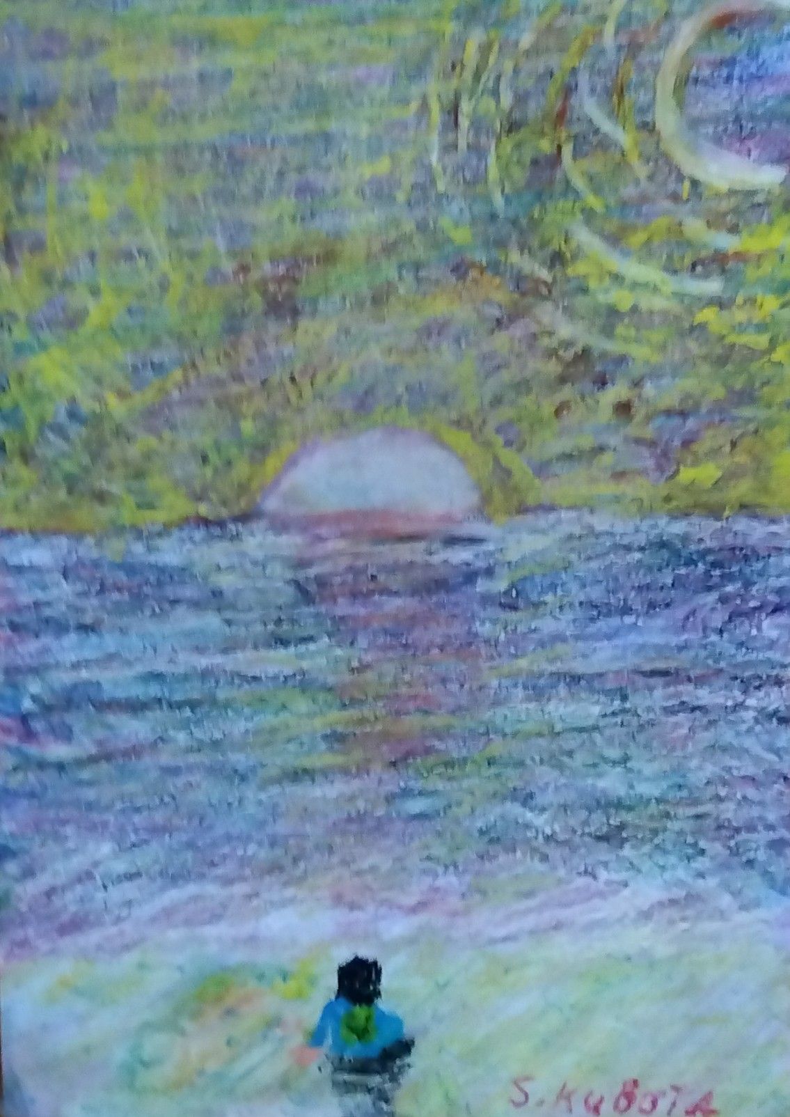 うみにゆうひが沈むところをみているひと。