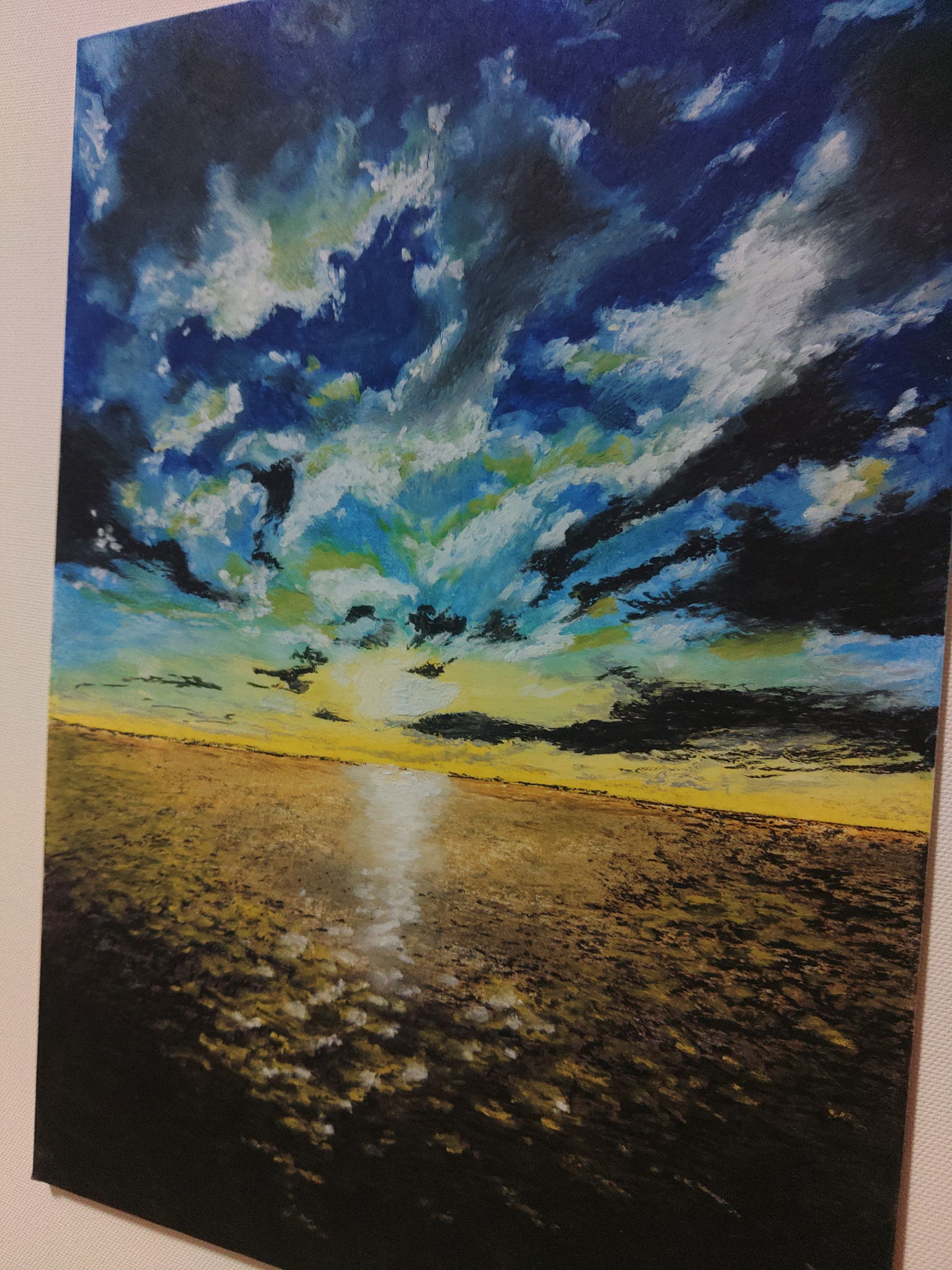 東京湾の海上で撮影した風景を描きました。とても爽快な朝焼けだったので画に出来たらと思い描いてみました。