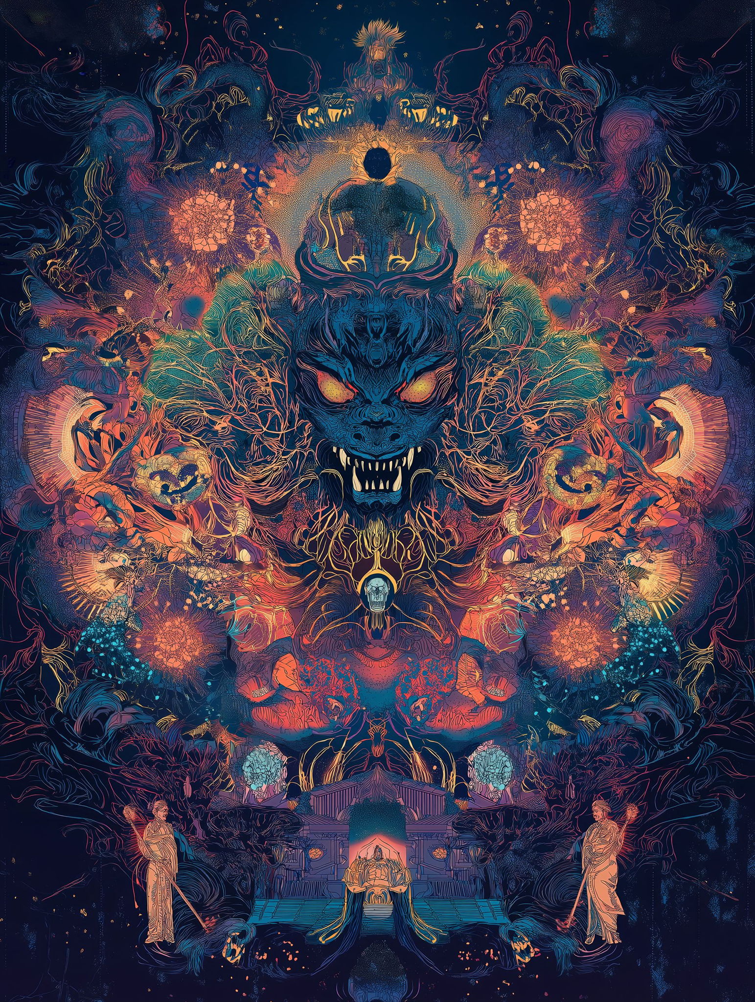 本作品では、メタバース空間の抽象化を目的とし、日本文化に根ざした概念を用いた再構築を試みる。日本文化において、未知なる存在はしばしば「妖怪」として捉えられてきたが、メタバースにおいても、人類がこれまで経験してこなかった新たな現象が、複雑な関係性の中から発生する可能性がある。この仮説に基づき、本作品では、メタバース内における「妖怪的マテリアル」と人間との相互作用を、AI技術を用いて表現することを試みた。