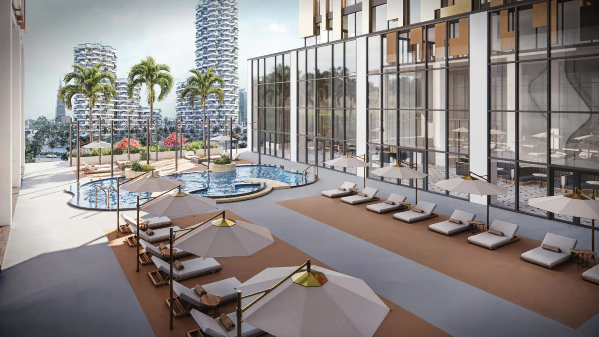 This mixed-use complex, designed by a leading architectural design studio, features a striking modern façade with dynamic geometries and a vibrant exterior palette. The project integrates commercial, hospitality, and recreational spaces, including a luxurious lobby, rooftop poolside retreat, and retail areas. Sophisticated interior finishes and elegant detailing reflect a focus on contemporary urban lifestyle. The design promotes functionality while offering high aesthetic appeal, ideal for both business and leisure, making it a landmark destination in a bustling metropolitan setting.