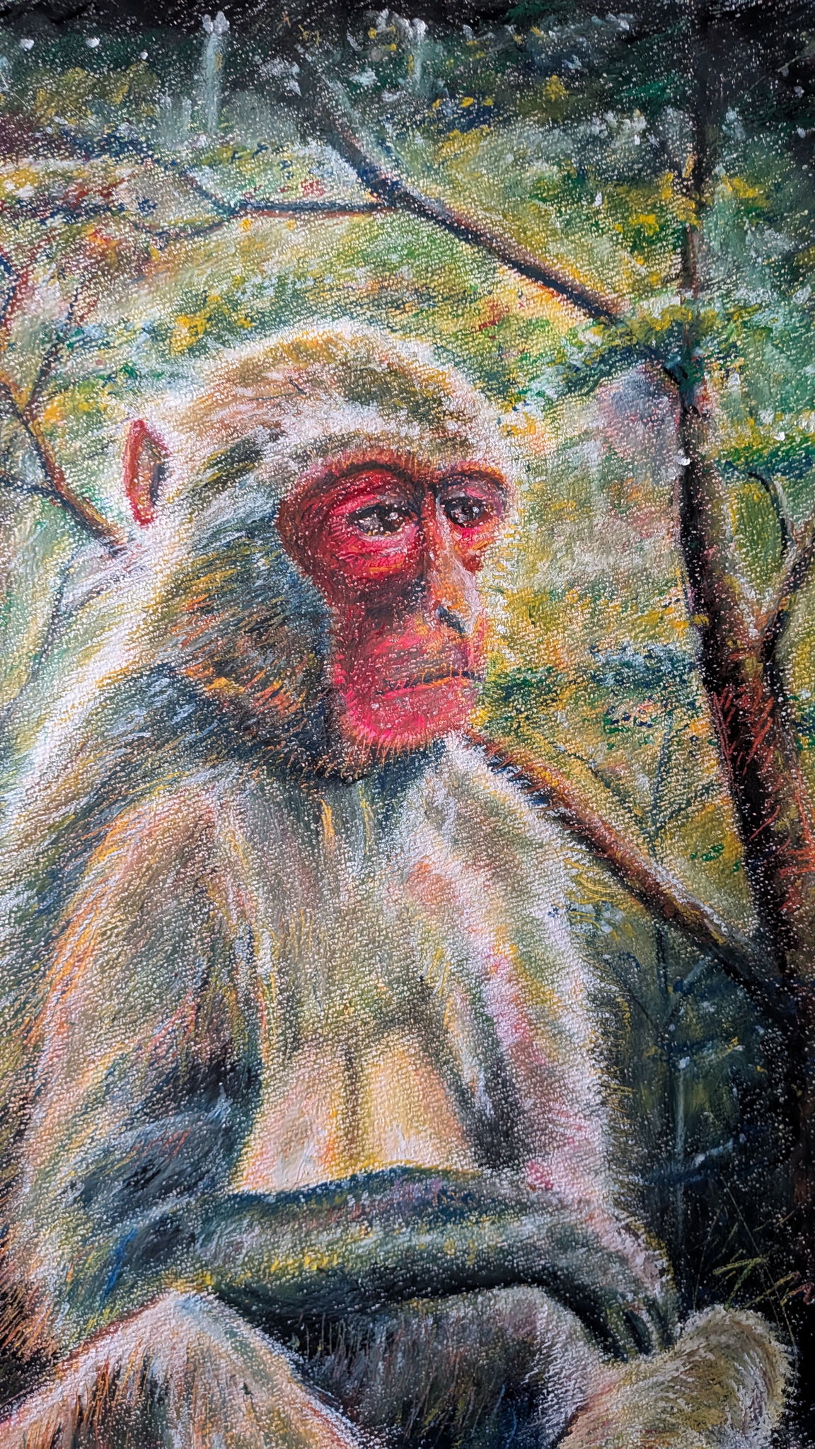 そんな中ひときわ落着き黄昏ている様な猿を見つけ今回この絵に決めました