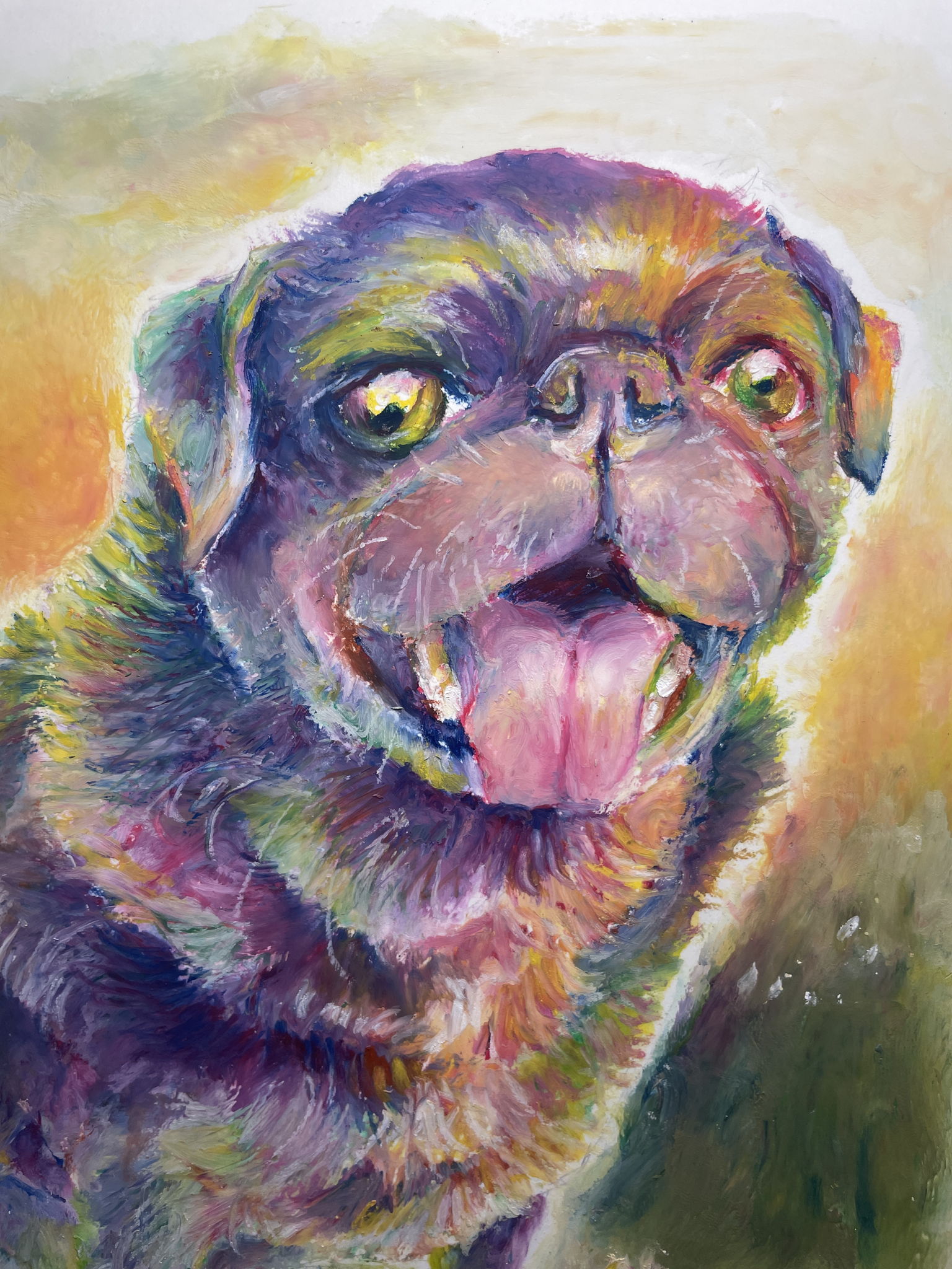 生前の写真の中でもニコニコとしている写真を絵にしました。