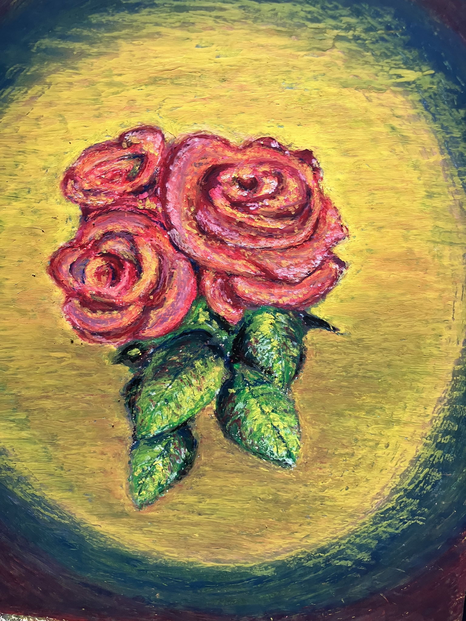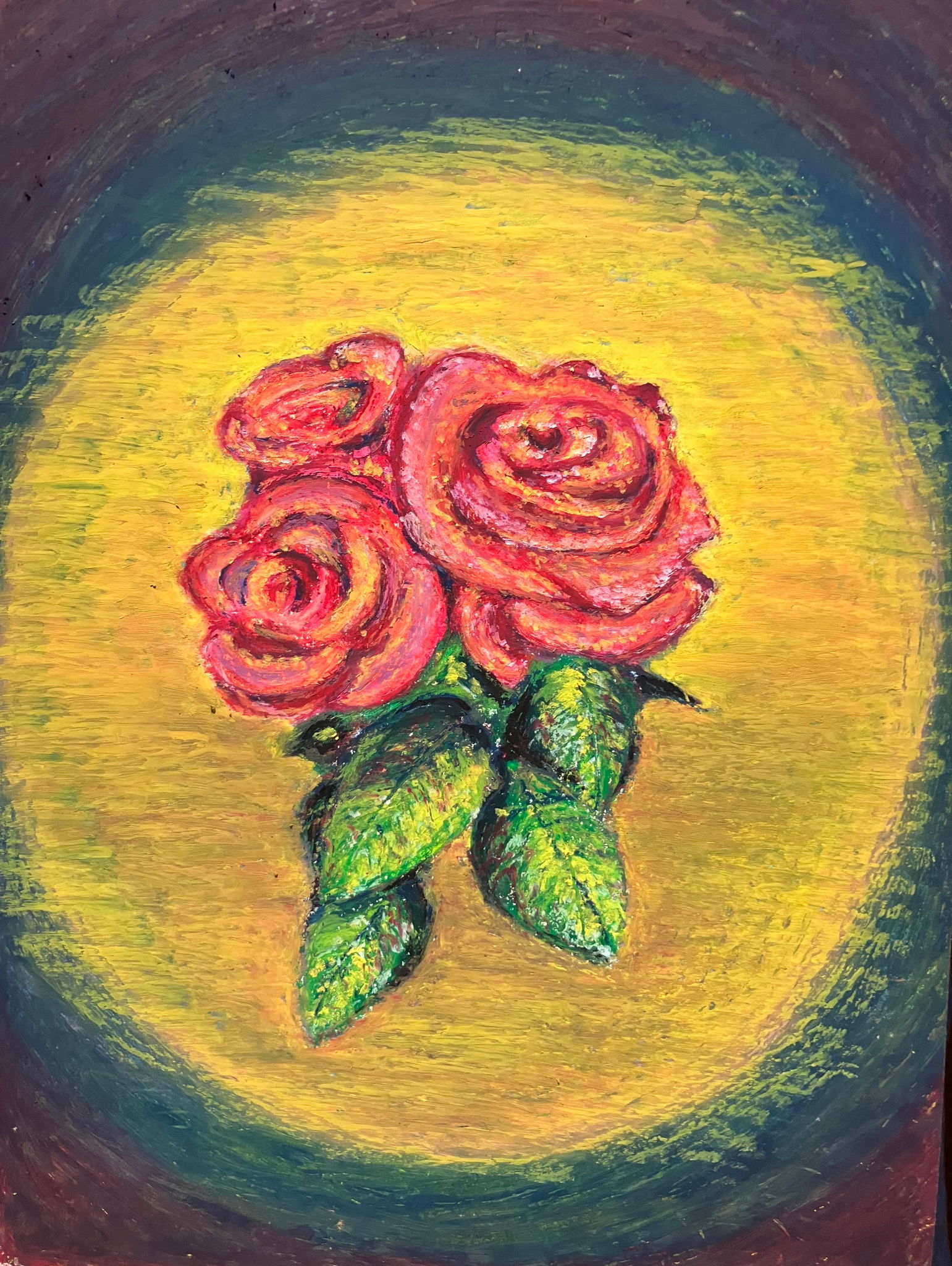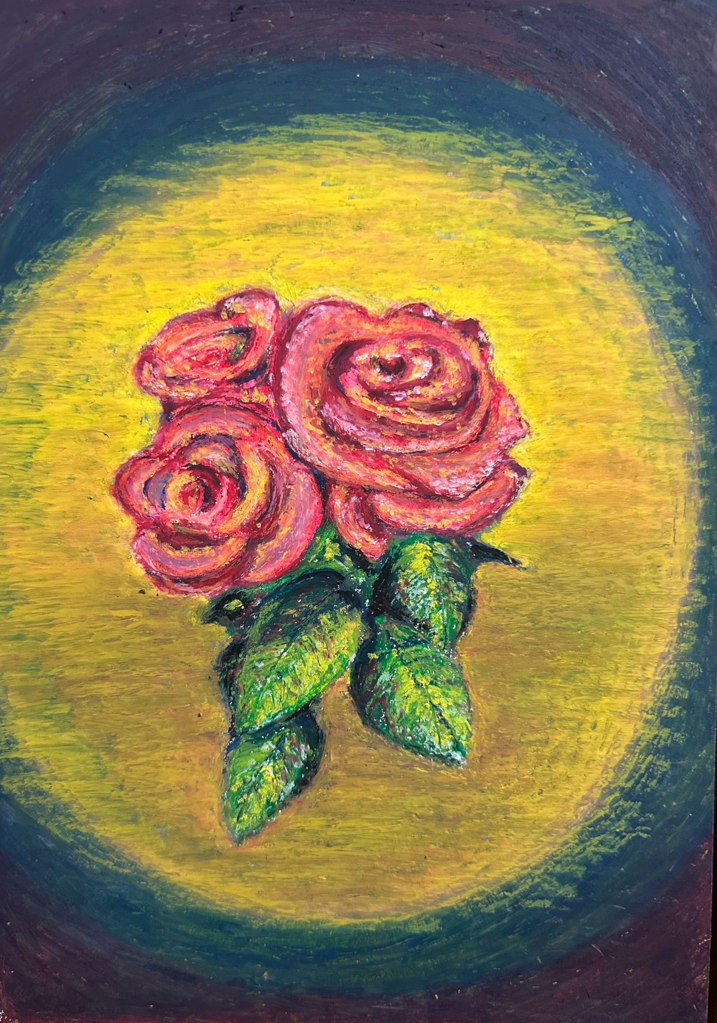 春から育てているバラです。美しいバラの花びらをクレヨンで表現することに挑戦しました。