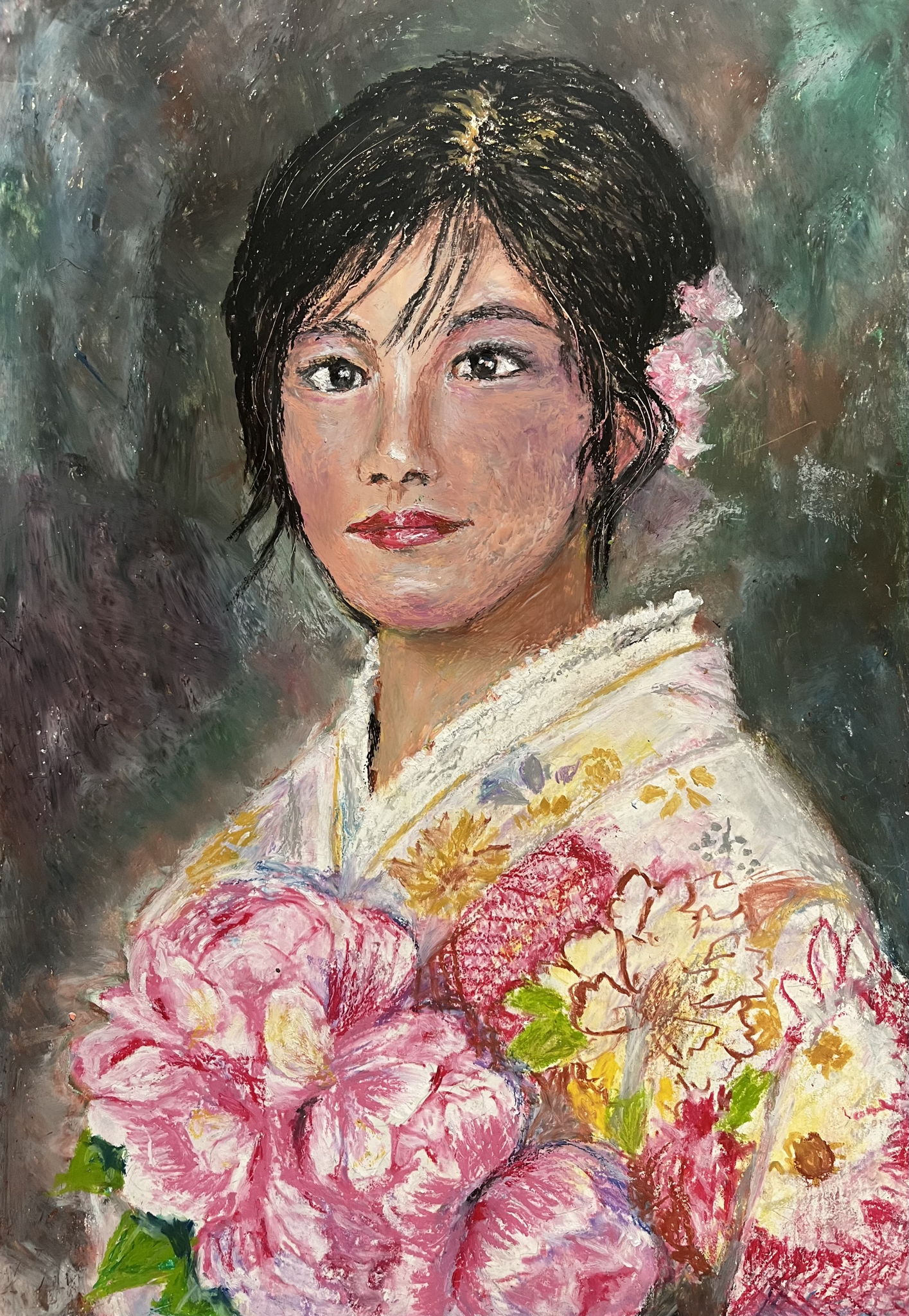 晴れ着に身を包んだ若い女性。緊張と不安が伝わるが、その眼差しは熱い。君のこれからの未来に幸あれ。