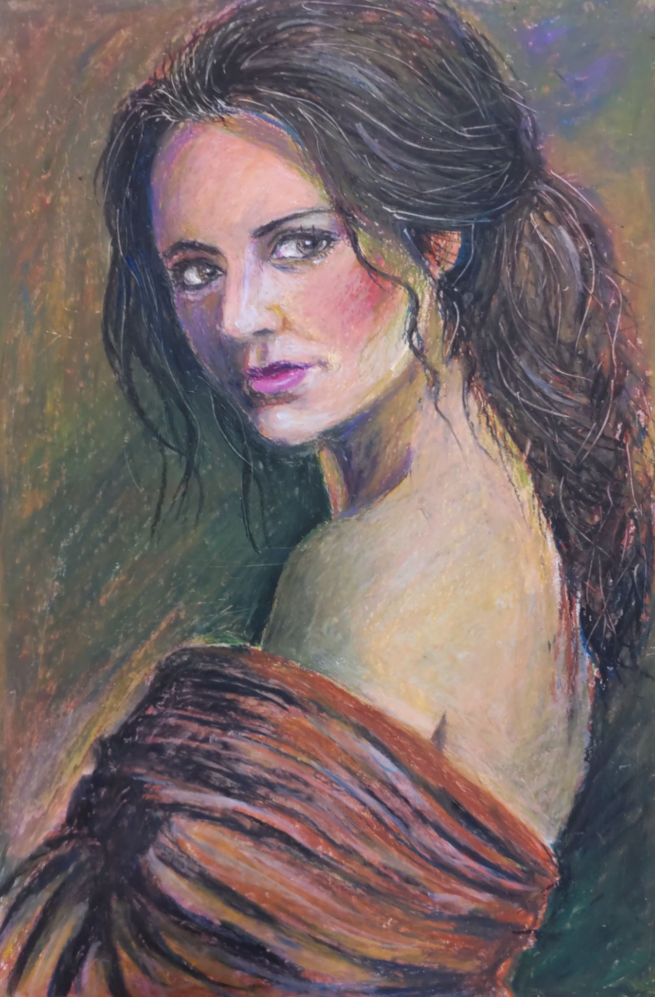 人物は顔のバランスが難しくもありクレヨンで制作する上で汚くならないように苦心しました。