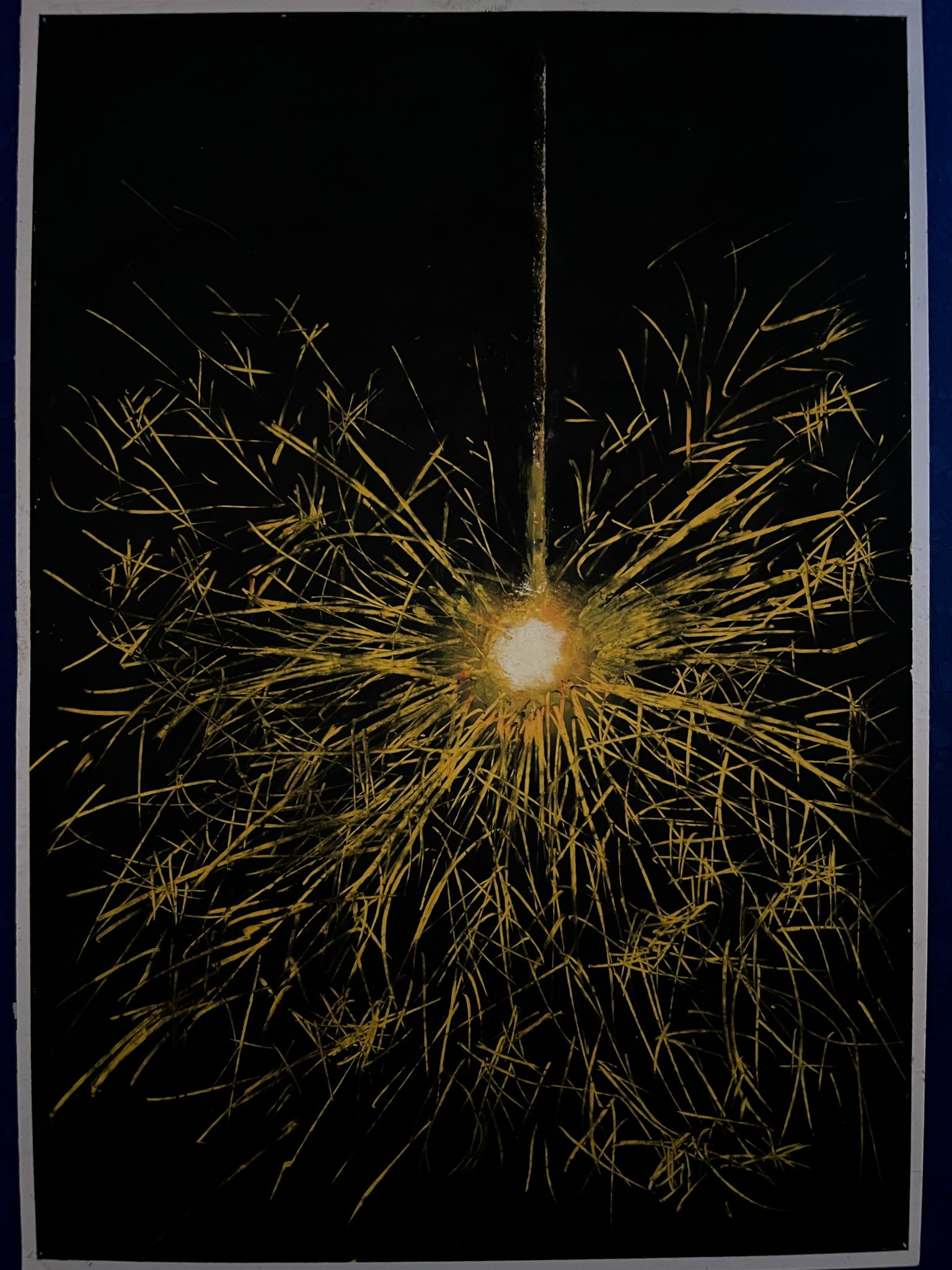 秋空の下、何かを想うように一点を見つめるナキウサギを描きました。