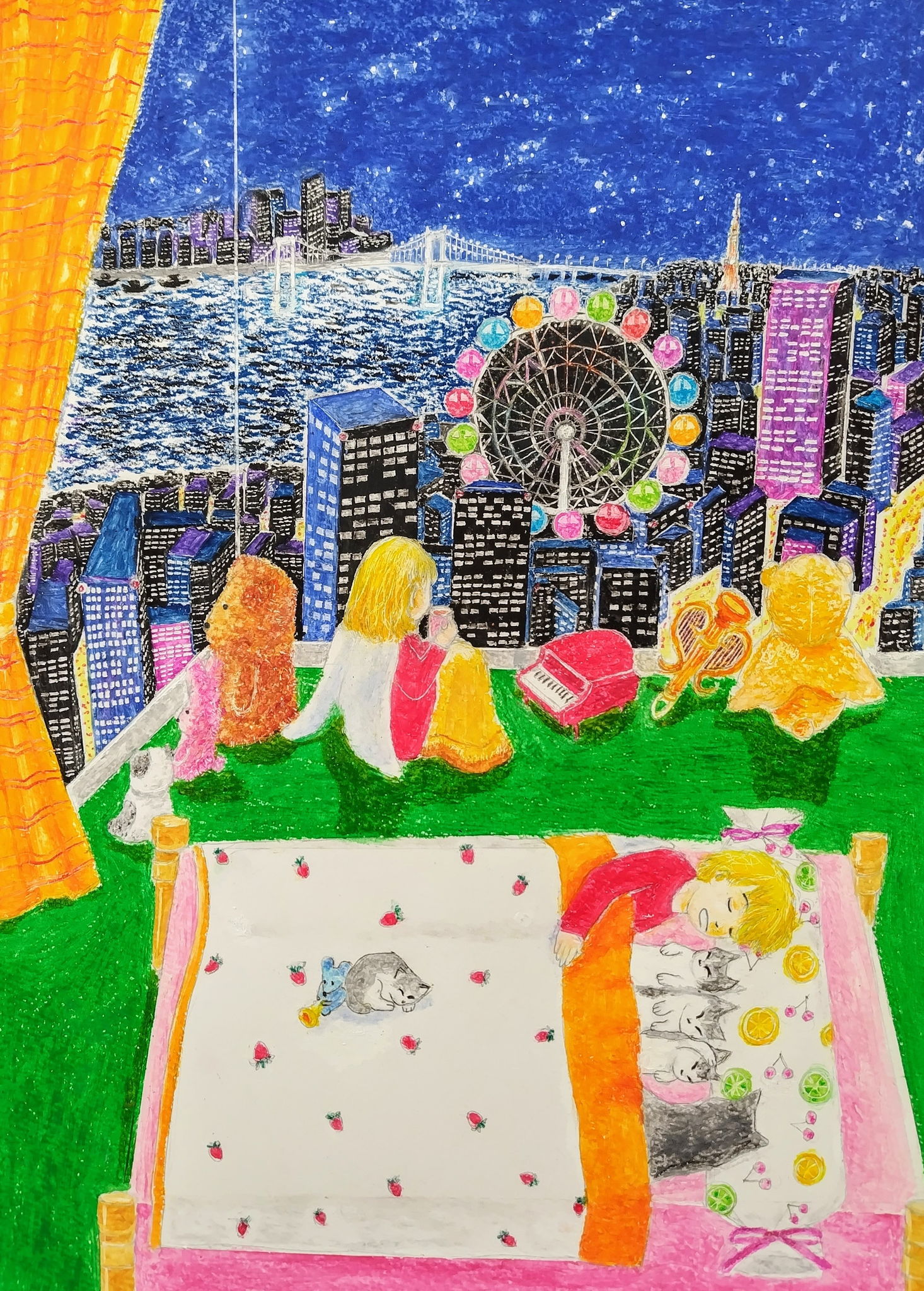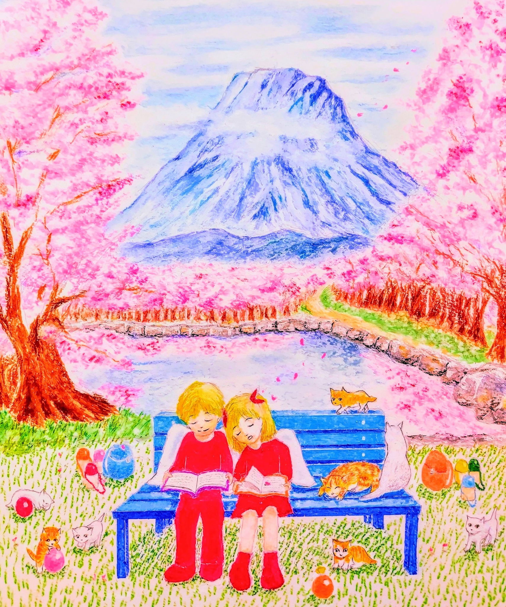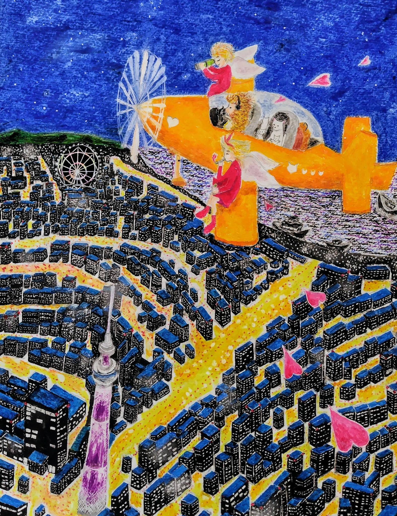 暑い日々、元気になるような絵を描きたいと思い描きました。
