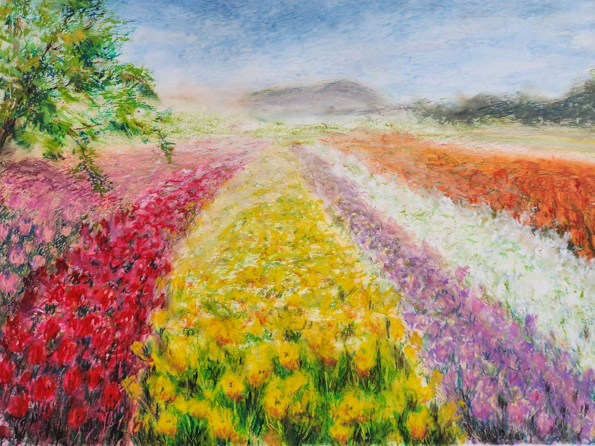 目も覚めるような1面の春のチューリップを描いてみました。