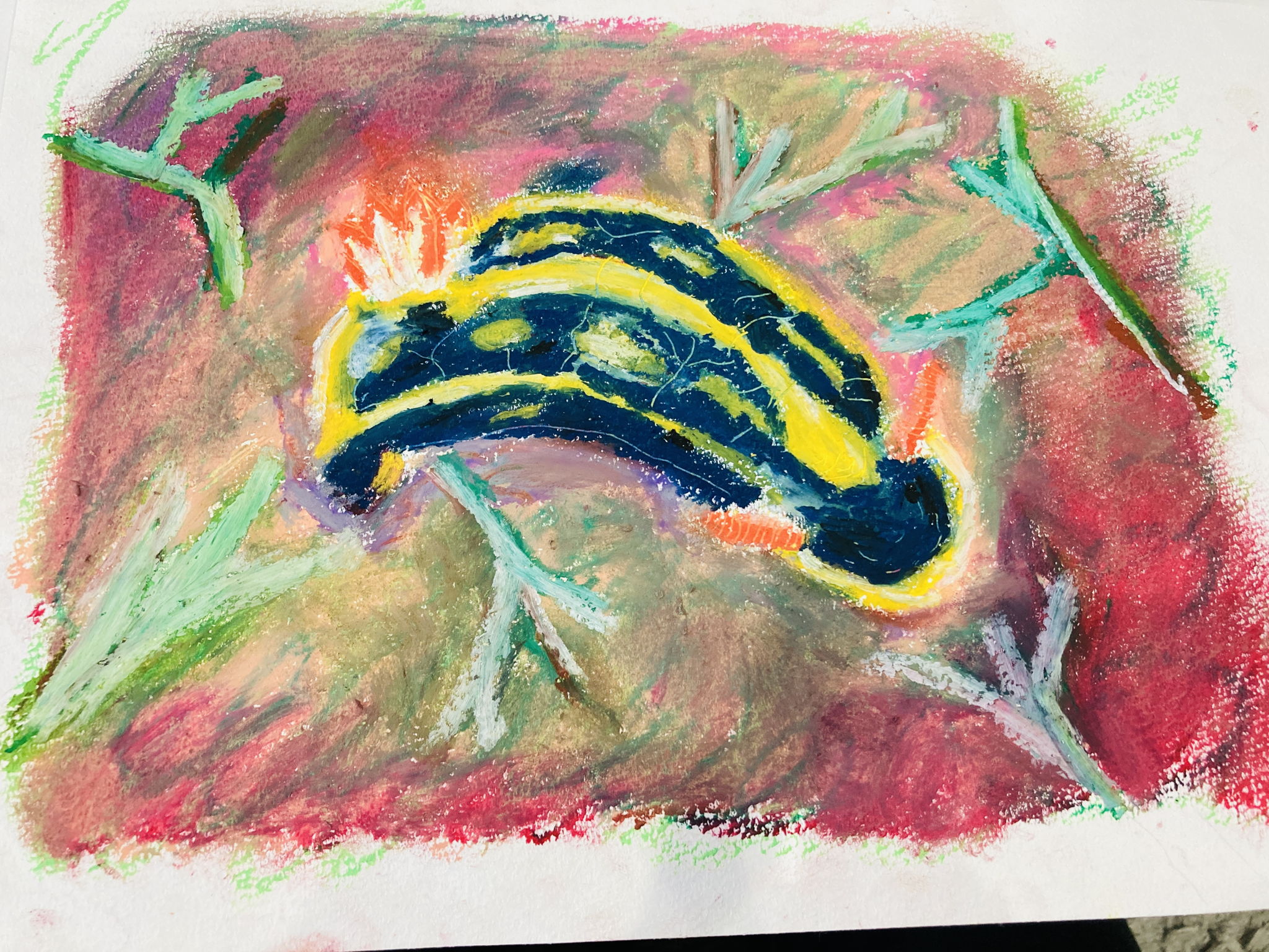 アオウミウシが海の中での異彩を放つ存在感を描きました。