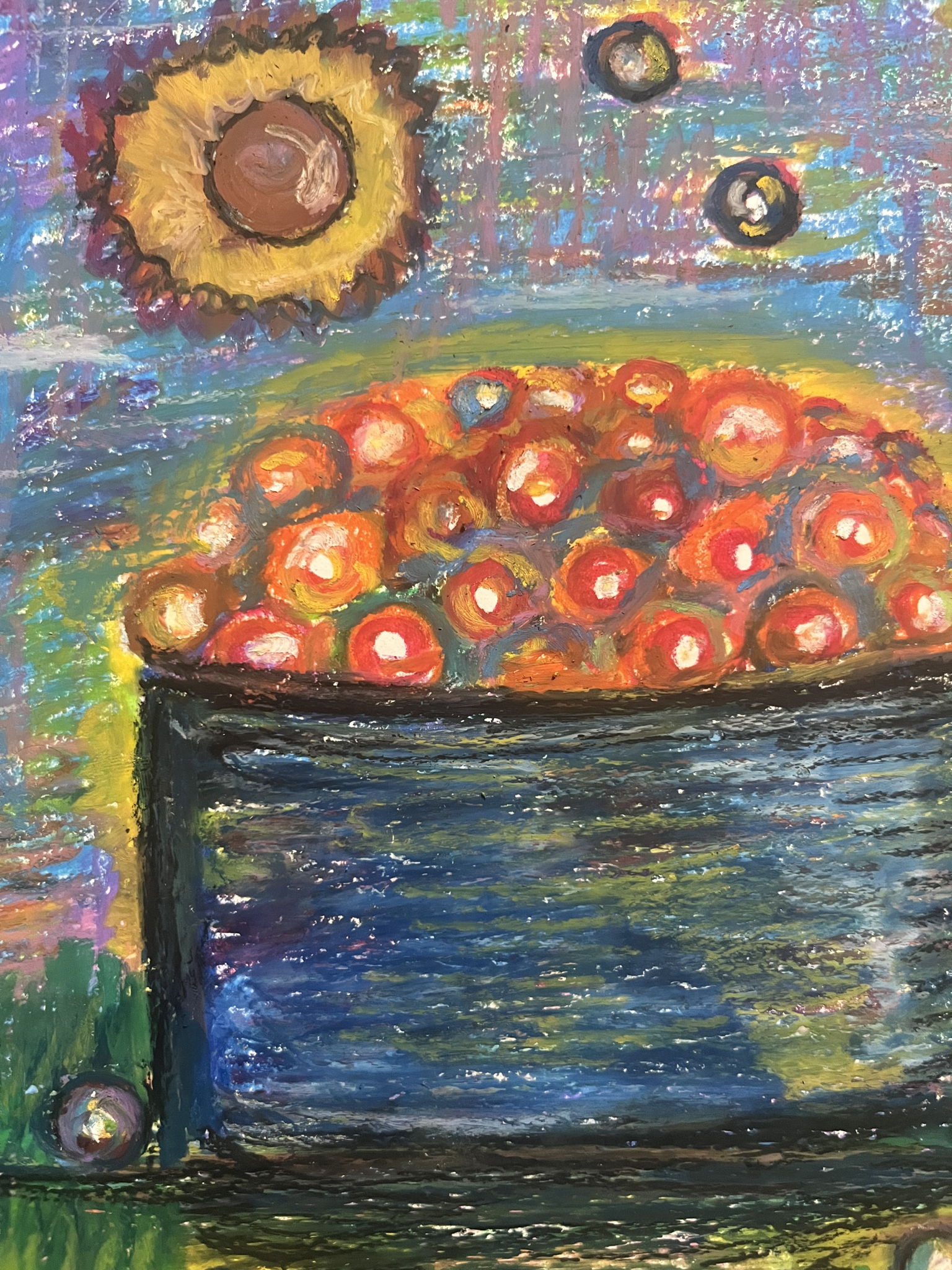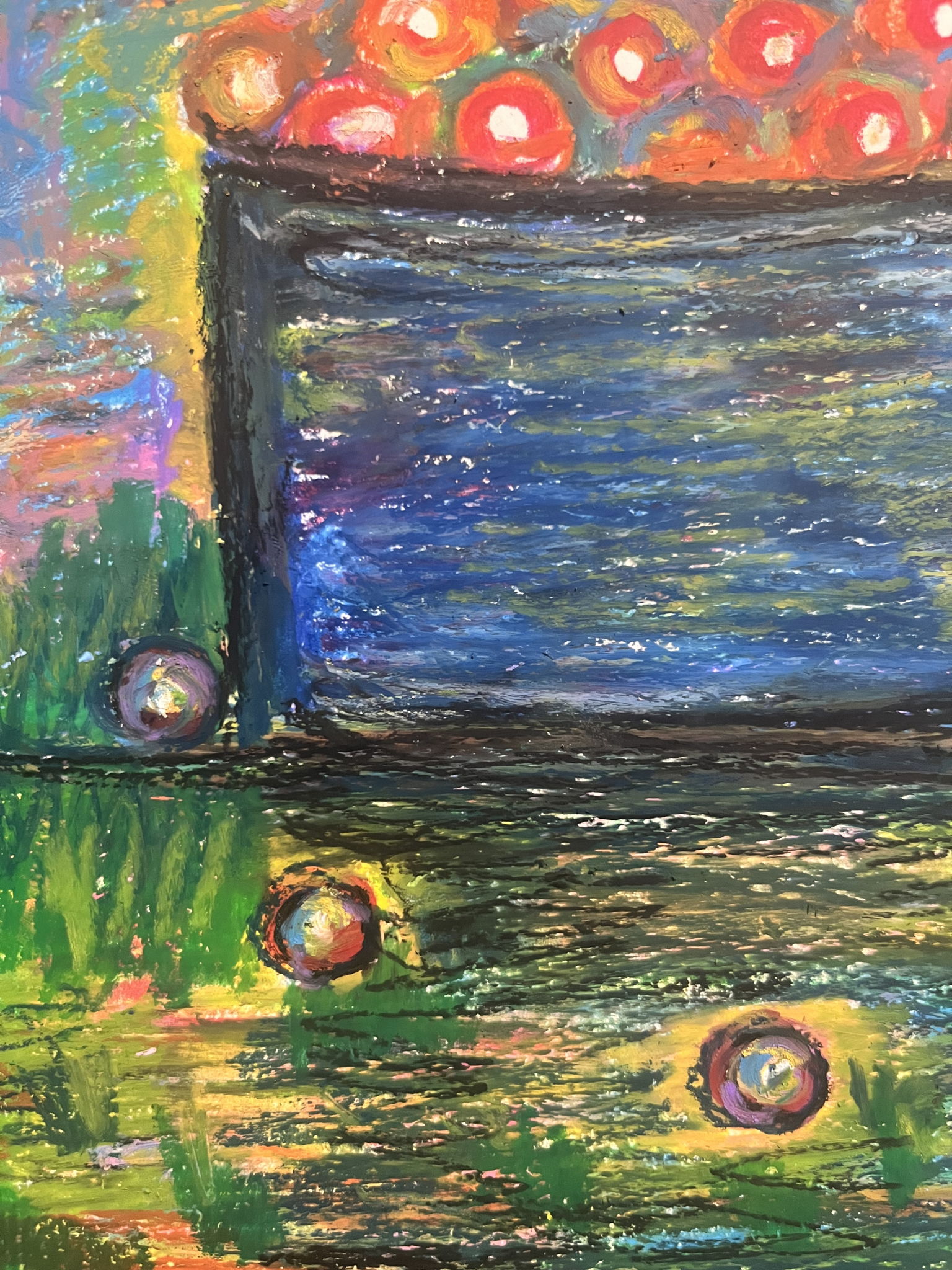 キラキラしたいくらをカラフルに描いたら楽しいんじゃないかと思って、たくさんの色を使ってみました。