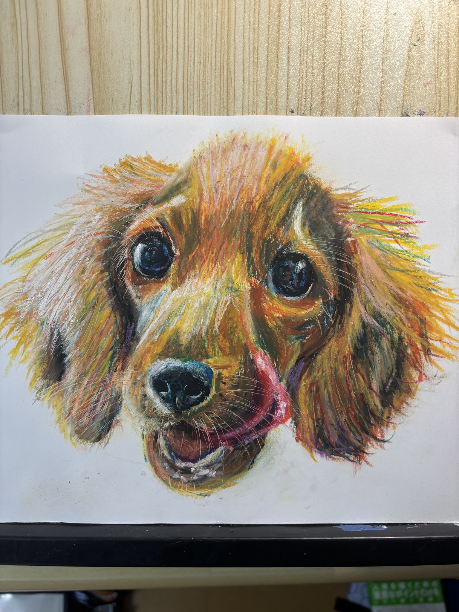 舌を出して口の周りを舐めてるところです。アートクレヨンの発色の良さを活かせたかなと思います。