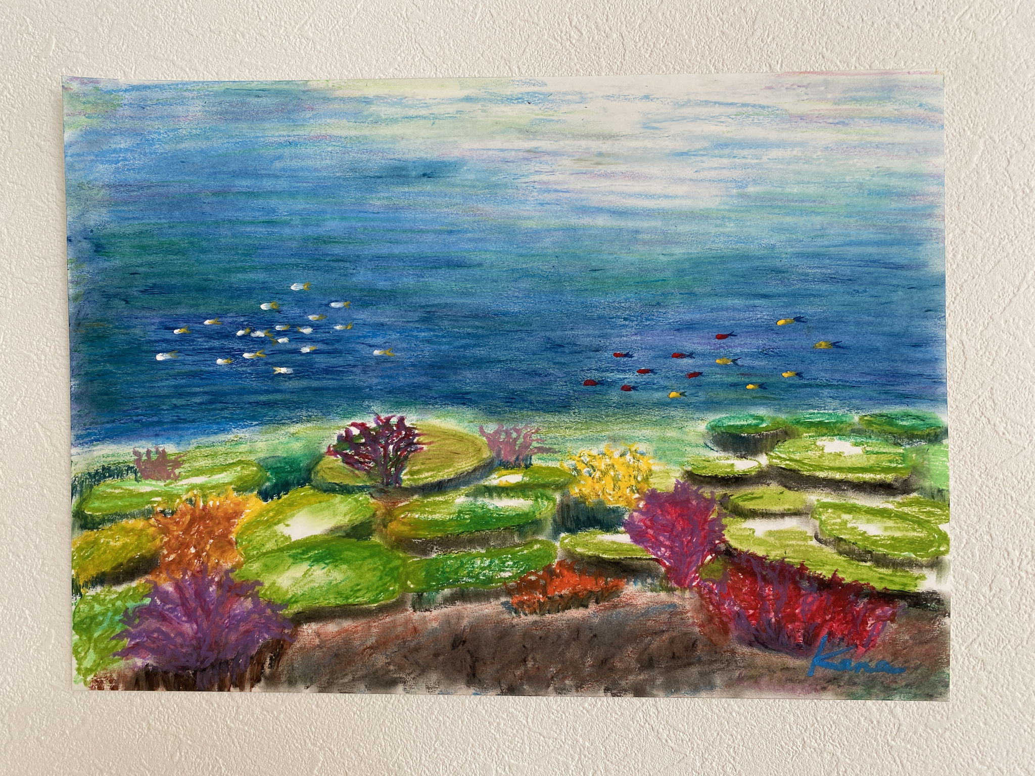 沖縄でシュノーケリングした時に珊瑚の美しさに感動し、今まで知らなかったこの彩り豊かな海の中の世界を描いてみたいと思いました。あの日見た景色を再現するにはまだまだ腕が足りませんが、描いている時はとても幸せな気持ちになります。