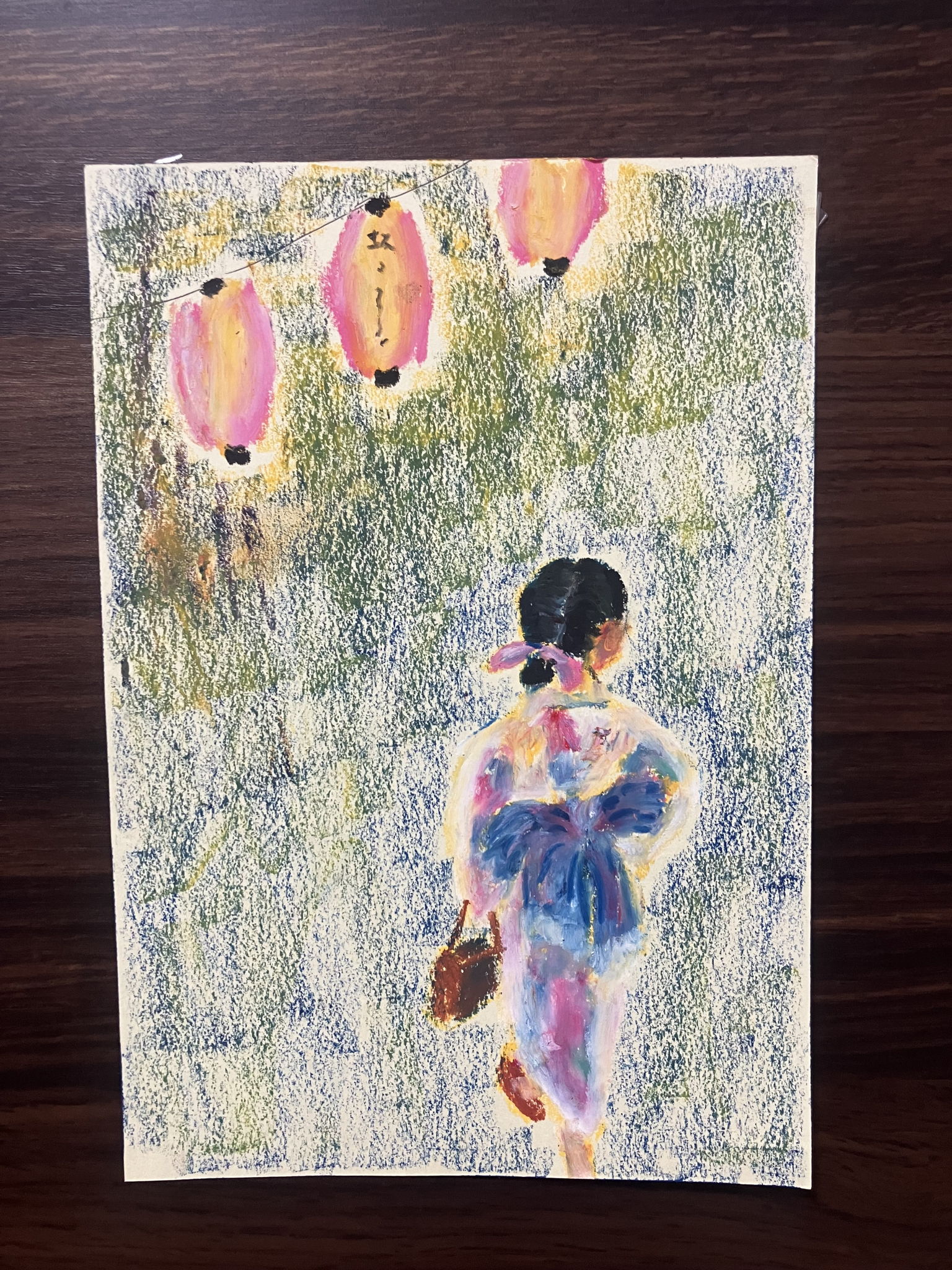 娘と行った夏祭りをイメージして描きました。