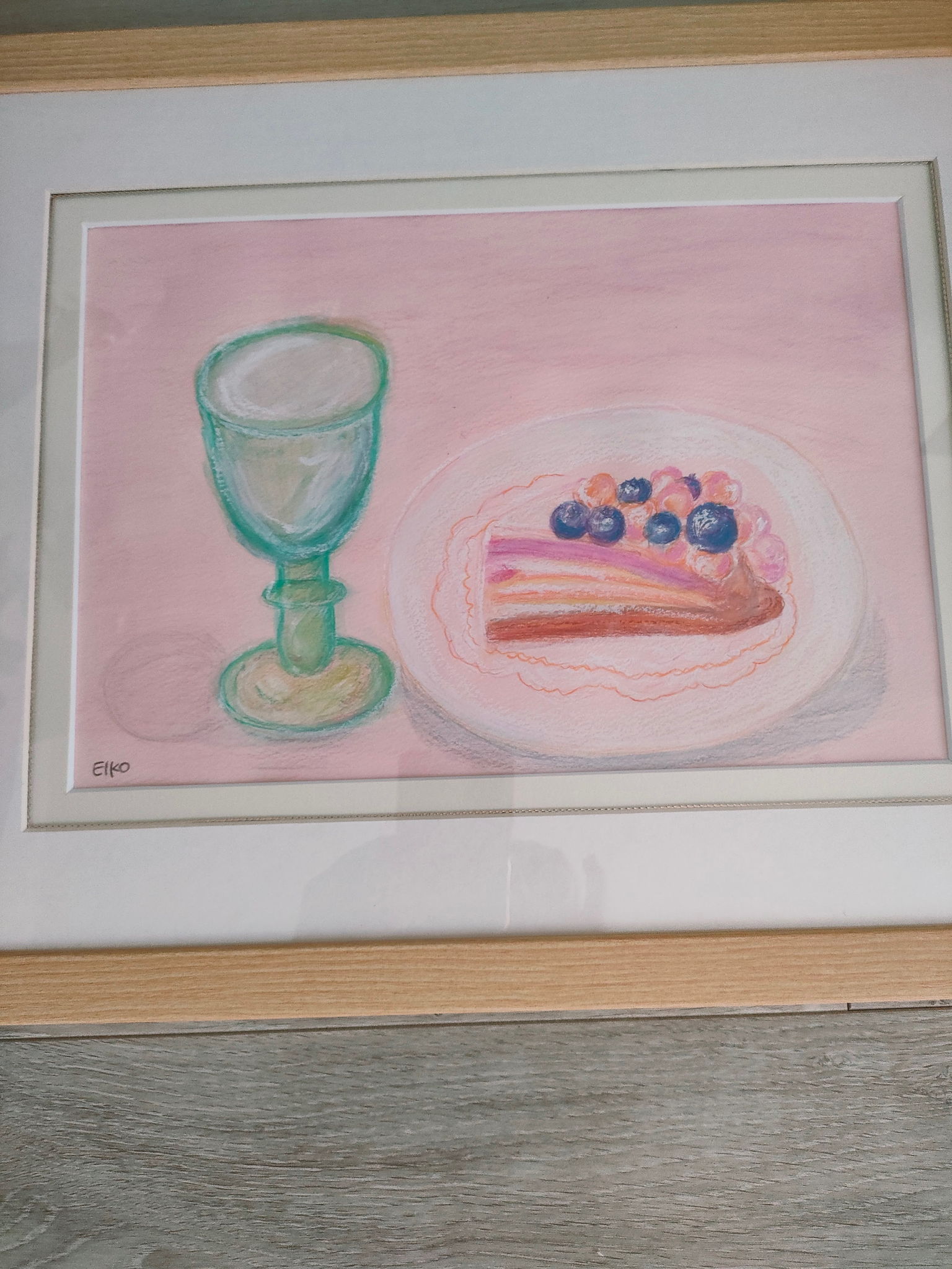 きれいな空、実りの大地には、笑顔のみどりのりんごとさくらんぼが嬉しそうにしています。