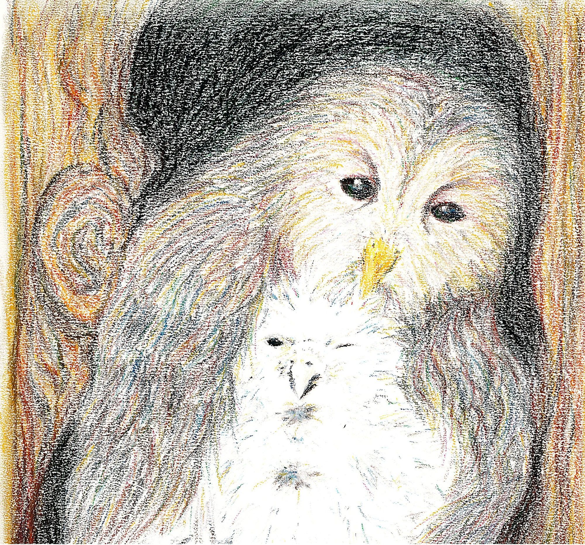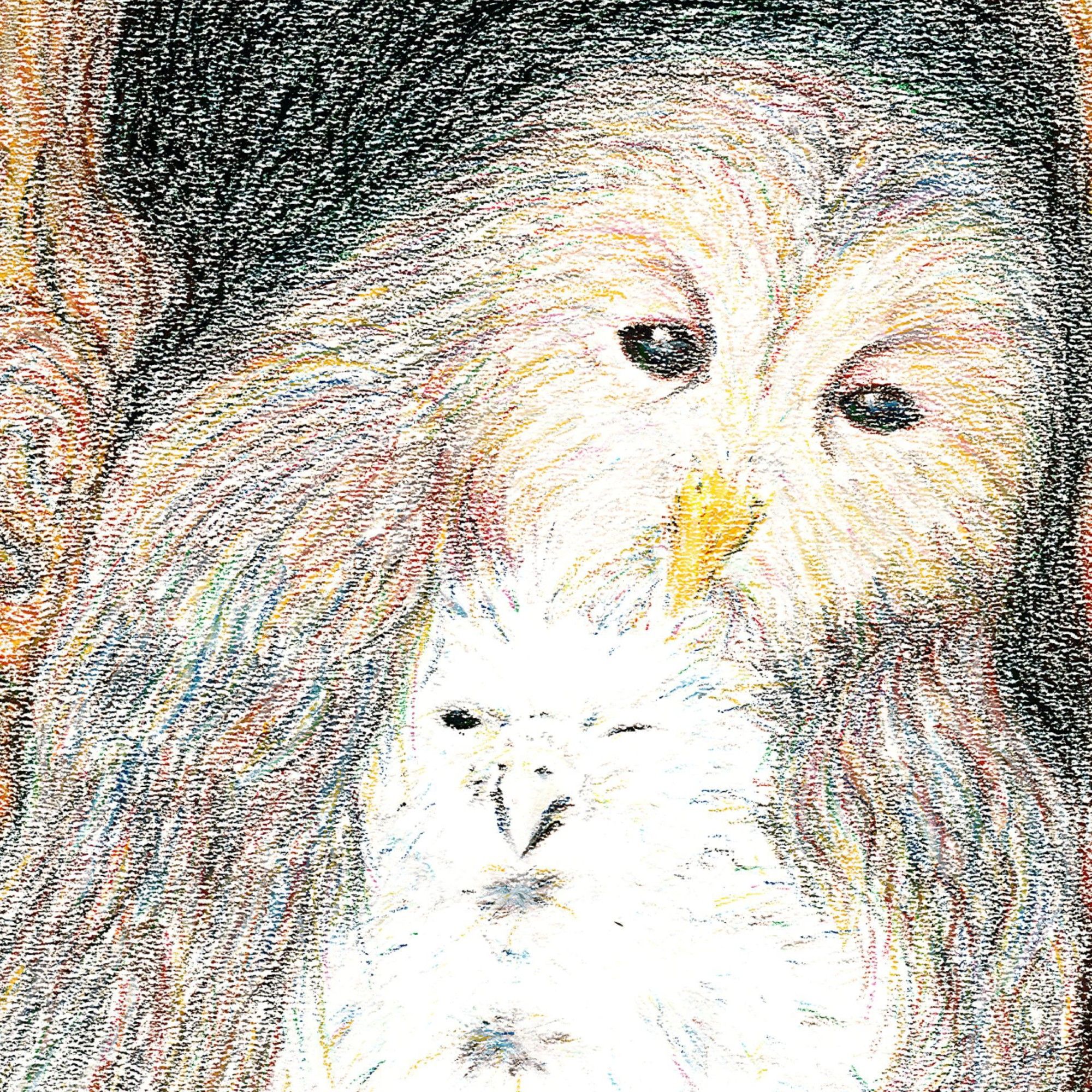 フクロウのふわふわの羽をみて、「包み込む愛情」を表現してみました。