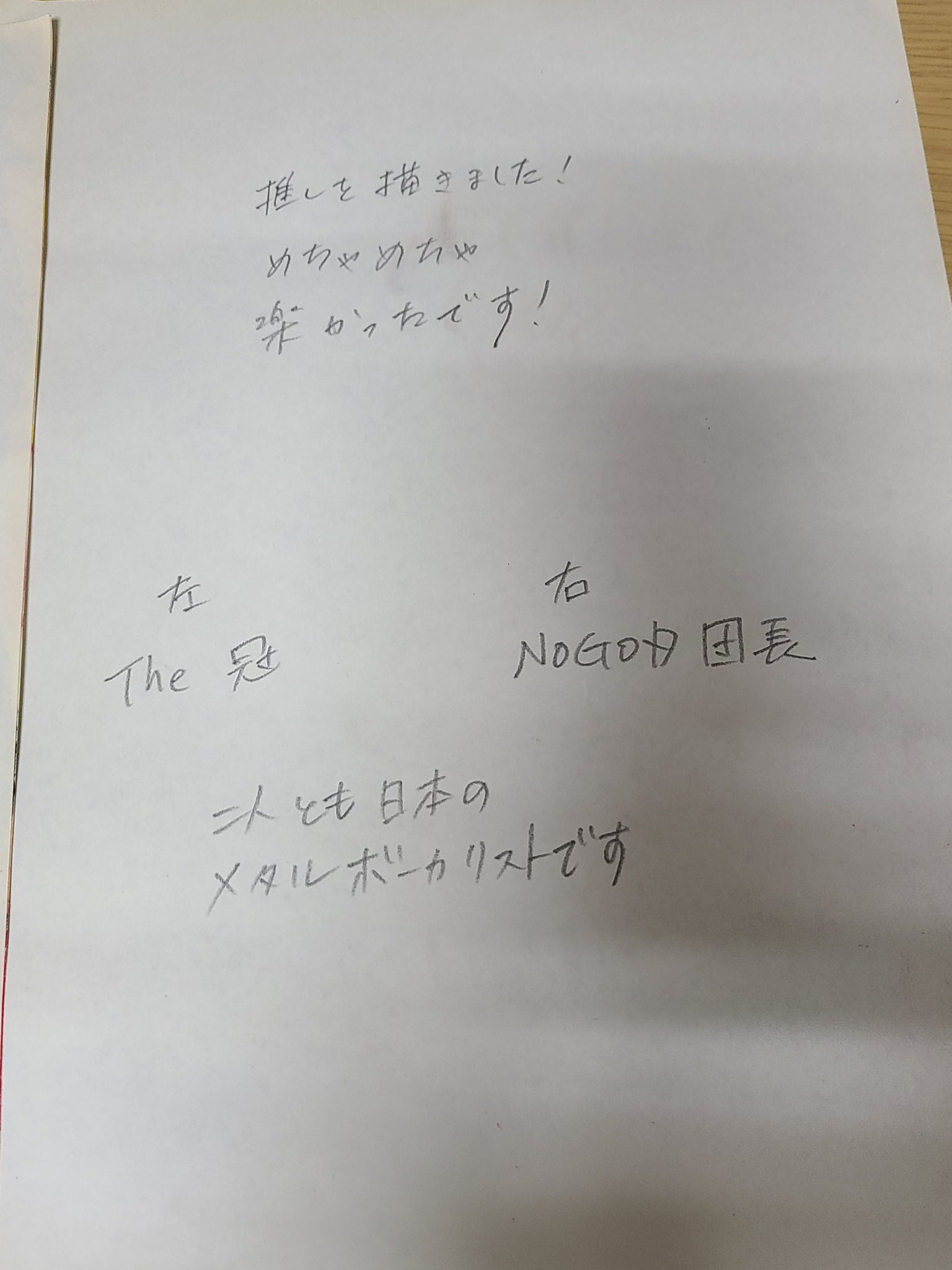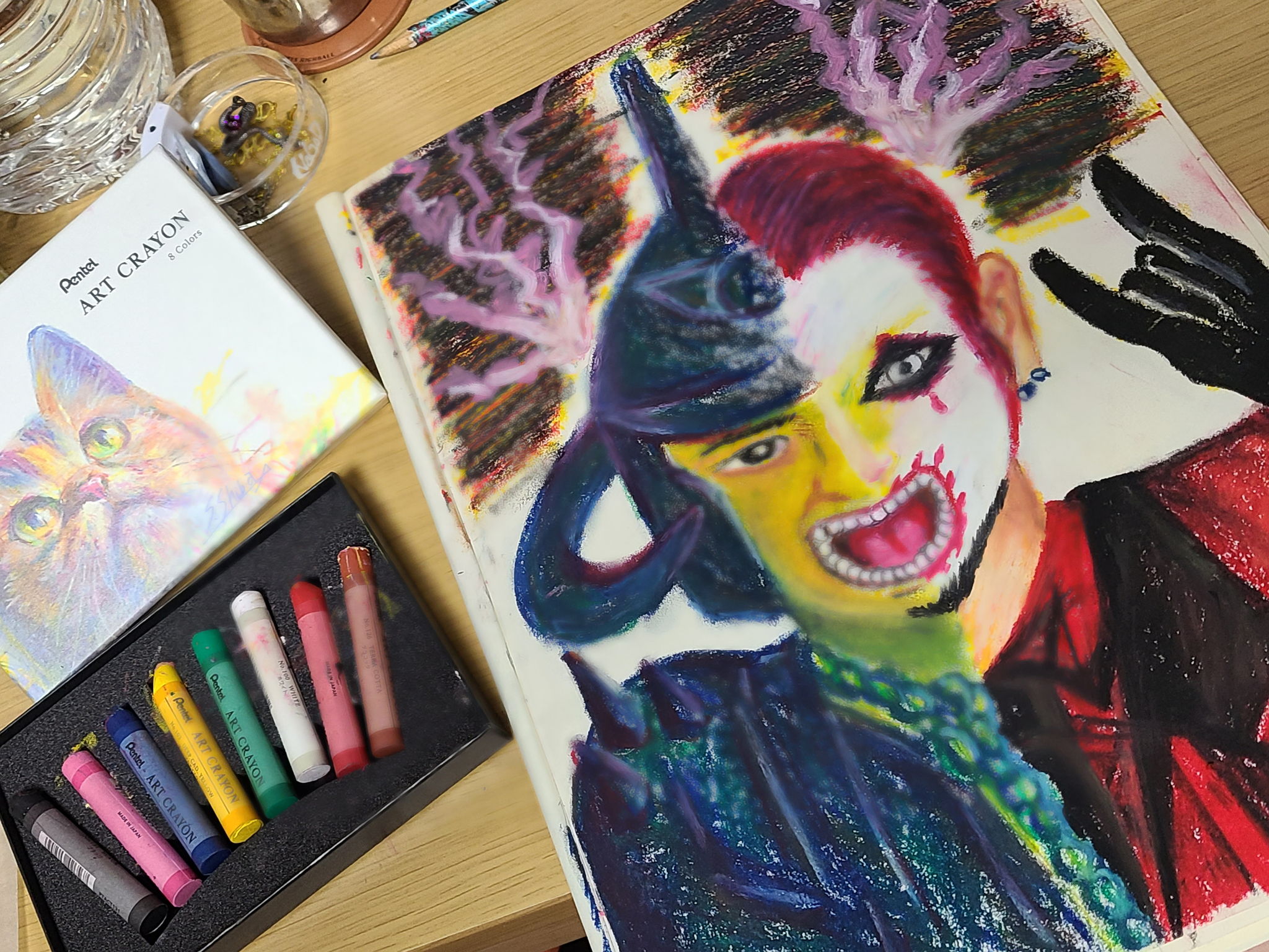 クレヨンを持つのは数十年ぶりでしたが、過去の記憶にあるクレヨンとは全然違いました。こんなに滑らかで色も混ざり合うなんて感動です。右のボーカリストは顔を白塗りしているので、白のクレヨンが大活躍でした!楽しい企画ありがとうございました♪