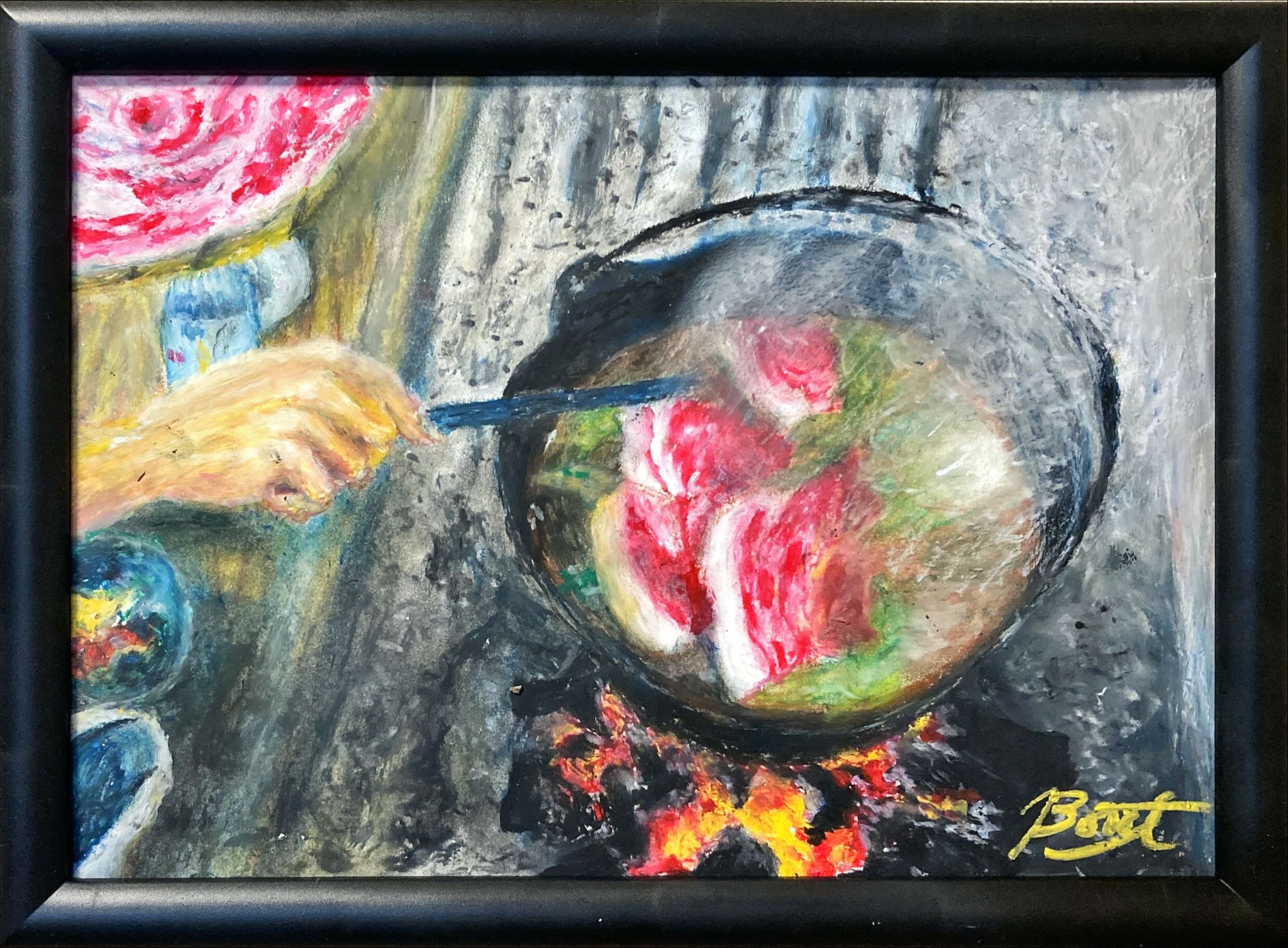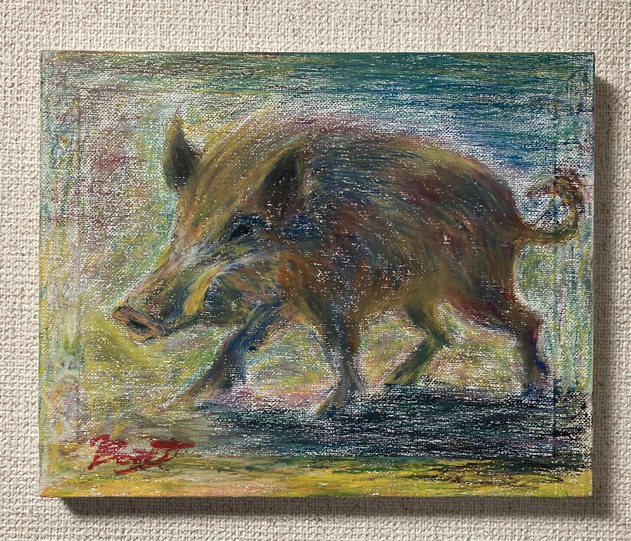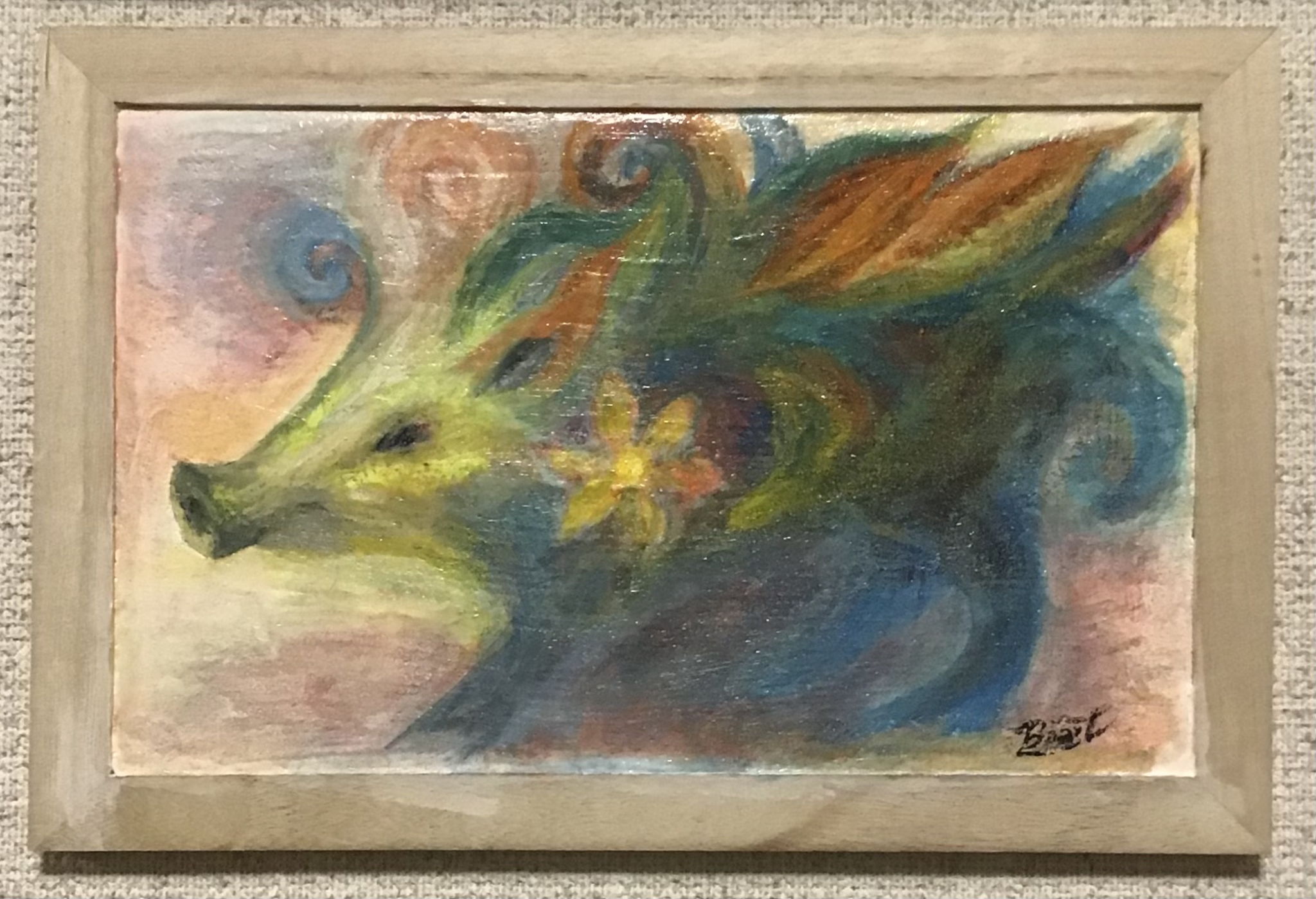猪の野生と守護性、ハート形は猪目模様でもあり感情を象徴し、女性像はアフロディーテを思わせる女神のごとくに霊性と変容の力を。そして、それぞれが主従なく一つ場に共鳴し交差している様。見る側の内に眠る三相を呼び起こす。