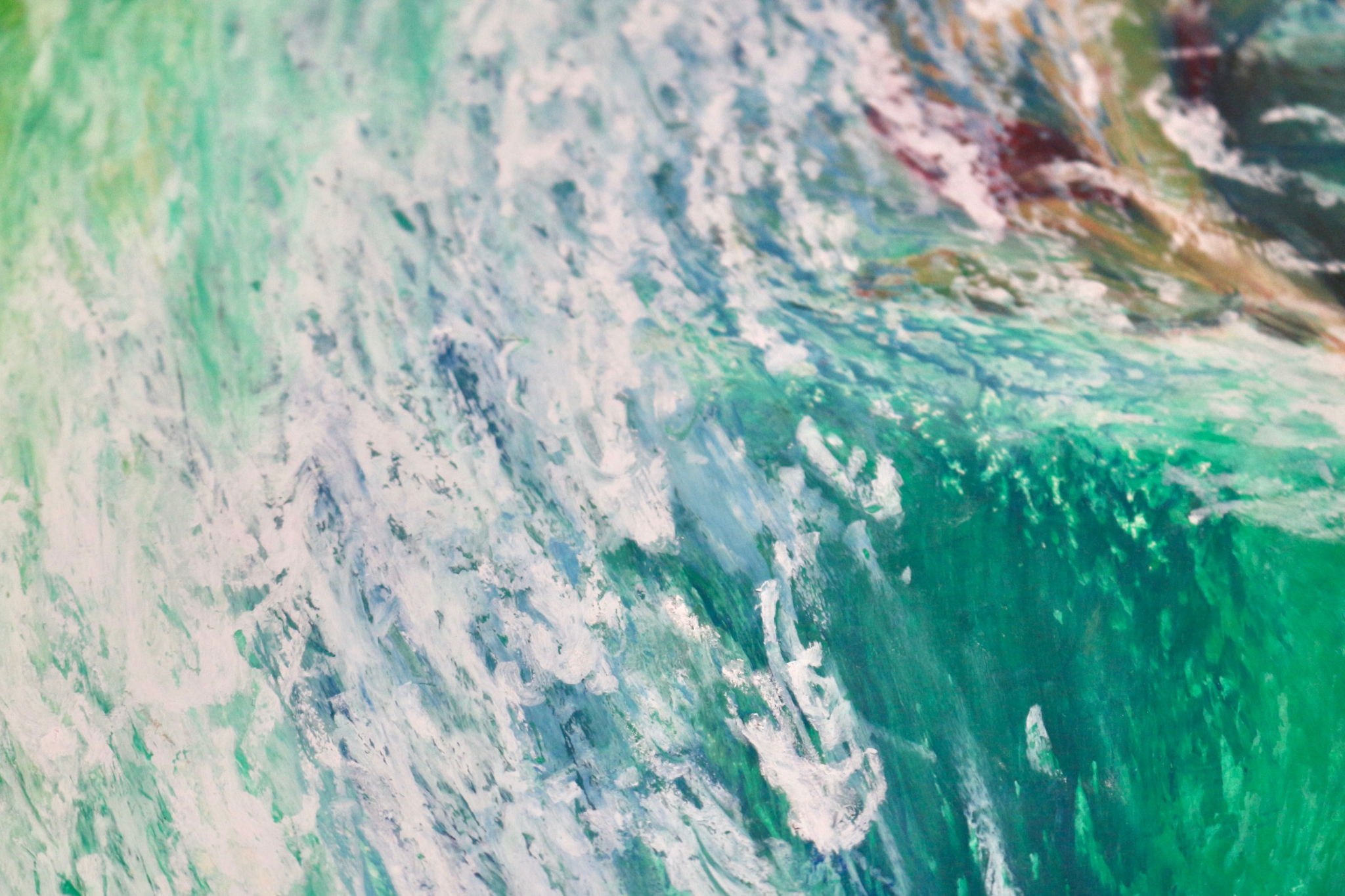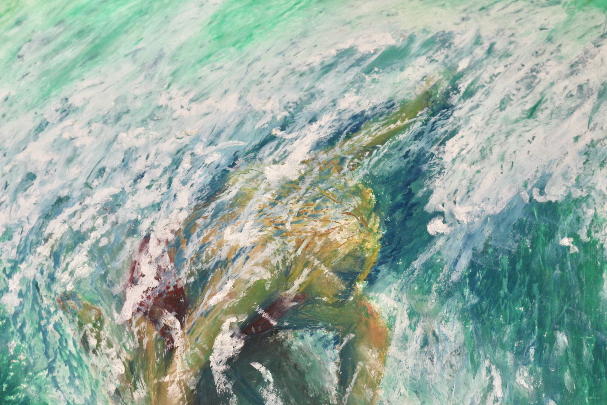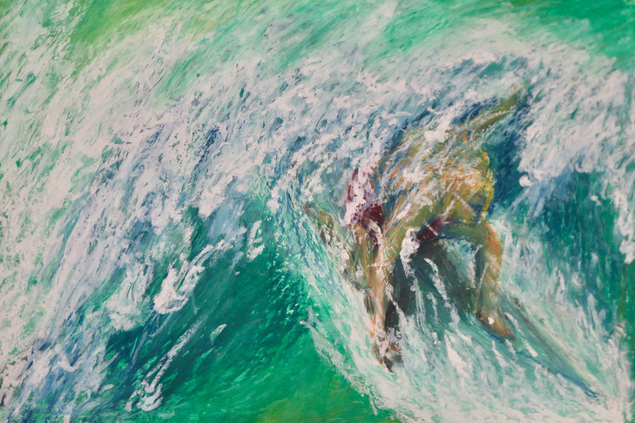 海の透明感や美しさと、荒々しく打ち寄せる波。その両面を抱える自然に同調し、挑み、そして楽しむサーファーの姿を表現しました。波と一体になる瞬間の快感をイメージしました。