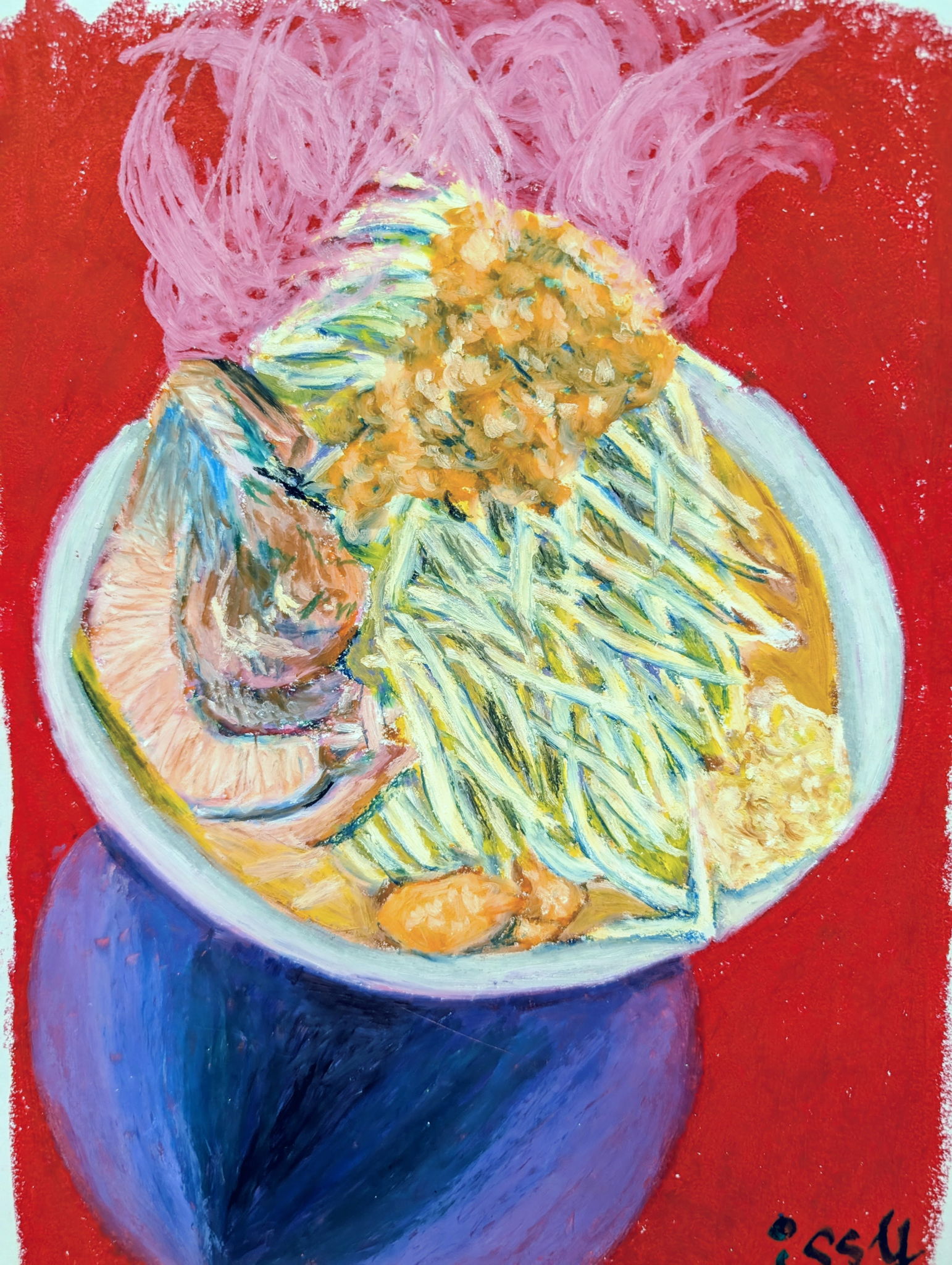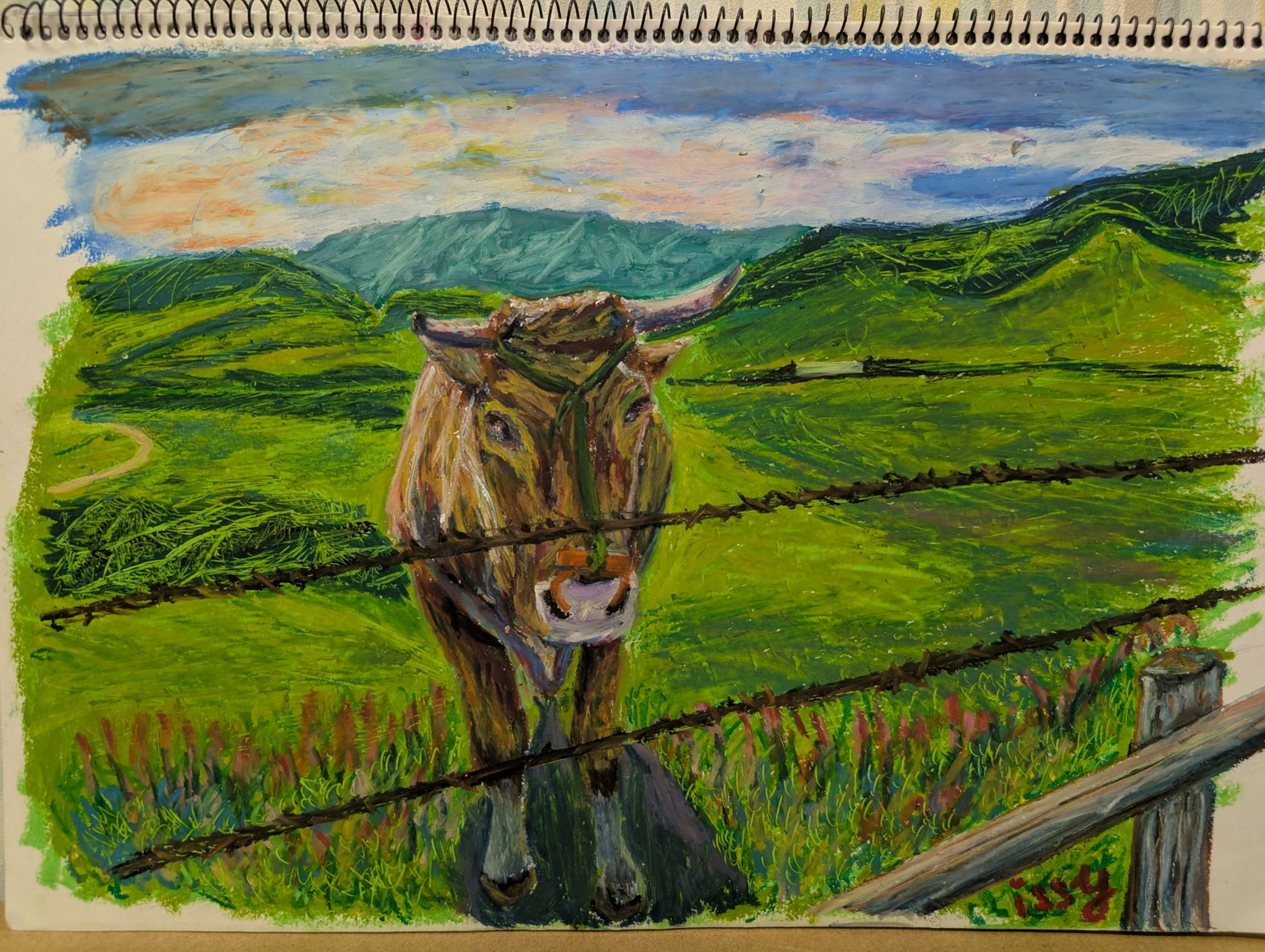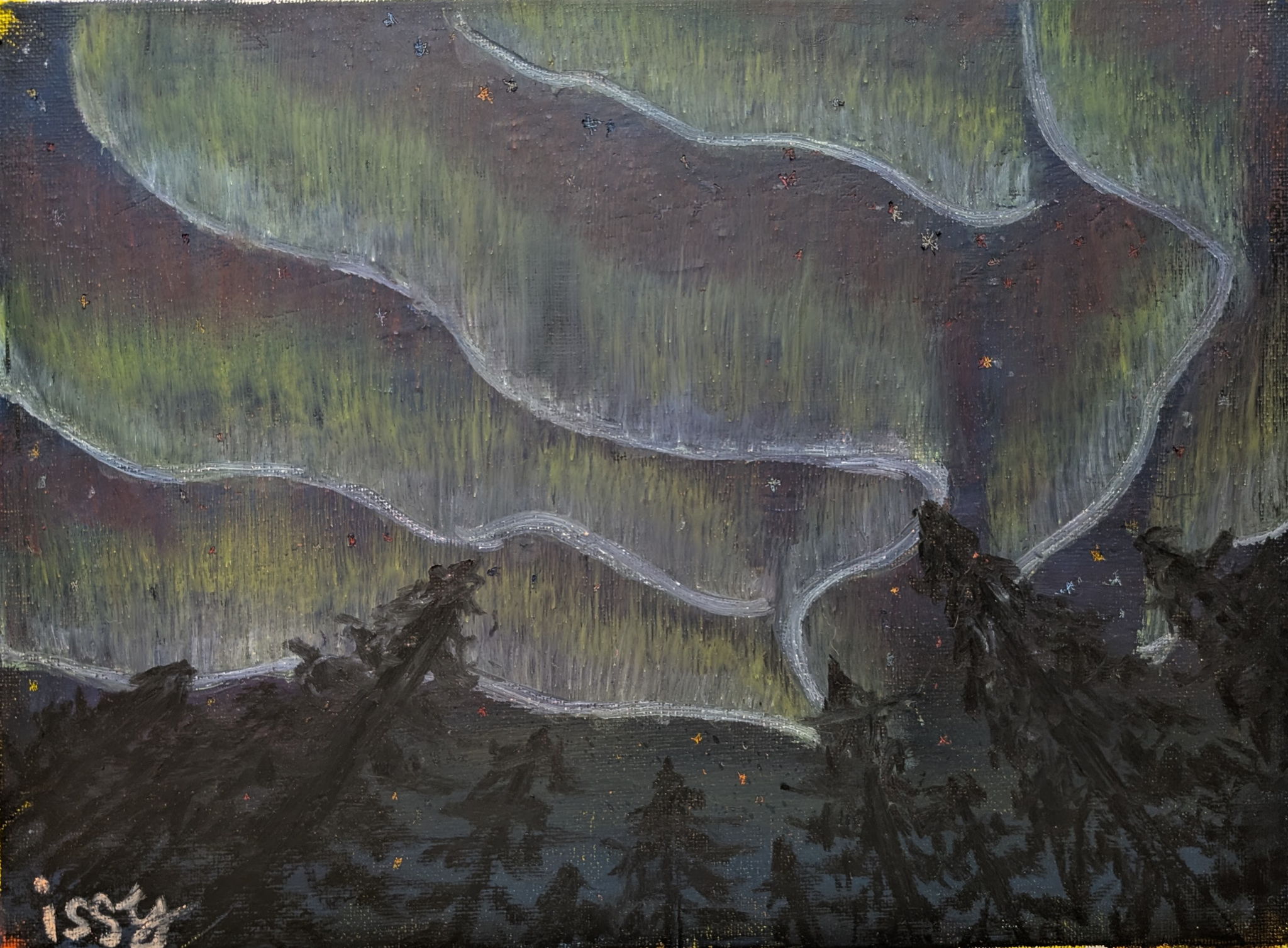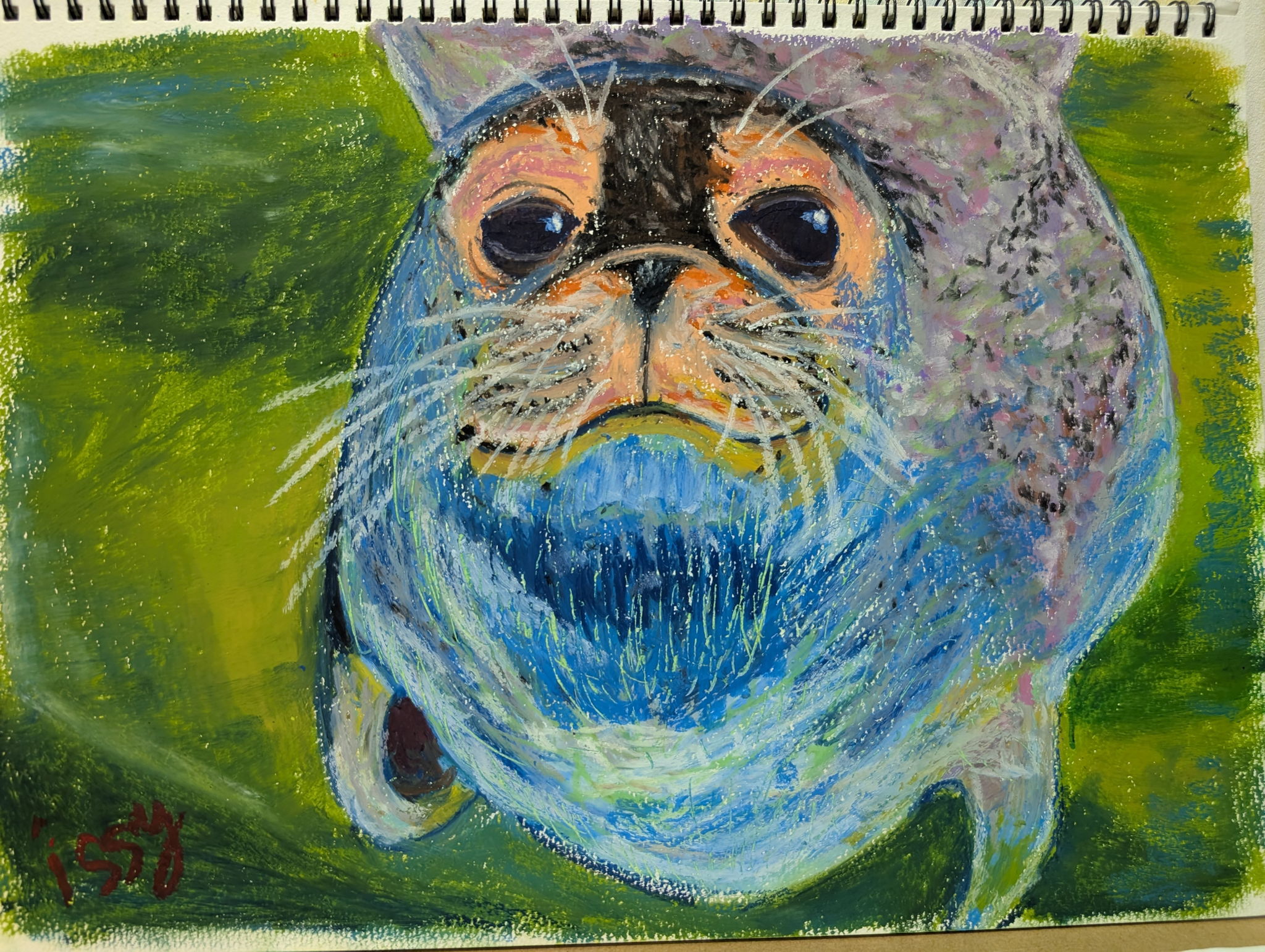 子どもからもらったどんぐりに、かわいらしい顔がついていました。そのどんぐりが森に帰って来た様子を描いてみました。