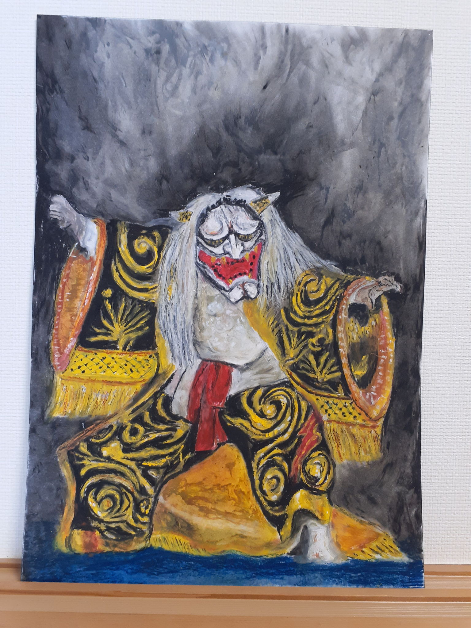 秋祭りに各地の神社で行われる五穀豊穣を祈願して舞い踊る奉納神楽。それを毎年楽しみにしていた父が今年4月に他界しました。その父を偲んで描いてみました。絵はあまり描いた事がありませんし、もちろんクレヨンなんて大人になってに使うとは思いませんでした。ですが、このアートクレヨンはとても使いやすく描きやすかったです。宜しくお願いします。