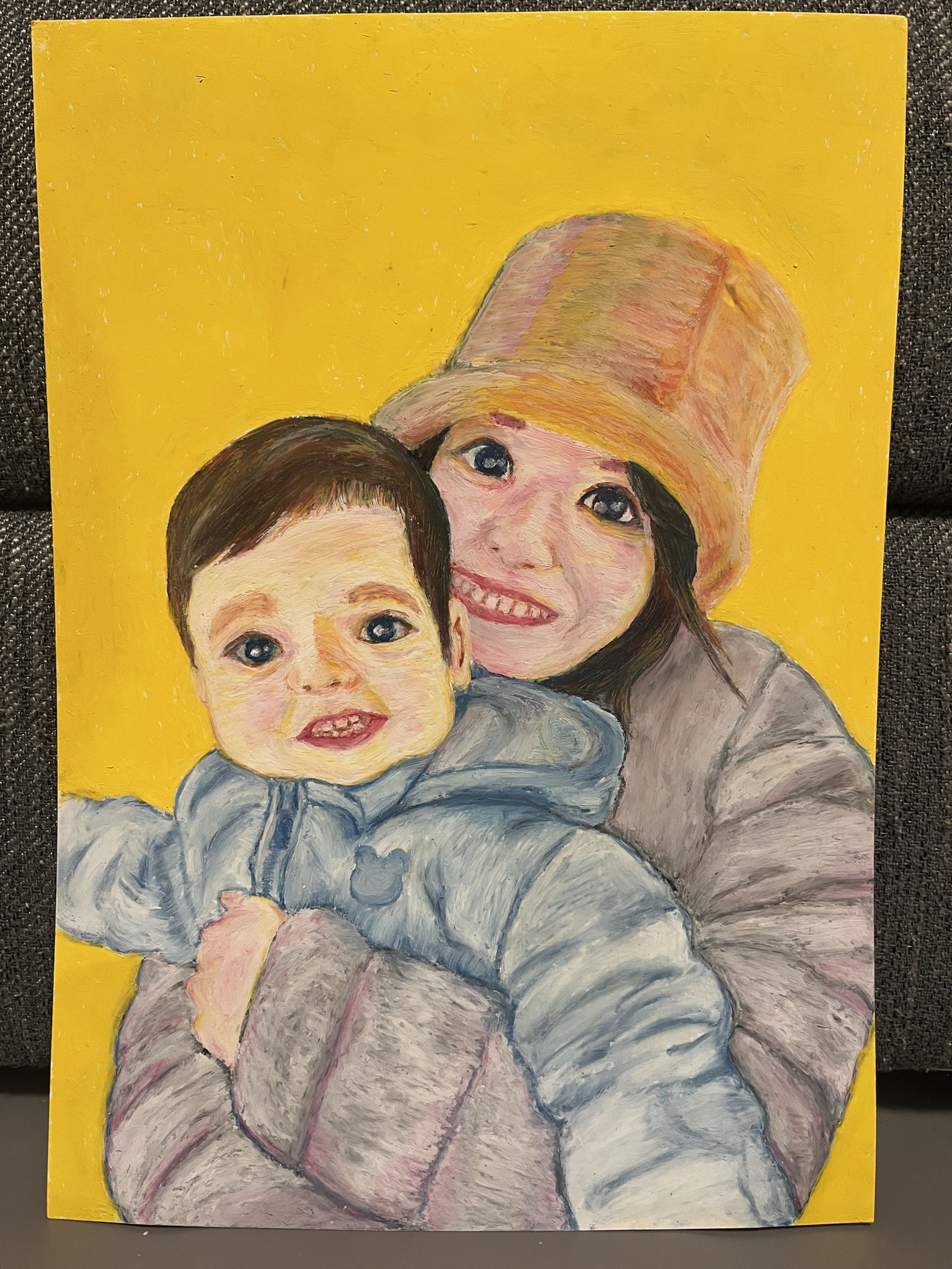 どんな時も、この絵を見て笑顔に戻れるよう願いを込めて描きました。