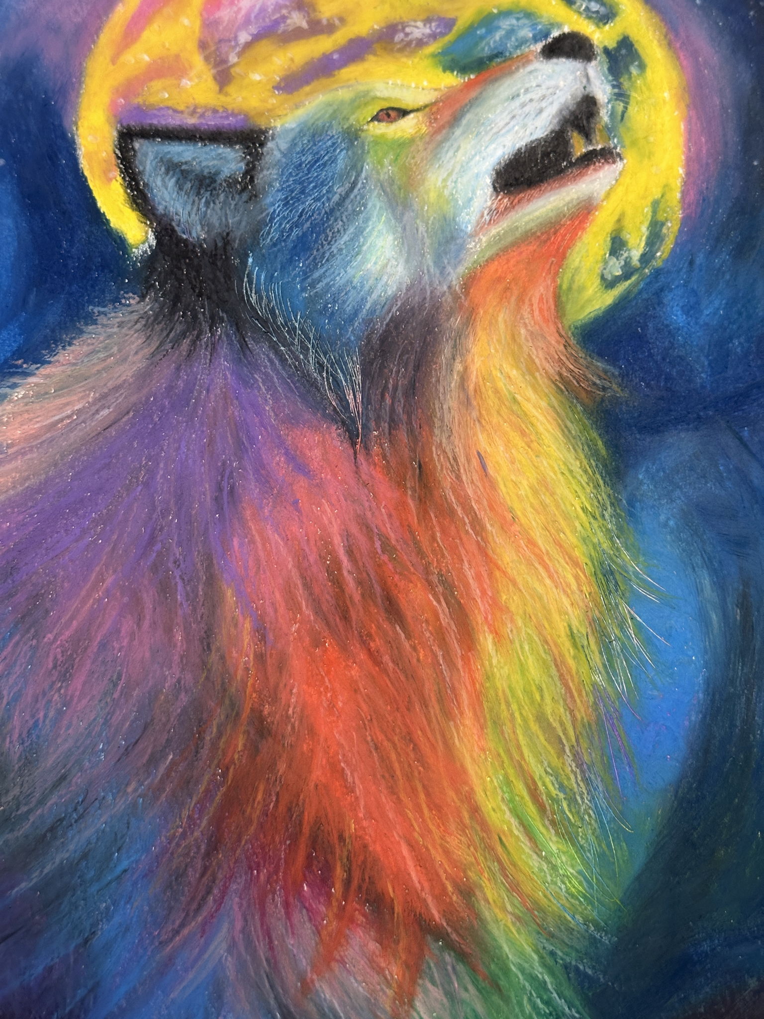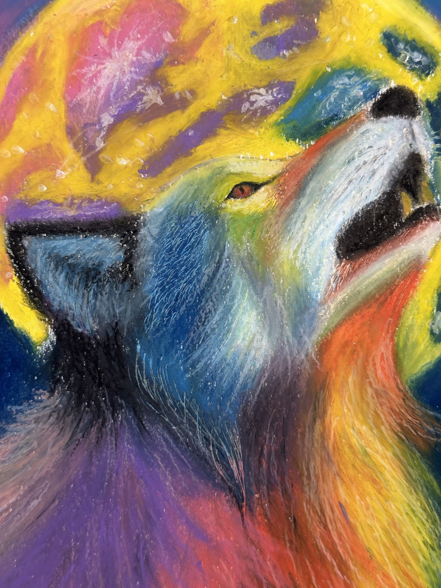 月夜に照らされて様々な色を纏う狼を描きました。