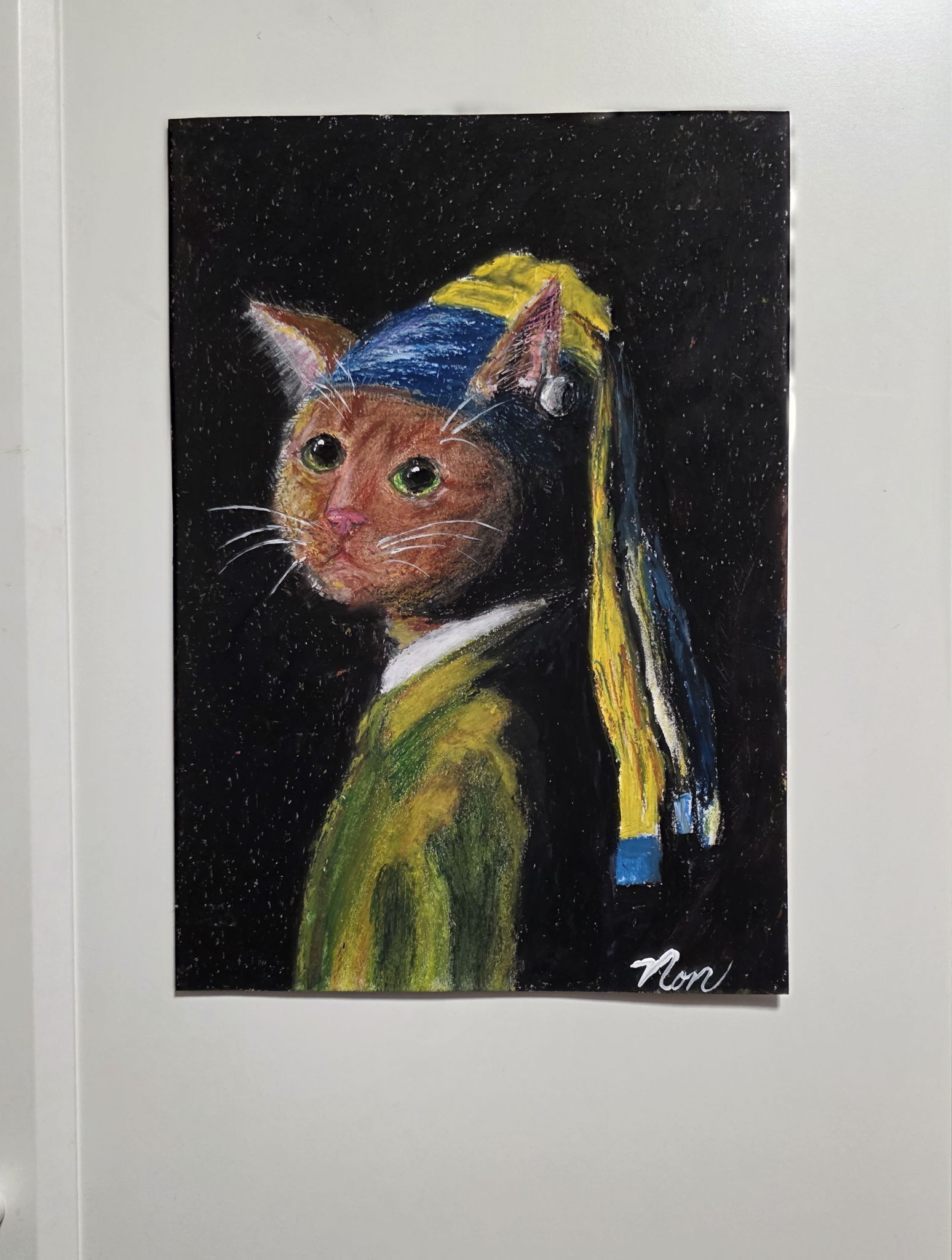 所どころに明るい色を塗ったあと、全てを黒に塗りつぶし狼の形が出るように削りました。