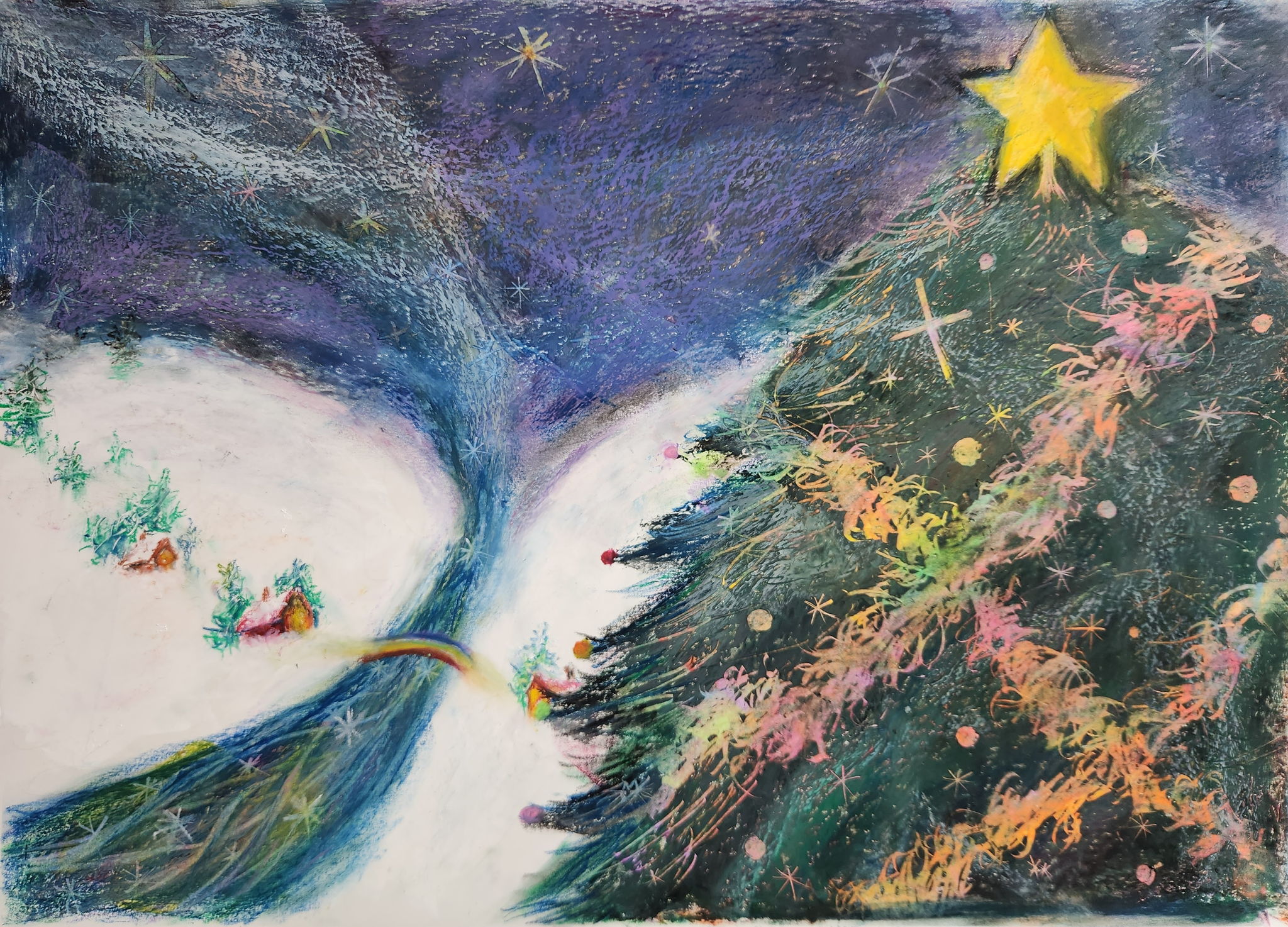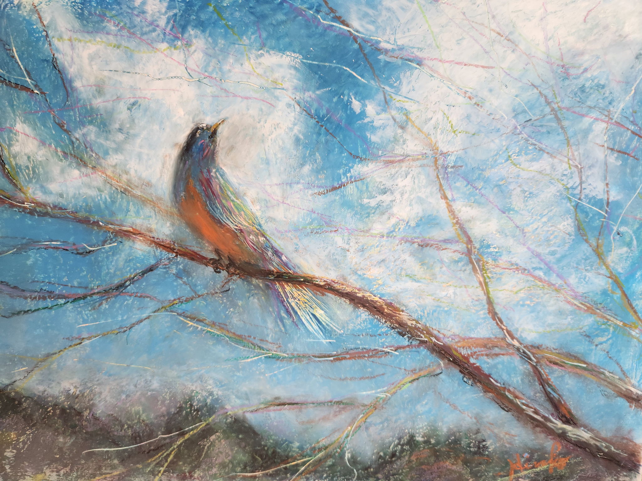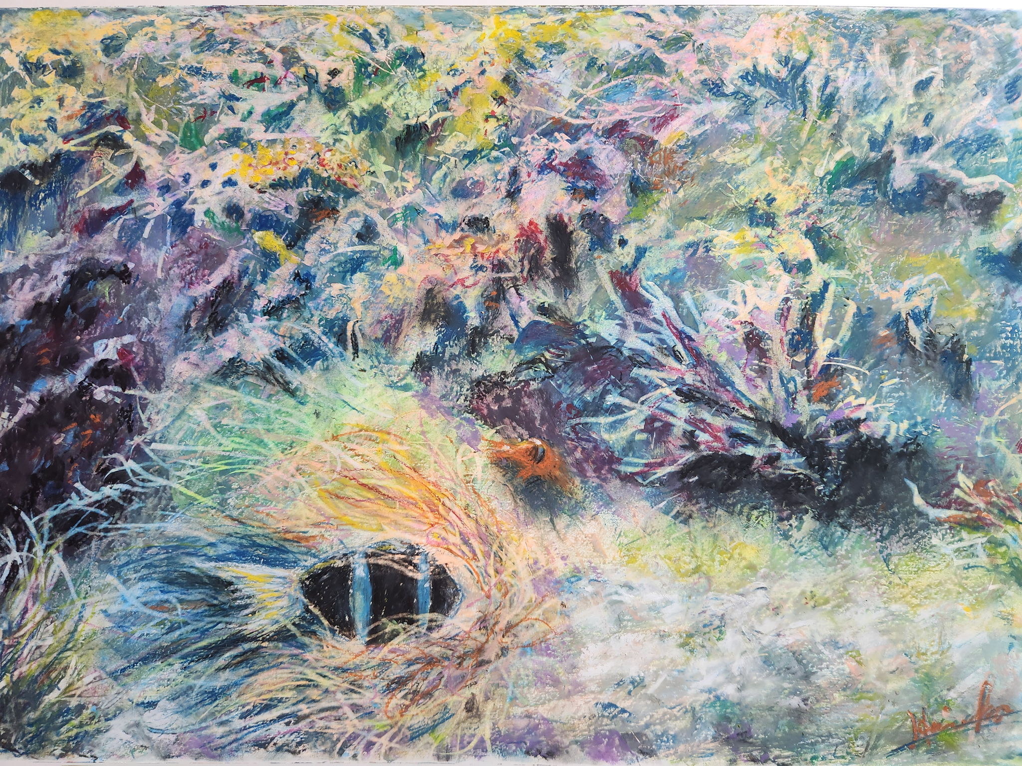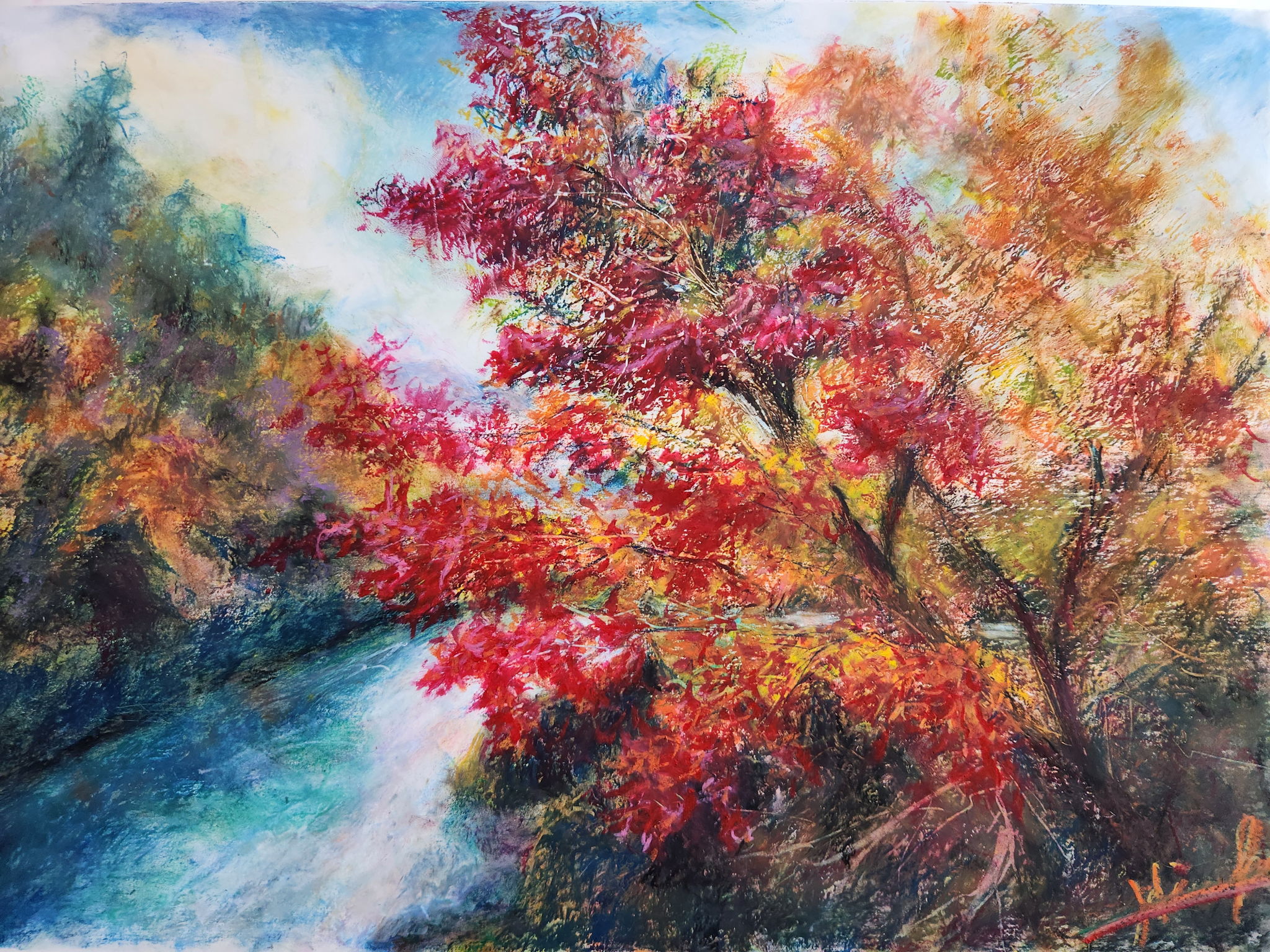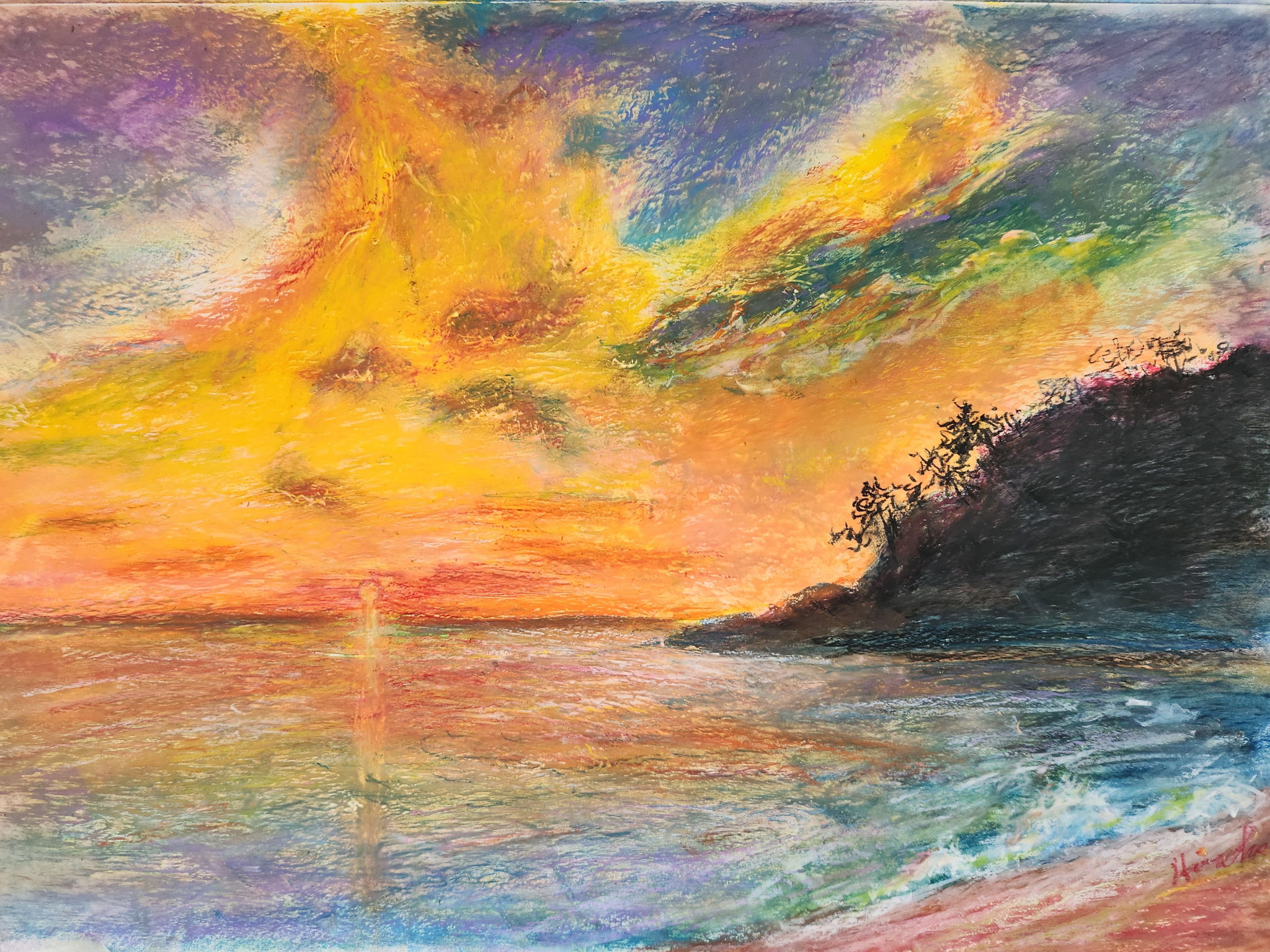 この春、河津方面に行った時に撮った写真から描きました。実際の色よりもその美しさを誇張しました。