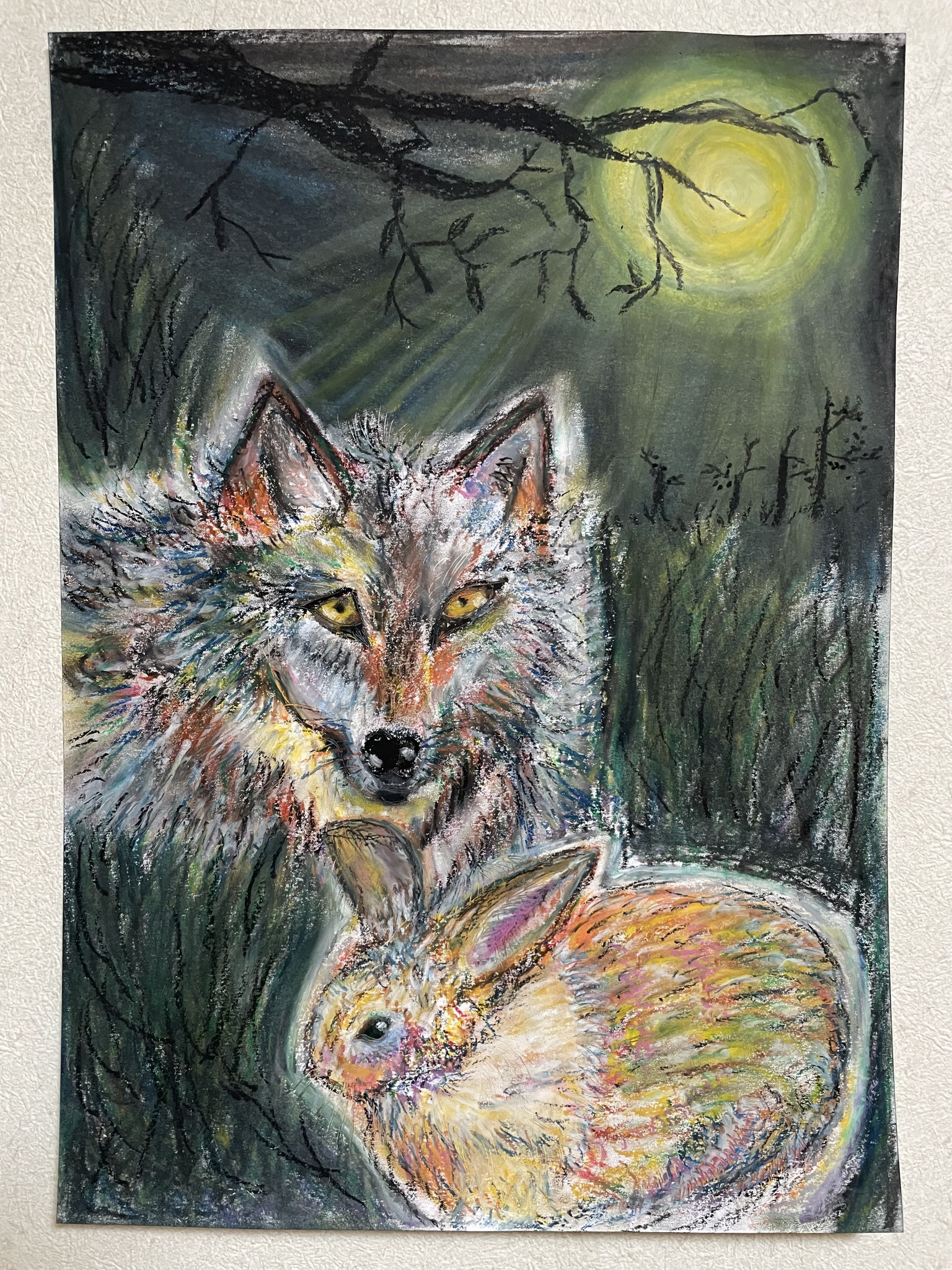 月に関係する二匹の動物が、出会いました。寂しがりやのうさぎと、孤独を好む一匹おおかみです。
