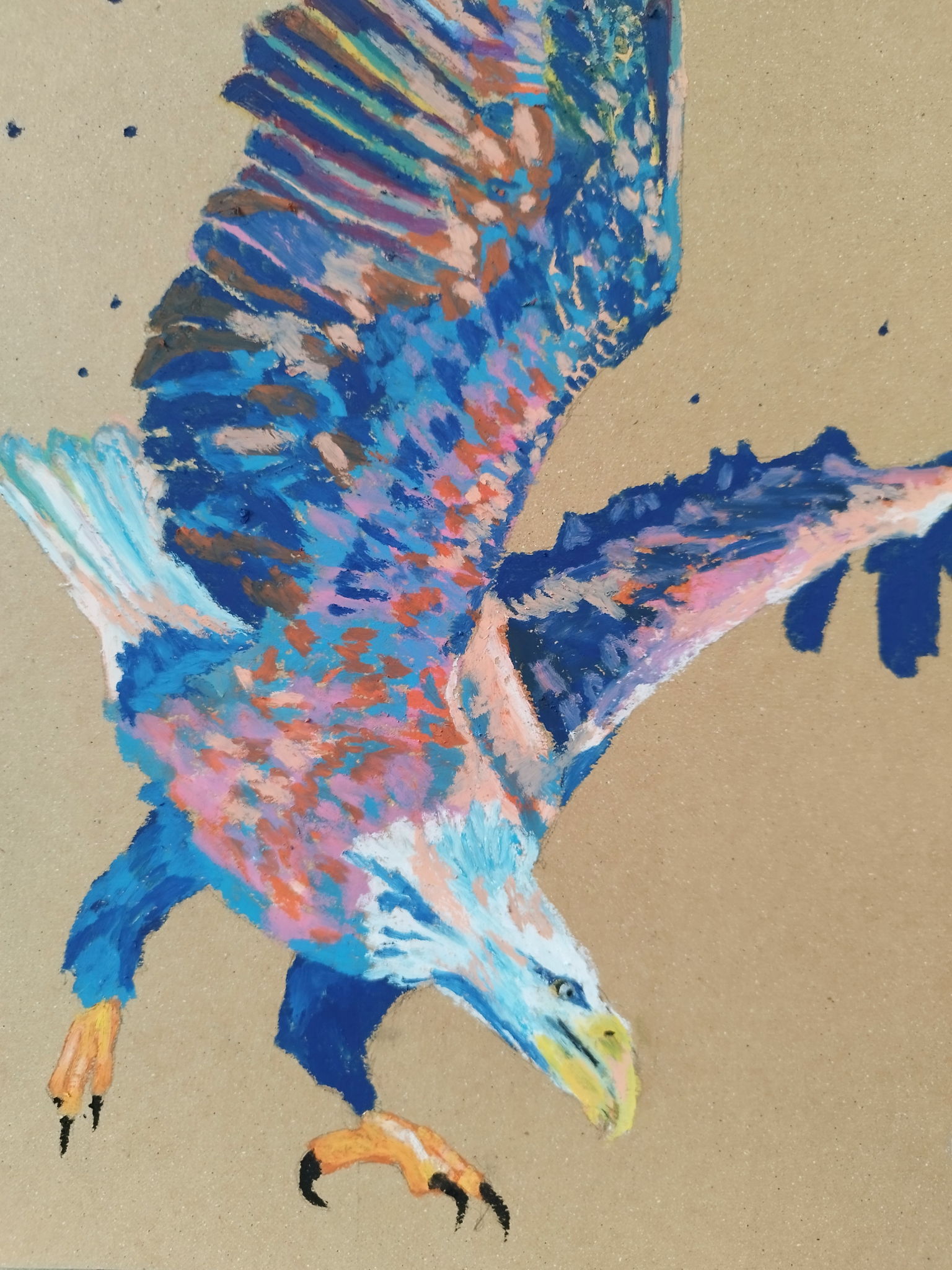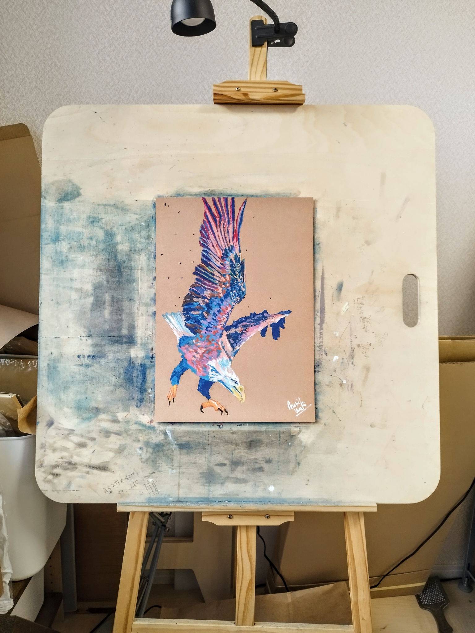 文字通り、見る人の心を鷲掴みにする存在(grabber)である白頭鷲。もう少し余白を活かした仕上げにしたかったのですが、ダイナミックな羽根にフォーカスしました。