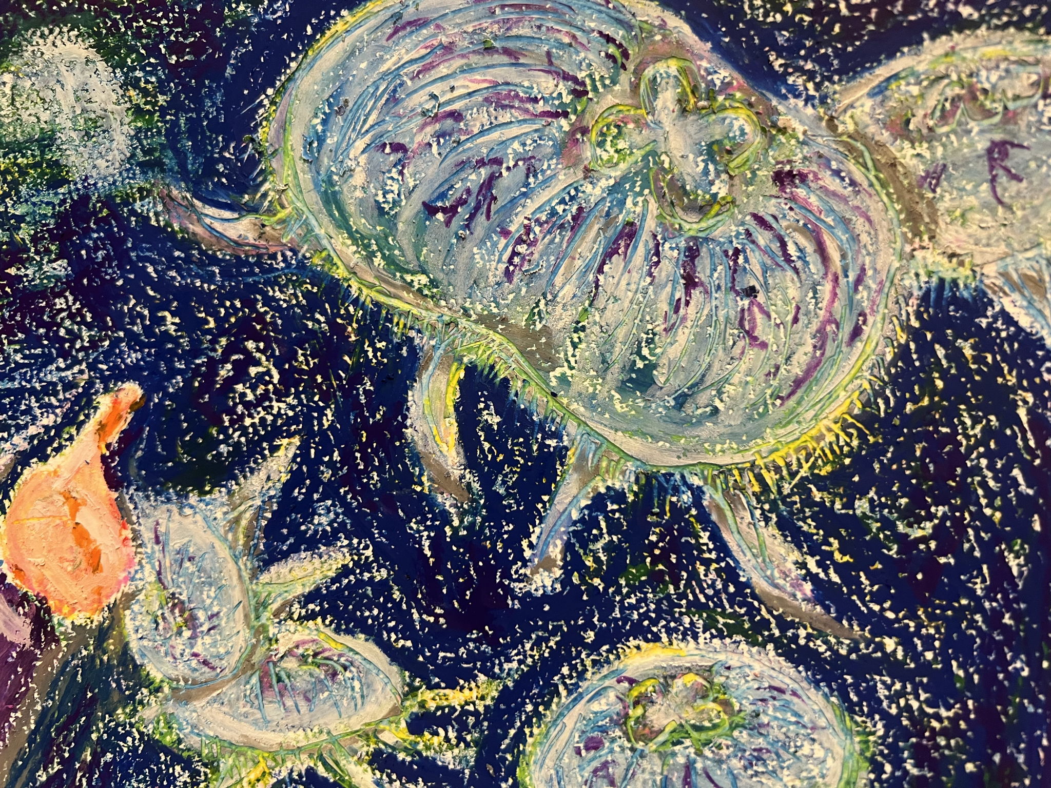 皆んな同じ様な水海月に見えていましたが、実はひとつひとつ違う。選ぶ娘達と選ばれる海月を描きました。