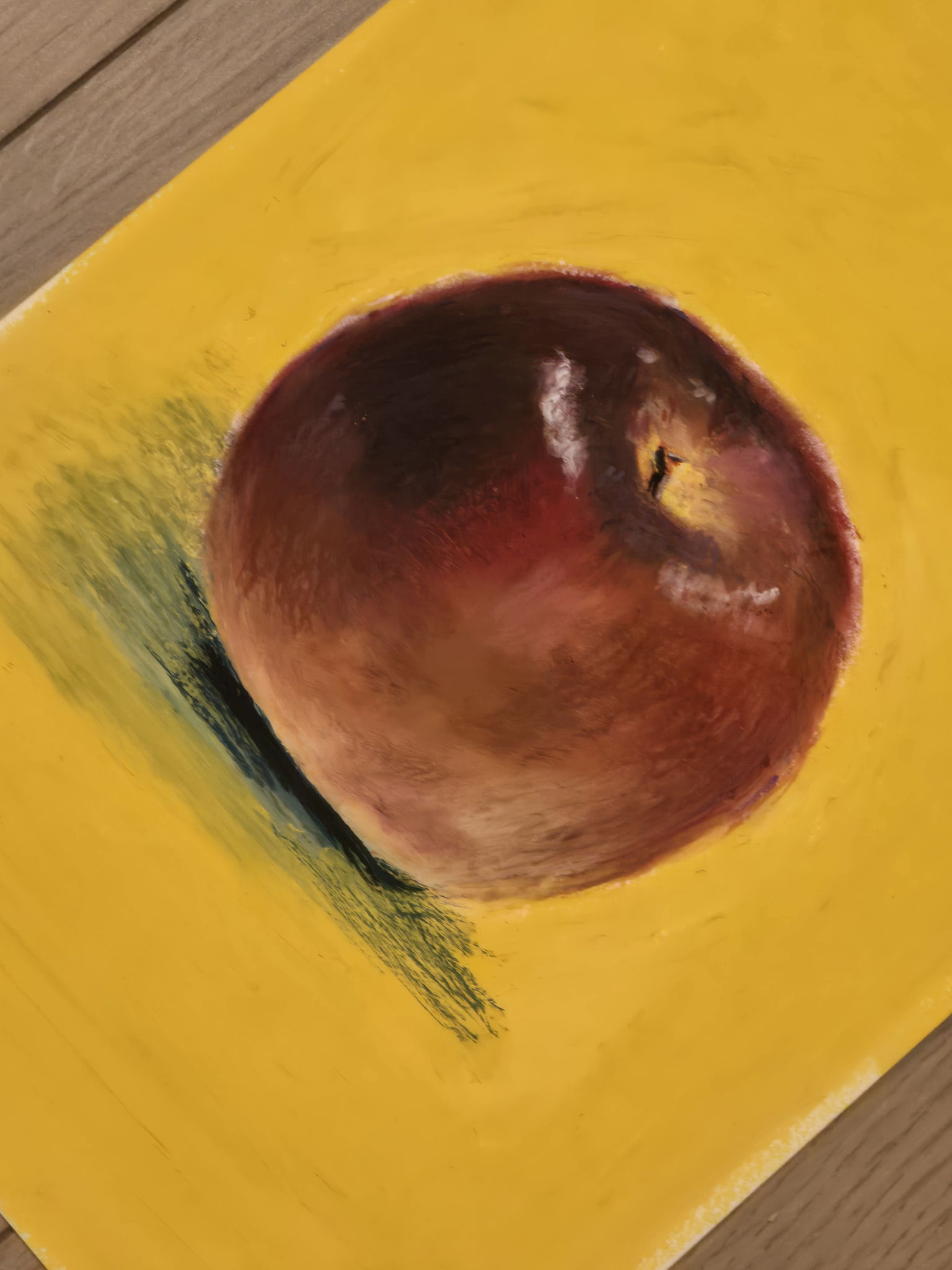 本物のりんごをみて描きました。モチーフにしたりんごは美味しく頂きました。