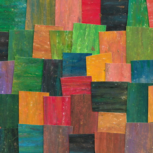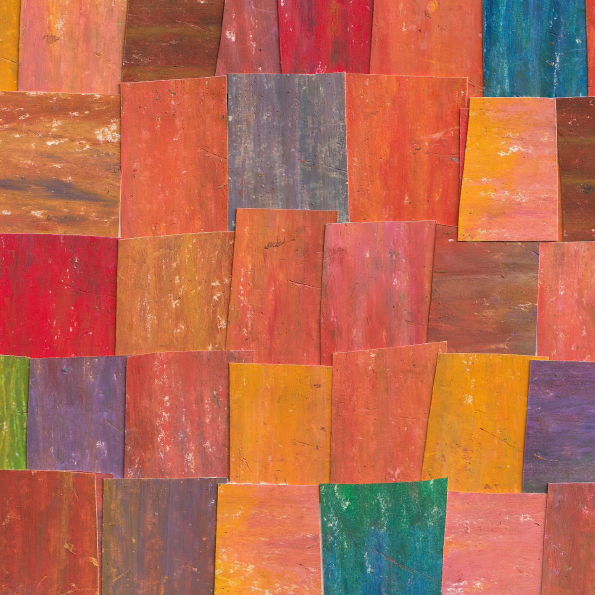 アートクレヨンを重ね塗りし、それをランダムな大きさにカット。