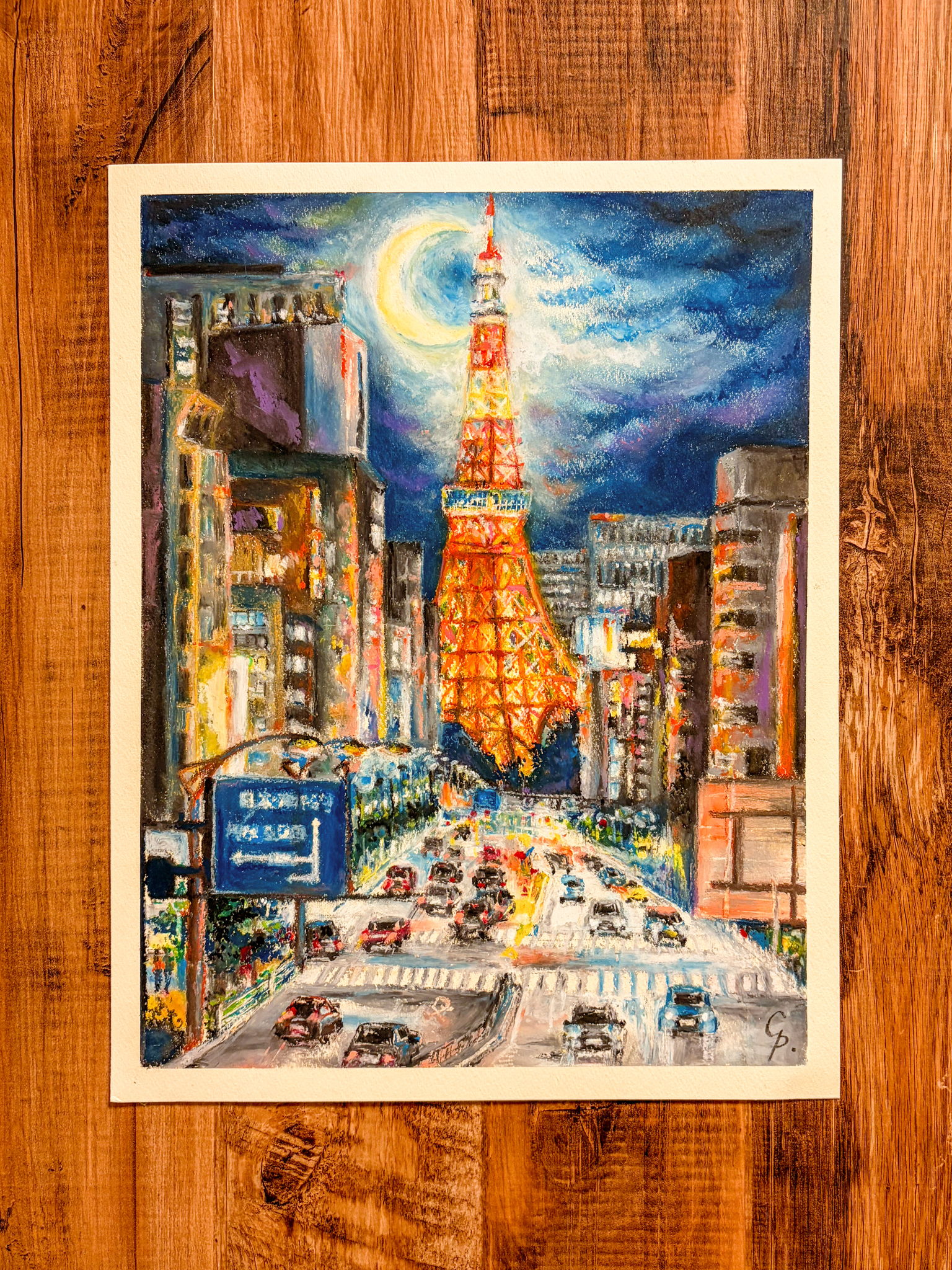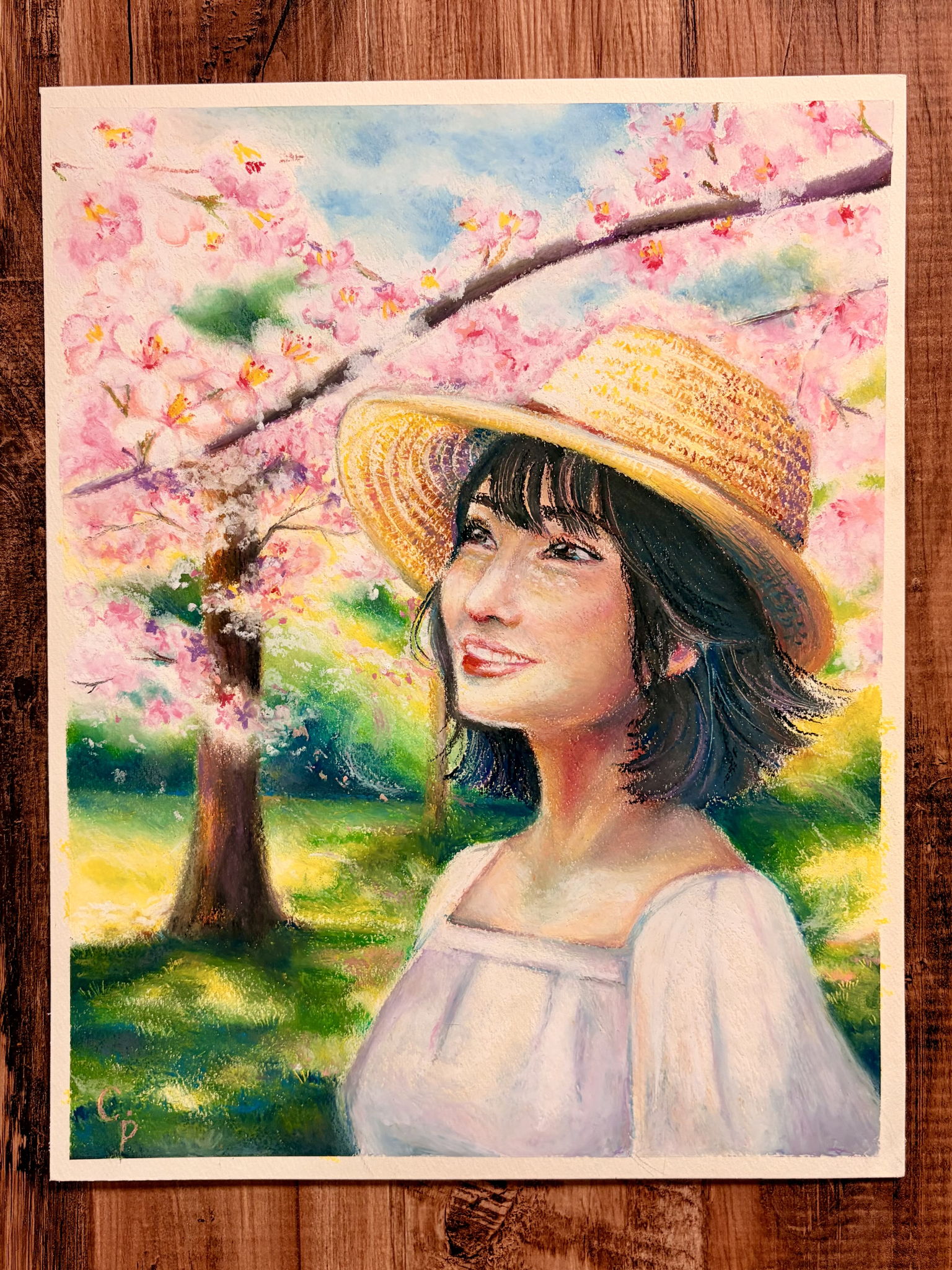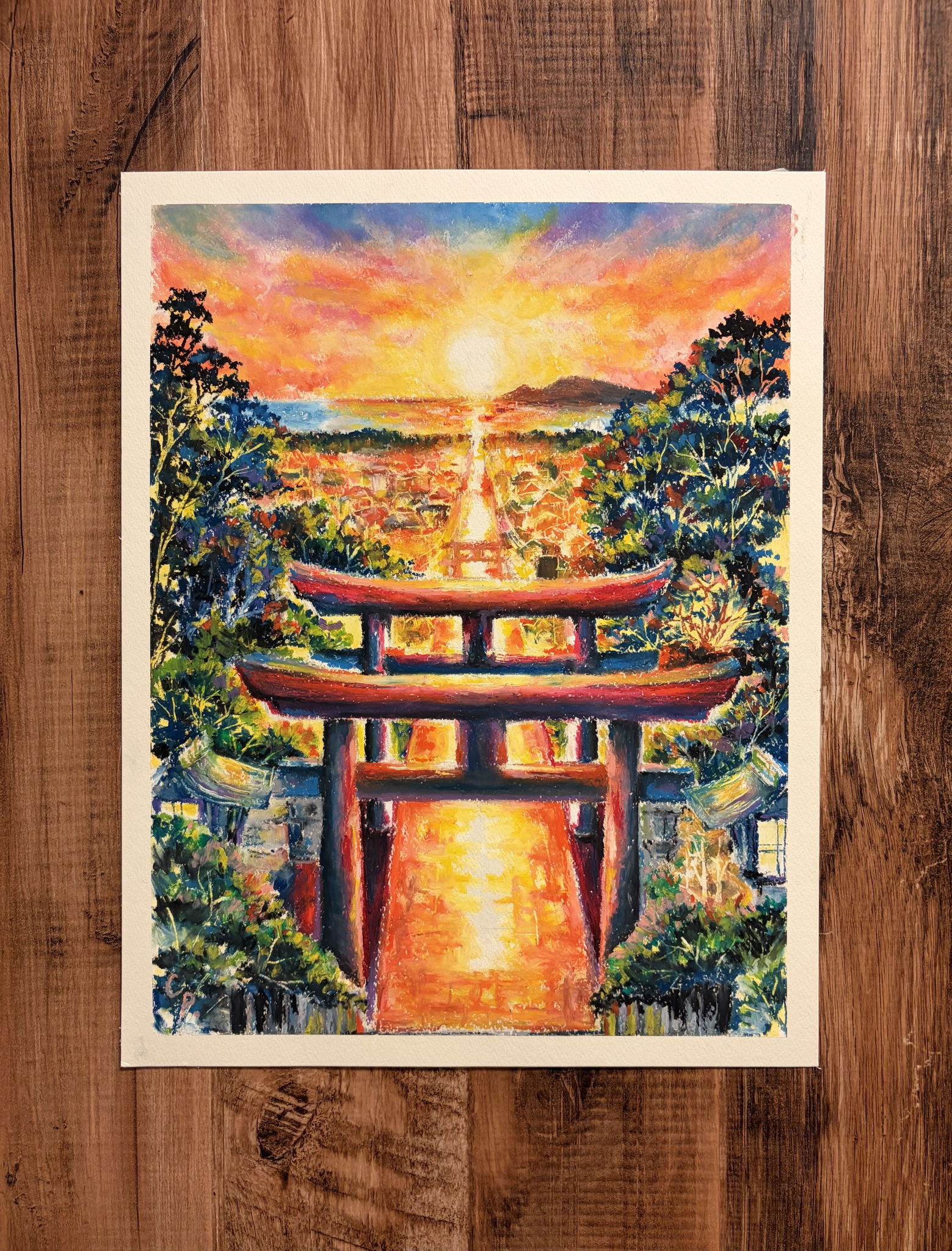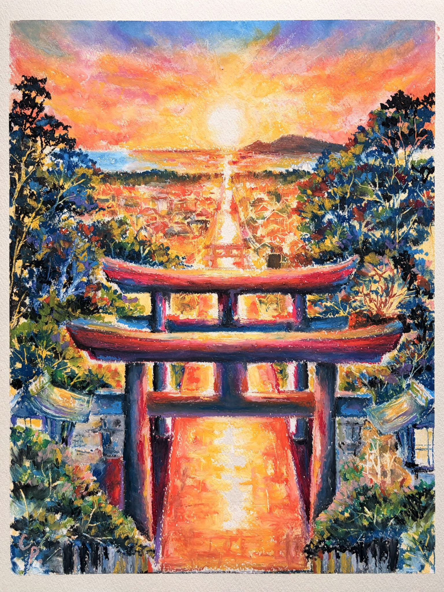 思い出すたびに「また頑張ろう」と背中を押してくれるその光景を、アートクレヨンの鮮やかな発色とやわらかな混色で描いてみました。