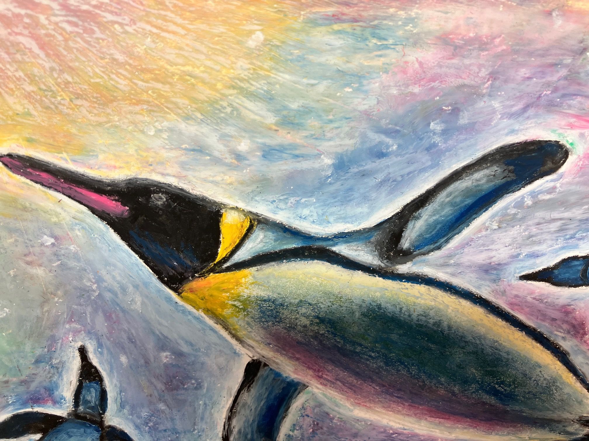 旭川動物園に行った時に初めて空飛ぶペンギンを見て感動したことを思い出して描いてみました。