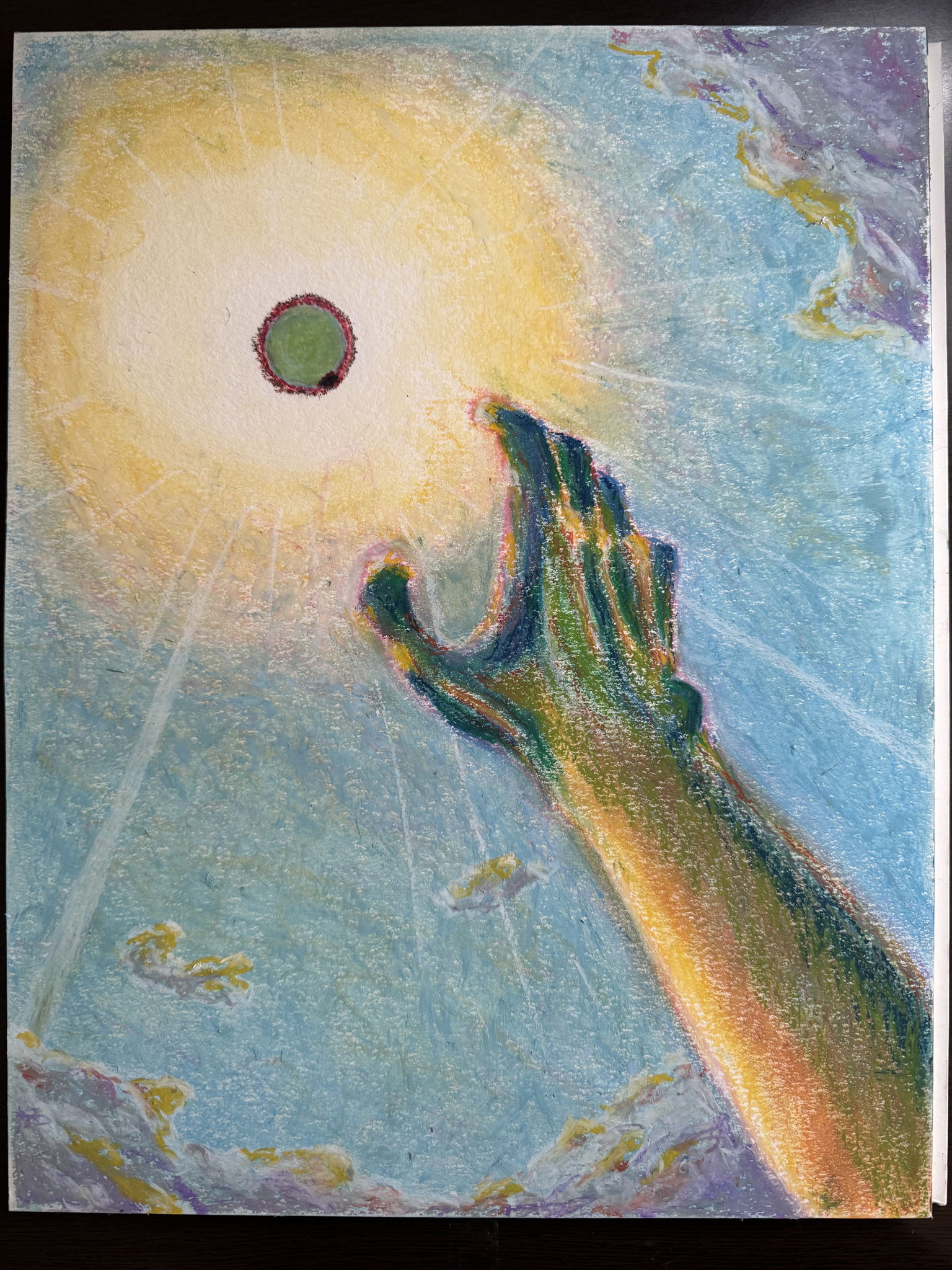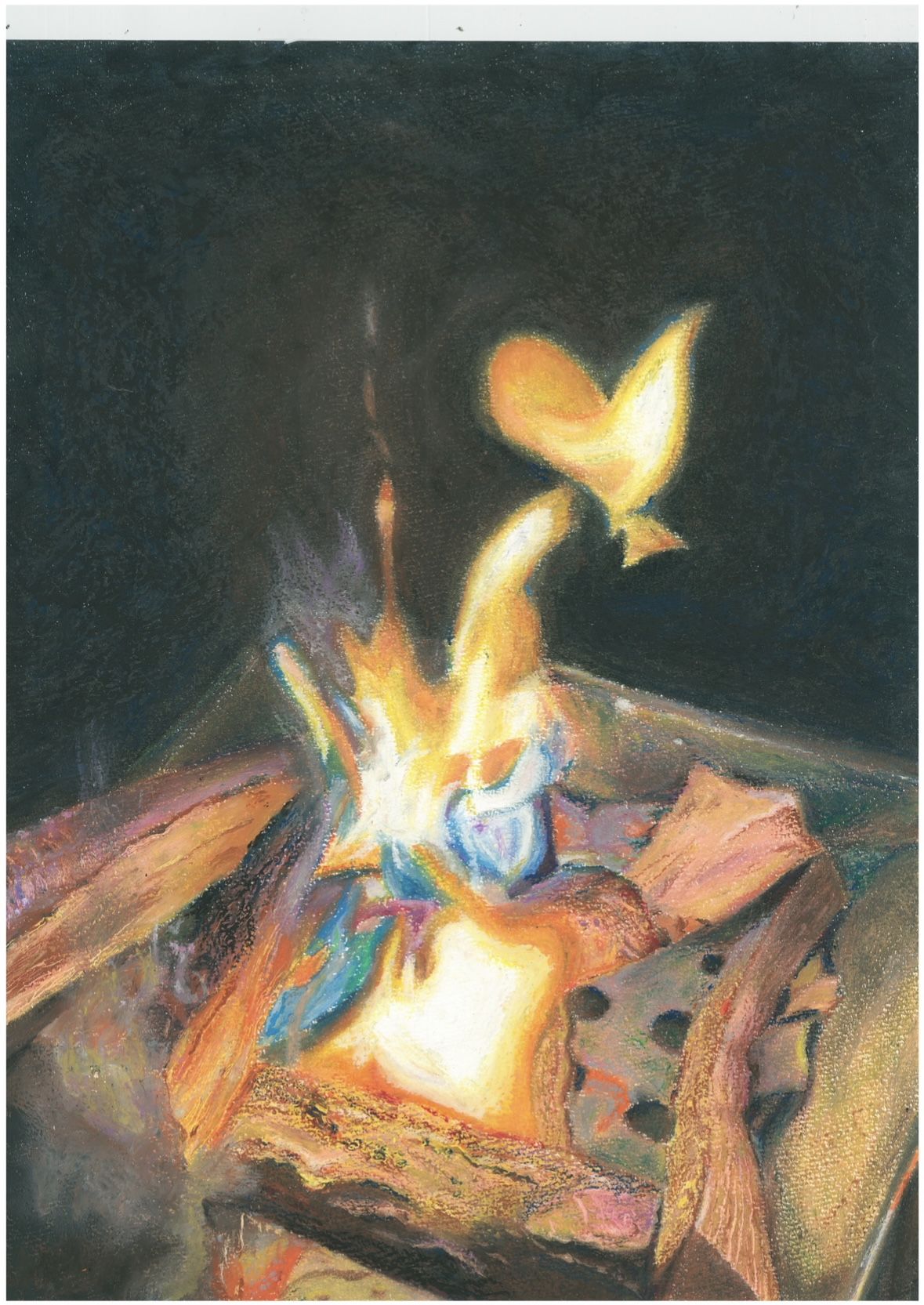 キャンプにて焚き火を起こした際に綺麗だったので撮影したものをクレヨンで描いてみました。