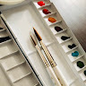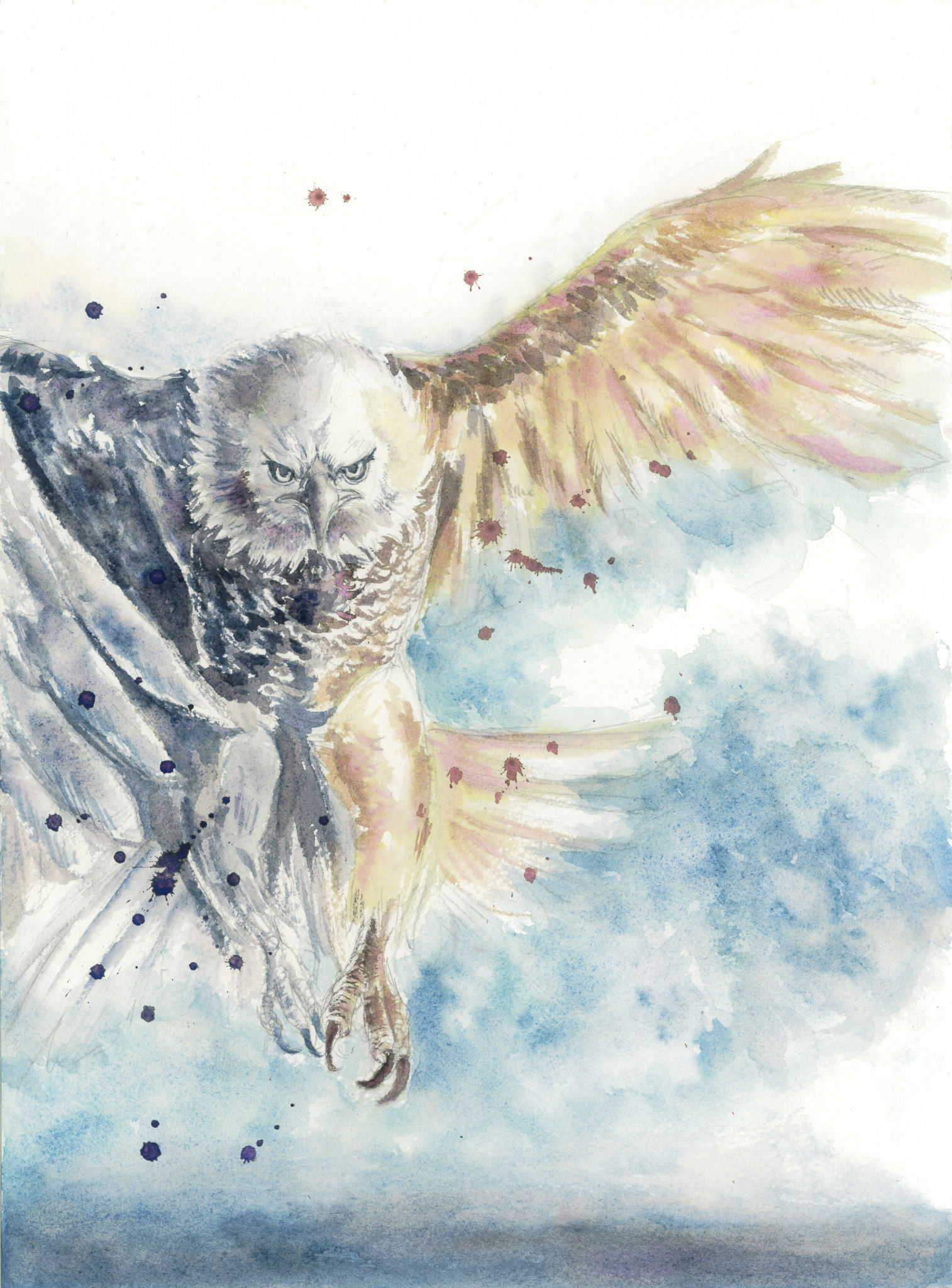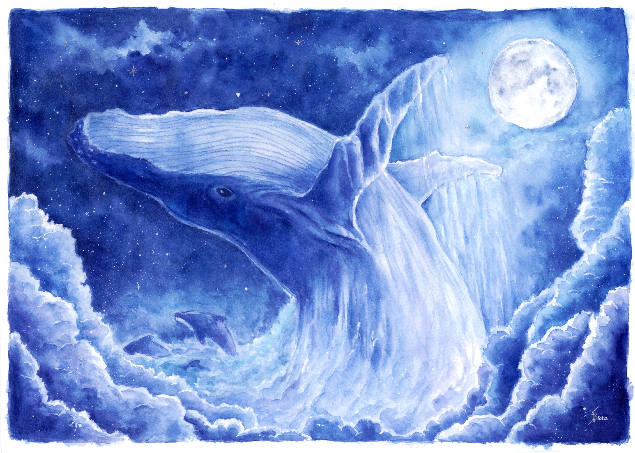透明水彩で下地を着色した上からアートクレヨンを使用しました。カラス等の細かな部分はスクラッチしています。
