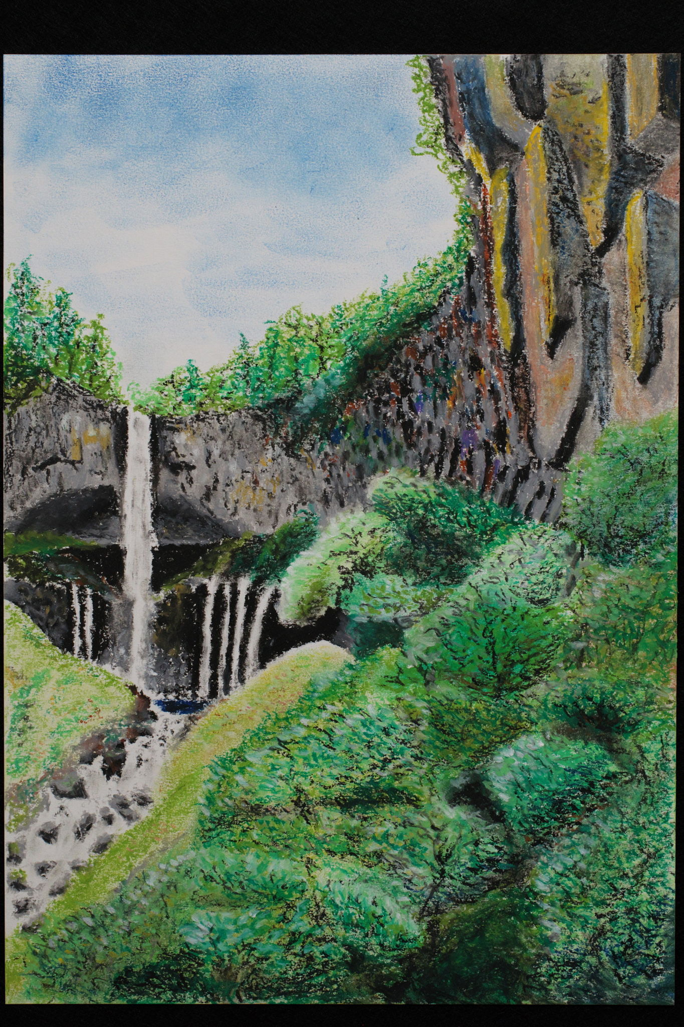 栃木県日光華厳の滝の風景です。滝も素晴らしかったのですが、私は大きな柱状節理の岩に圧倒されました。