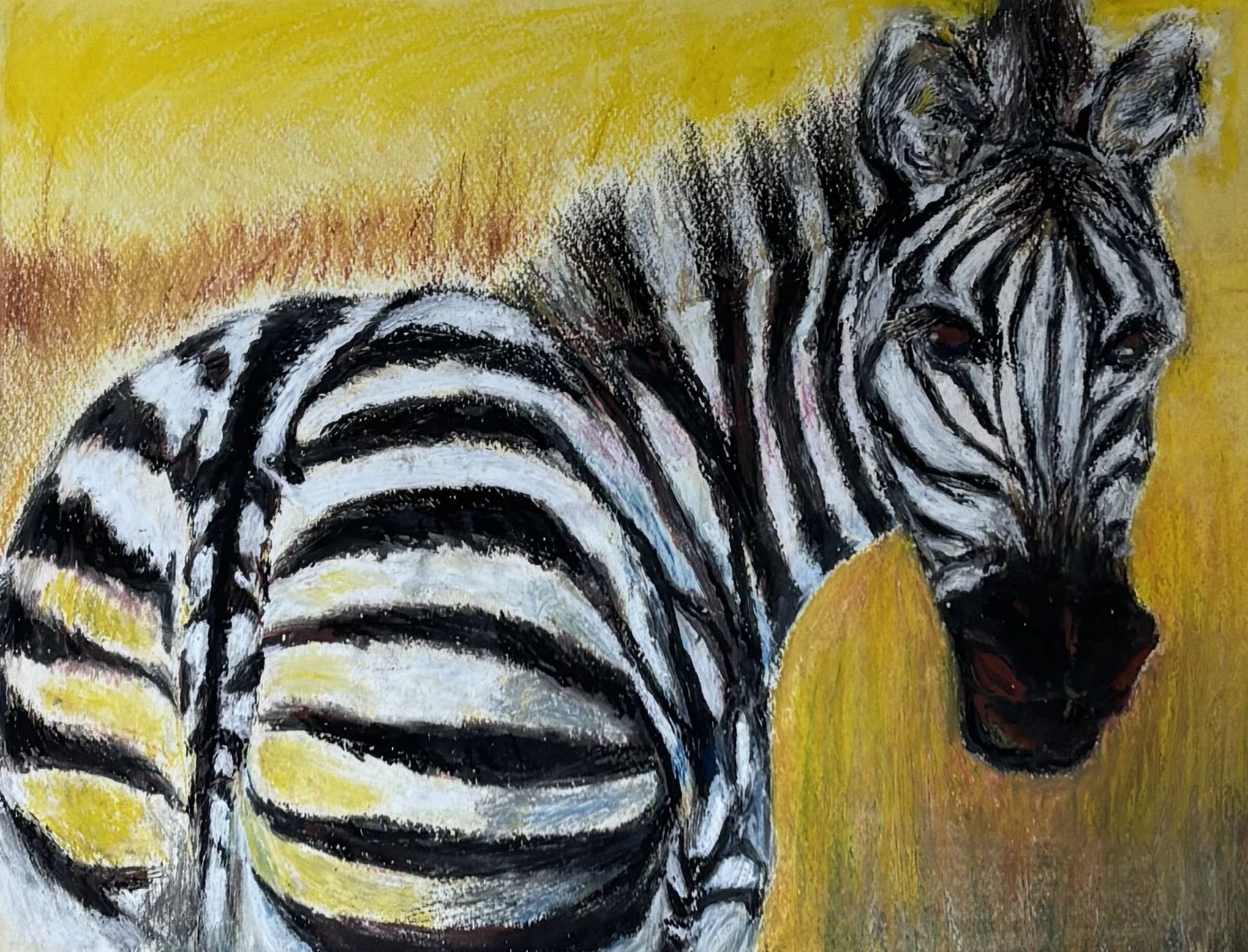 アートクレヨンの持つ、温かみあるタッチを生かして、動物を描きたいと思い、好きなシマウマに挑戦しました。