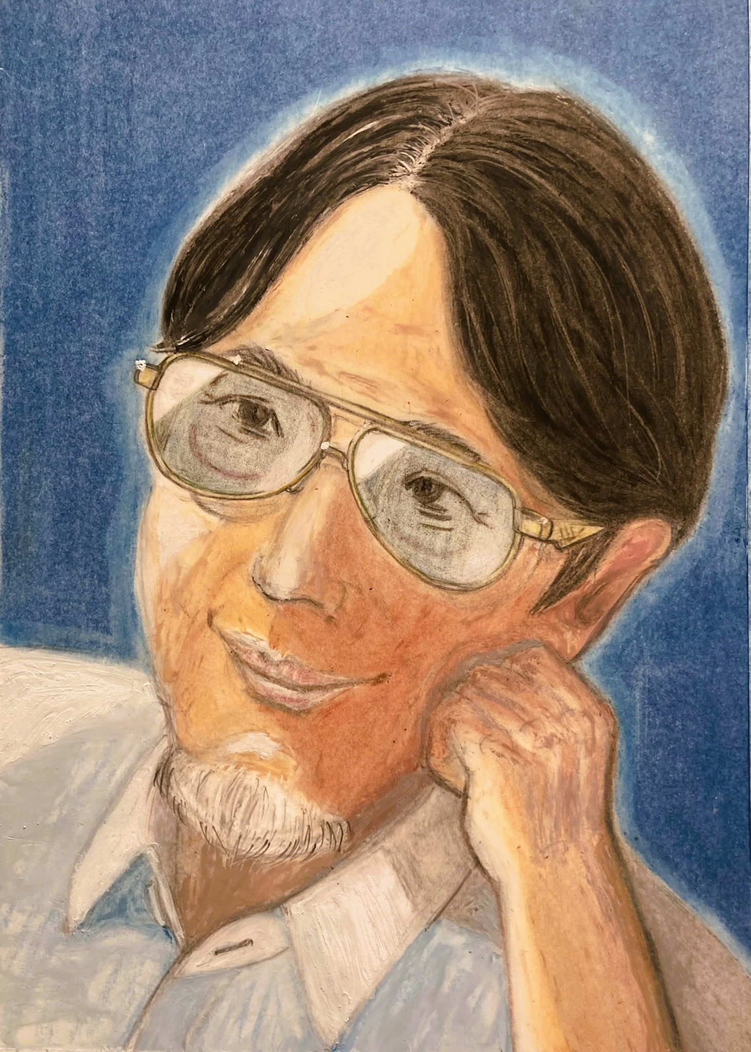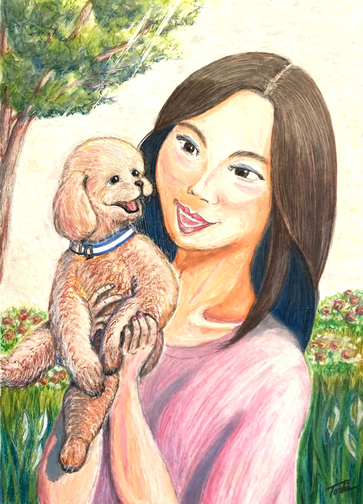 宿の庭の滝に雰囲気を感じ、描きました。