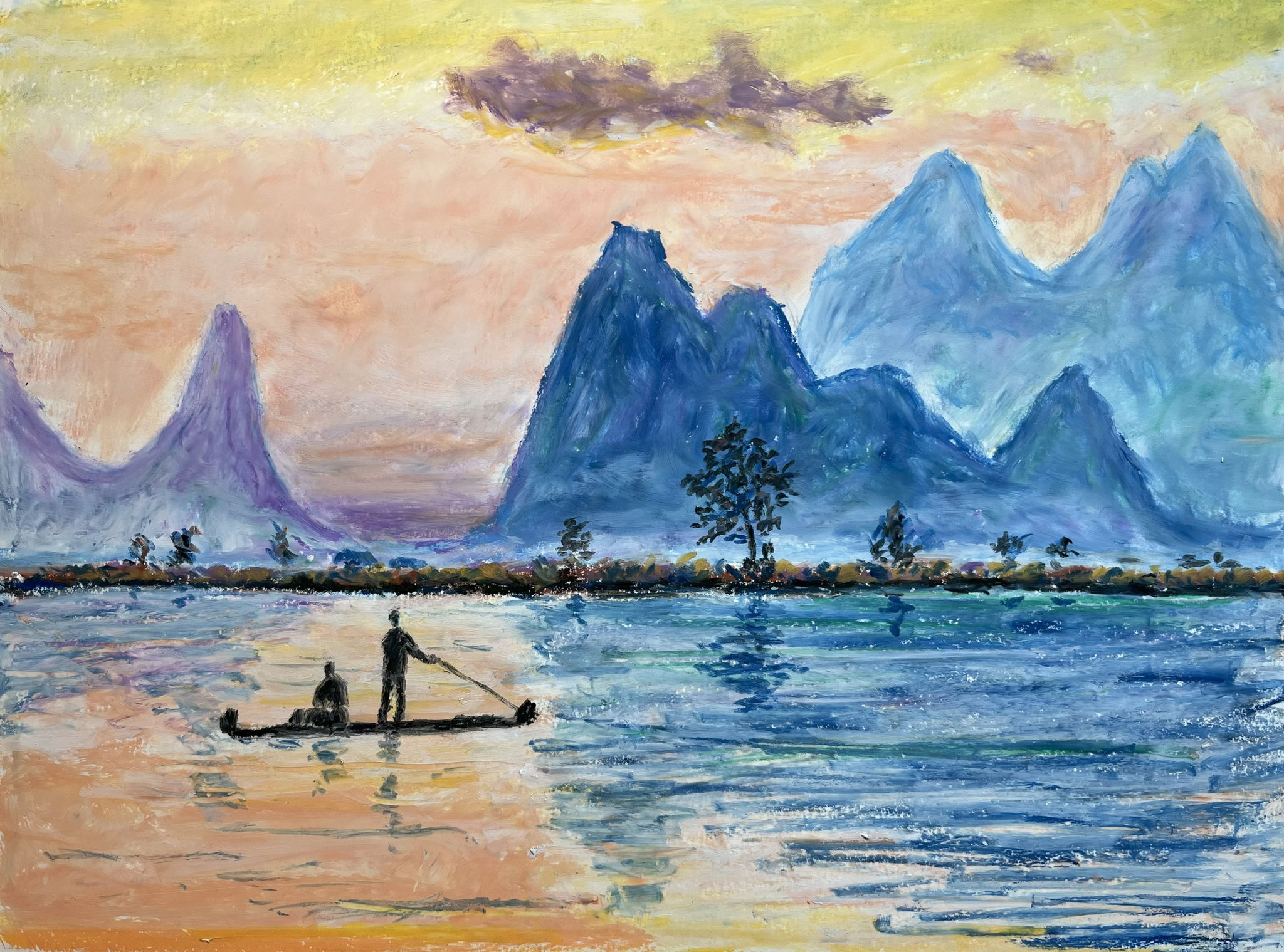 Castlerigg stone circle(湖水地方)というイギリスの石器時代の遺跡を訪れた時に、偶然みつけた牧歌的で詩的な風景をスケッチをしました。