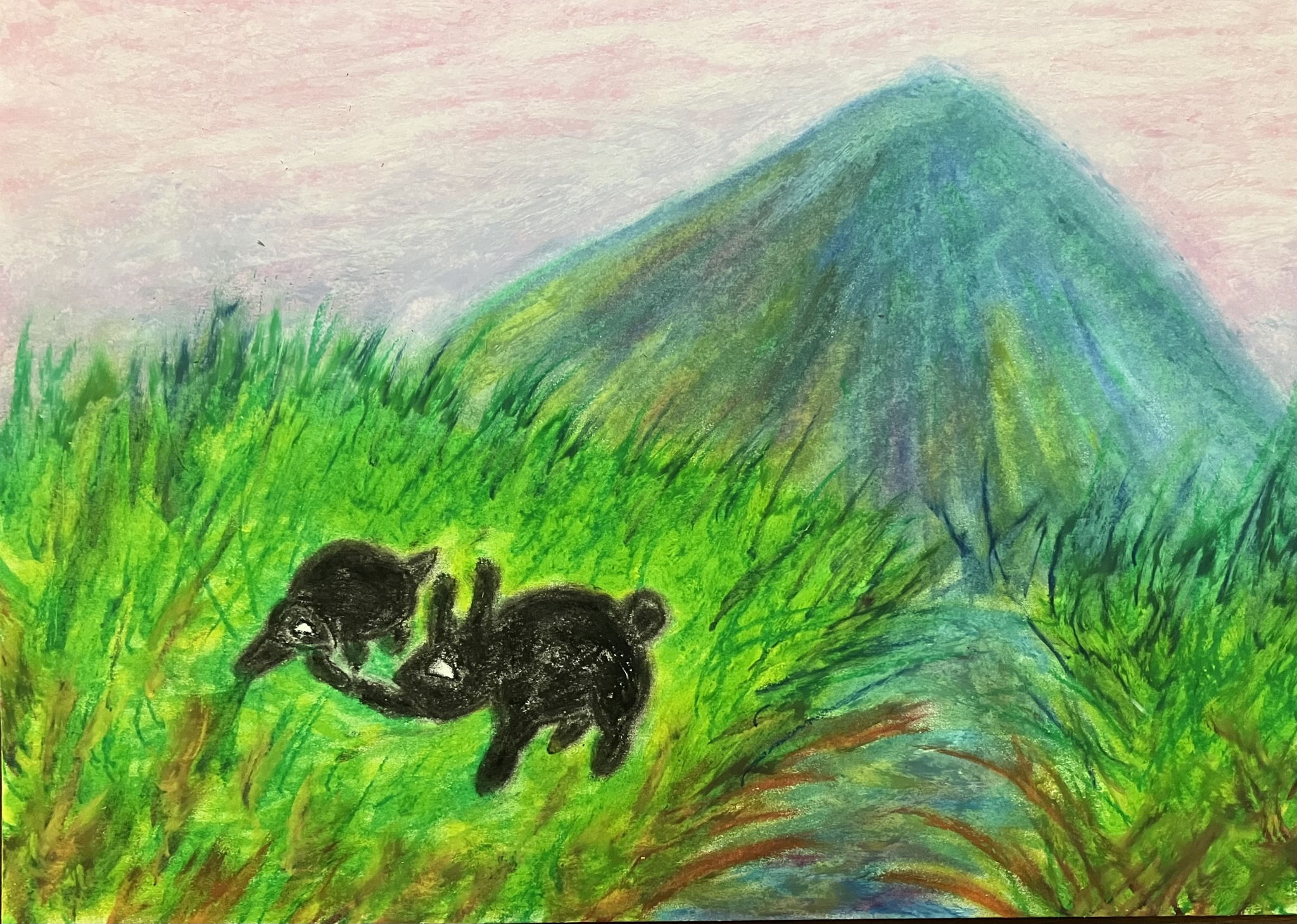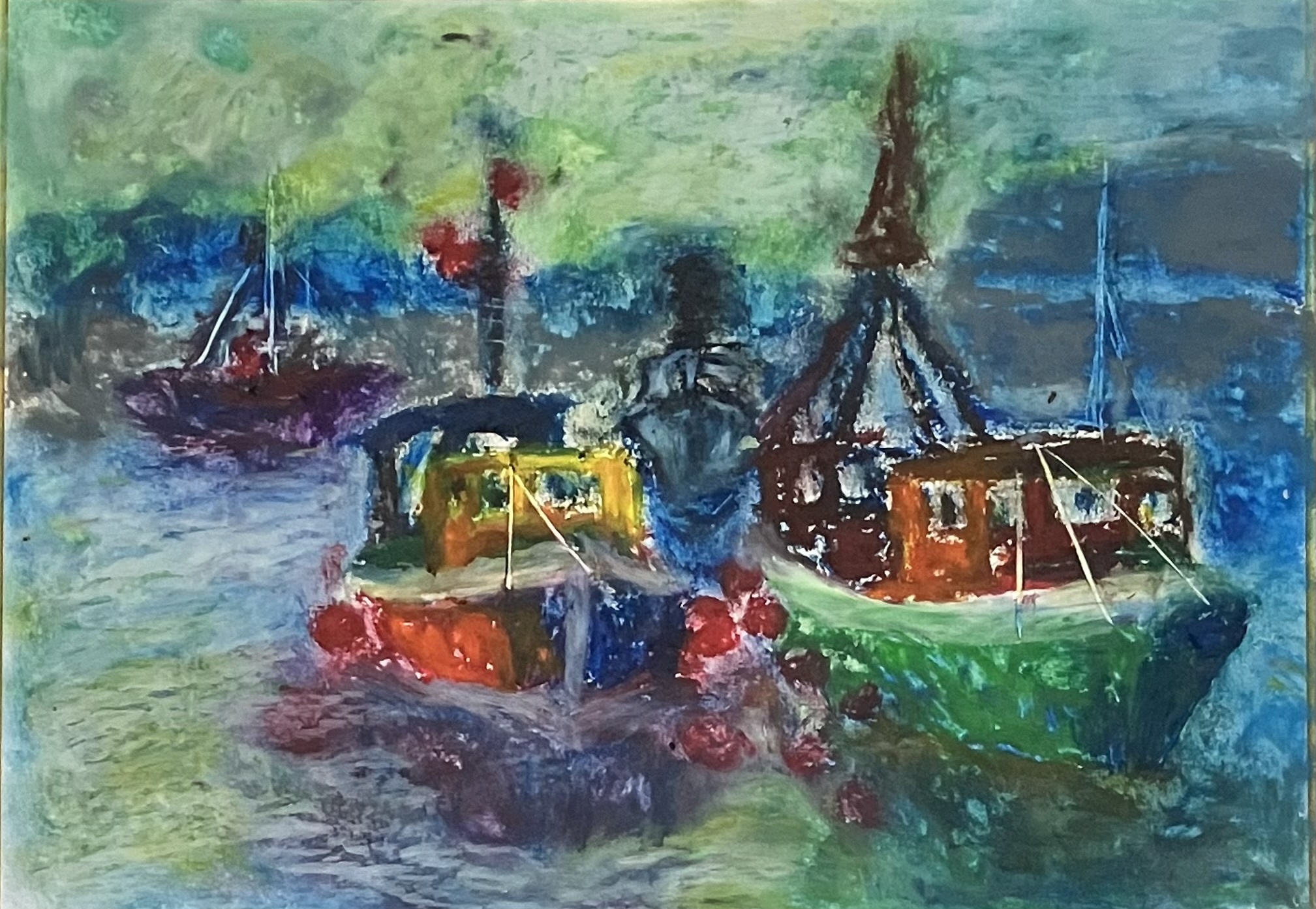 『村の夕暮れとカモメ』