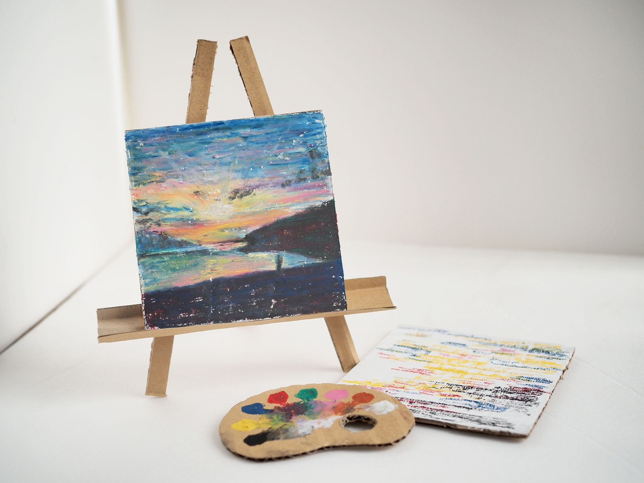 人々が街から町へと「繋がる」道路のように、色々な「繋がり」を求める現代の様子をアートクレヨンと透明フィルムで、表現しました。