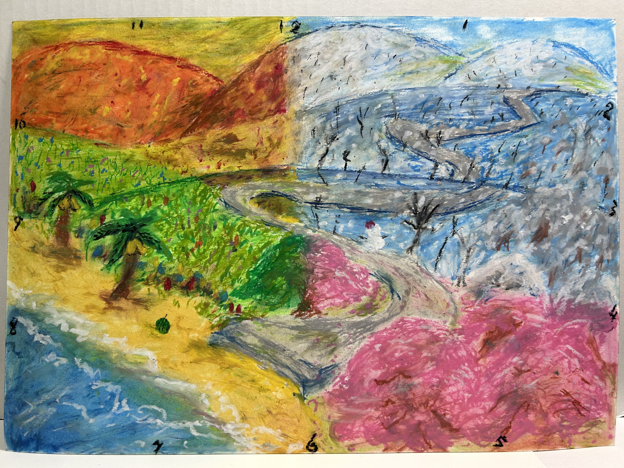 アートクレヨンを使ってスクラッチ画法で描いてみたかったので描いてみました。楽しかったです!もっとカラフルにすればよかったかなー