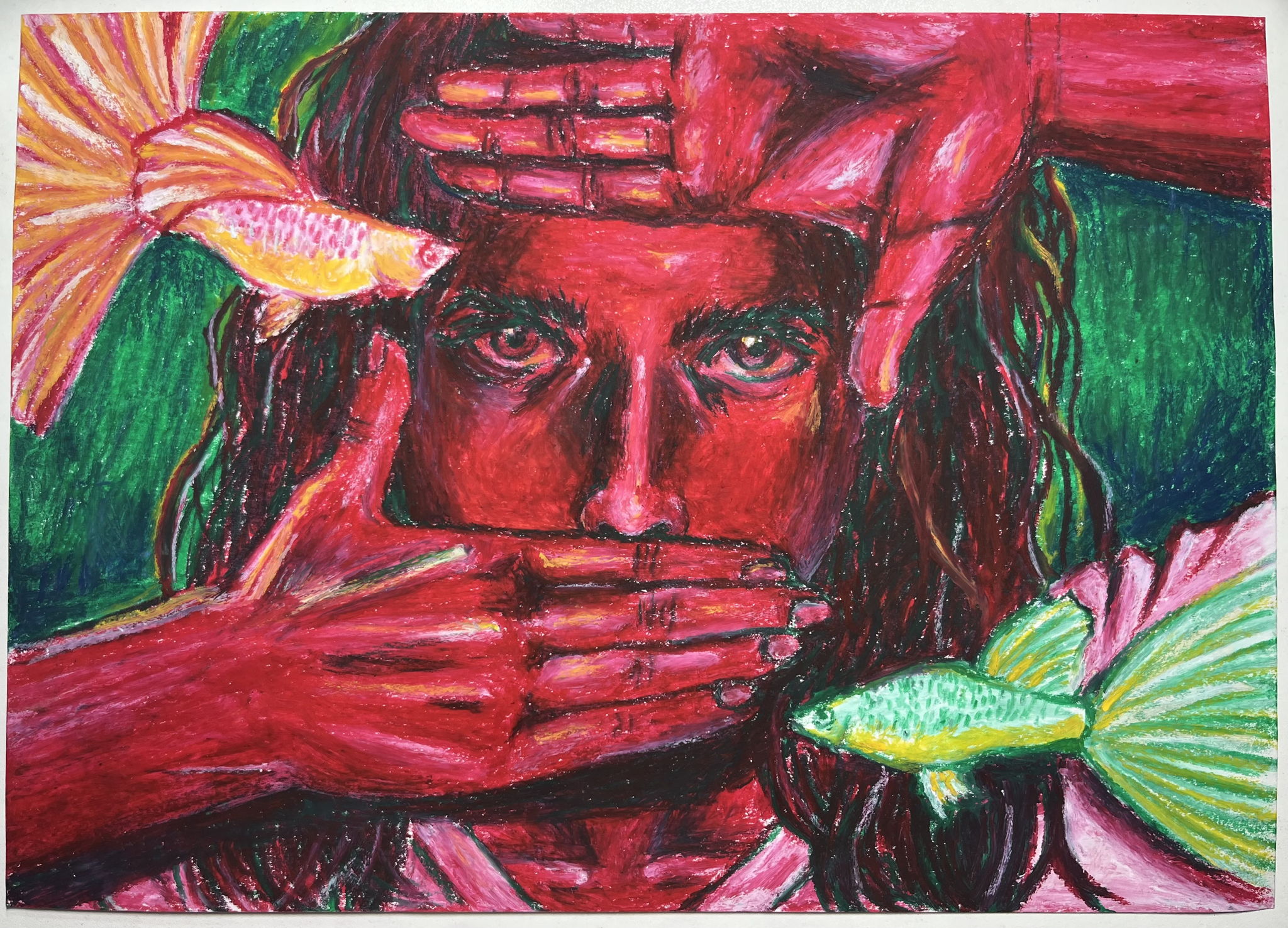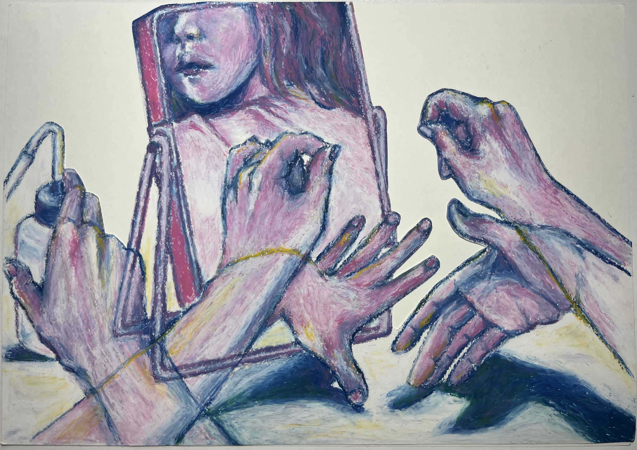 幸せそうな灯りを描くことで憂鬱そうな人間をより憂鬱そうに見えるように描きました。