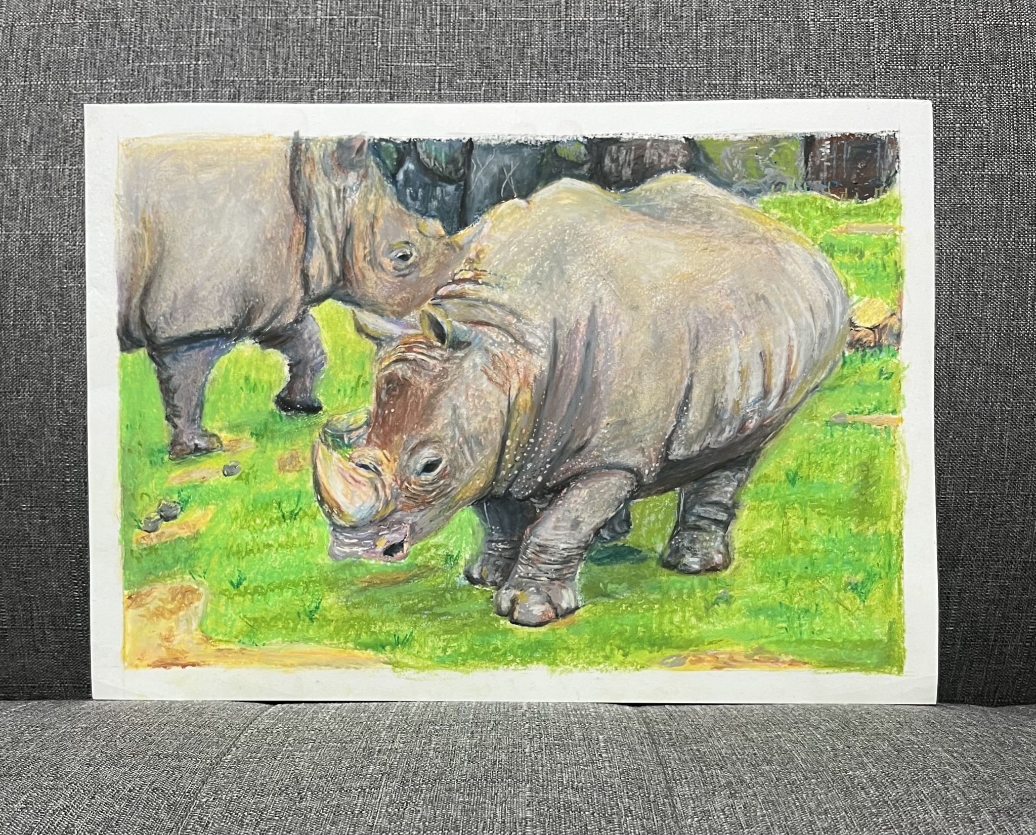 サイの独特な肌の質感やツノの力強さを表現するのが難しかったです。