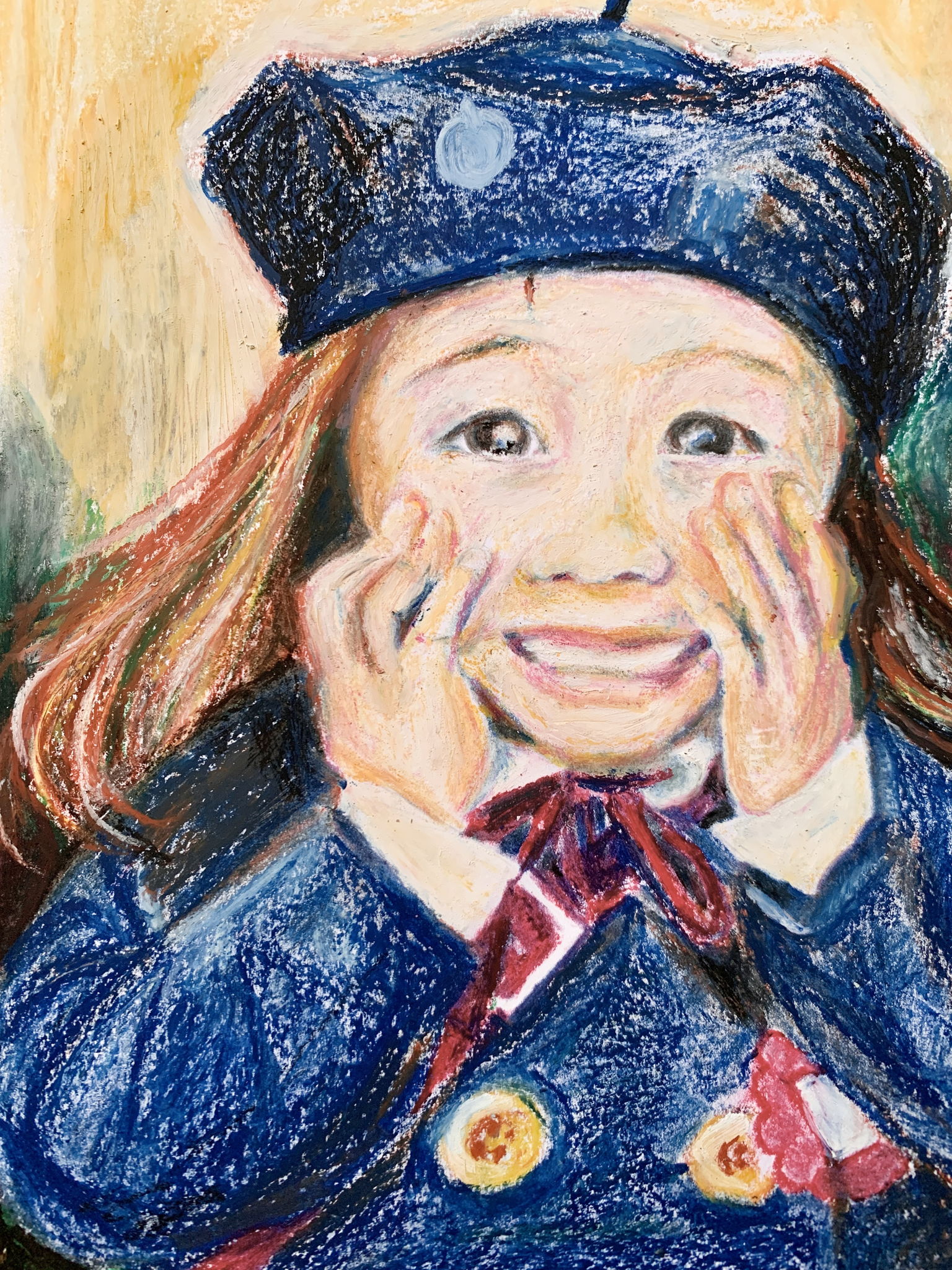 初めての制服に袖を通し、自分のベレー帽をかぶるのも嬉しかったのだと思います。